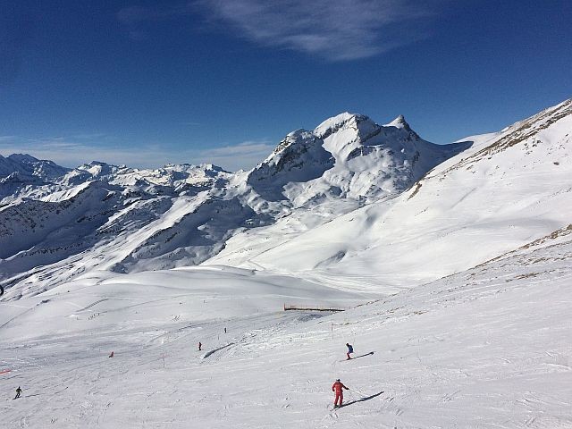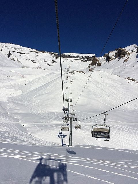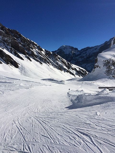Wunderbar. Leider jedoch die schöne Abfahrt zum "Hinteren Gletscher" nicht geöffnet. Auch oben leider noch nicht alles geöffnet, die rote 9 unter der Schilt Bahn litt auch noch unter wenig Schnee.