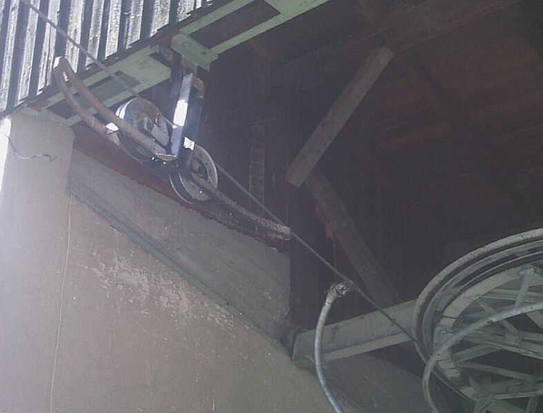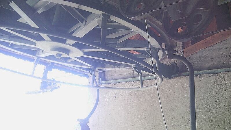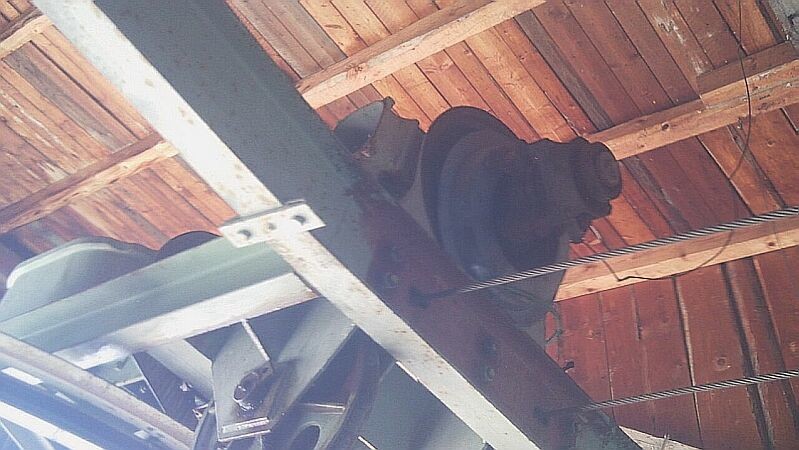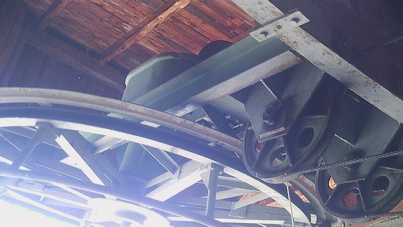 Antrieb. Ursprünglich ein Zahnkranzantrieb, in den späten 60er Jahren dann wohl wegen Kapazitätserhöhung auf ein Lohmann Getriebe und einfach gelagerte Seilscheibe mit Seilfangring umgebaut. Der Spannschlitten an sich und die Robas sind aber noch original