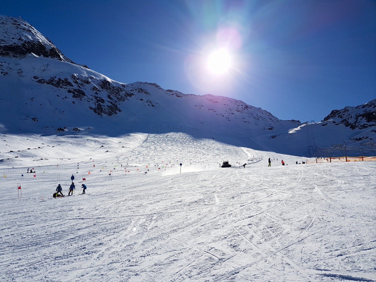 Weissseeferner-SL links geht übrigens nicht mehr ganz hoch, getrennt wie üblich. Entspannt die Situation, die Rennteams steigen oben ein, die Anfänger haben den unteren Abschnitt.