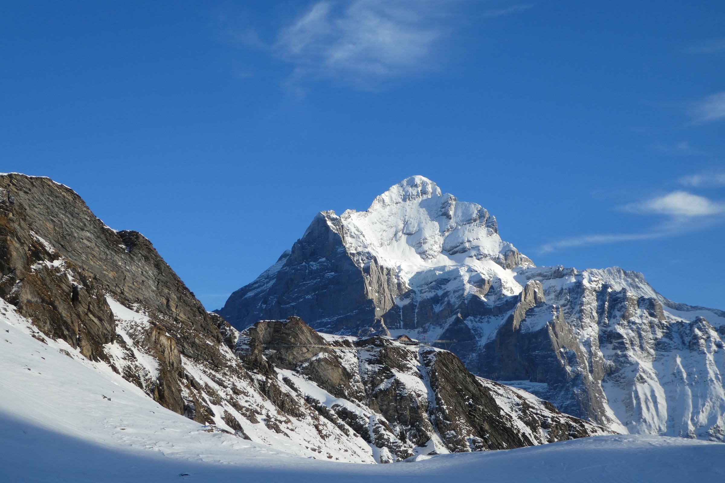 Die Neujahrswoche verbrachte ich in der Jungfrauregion. Im Vergleich zu den letzten Jahren hatte es ja mal auch wieder ordentlich Schnee. Wir wohnten in einer Ferienwohnung am Rande des Dorfs Grindelwald in der Nähe der Kirche. Ruhig, aber doch zentral, und eine tolle Sicht auf den Eiger.