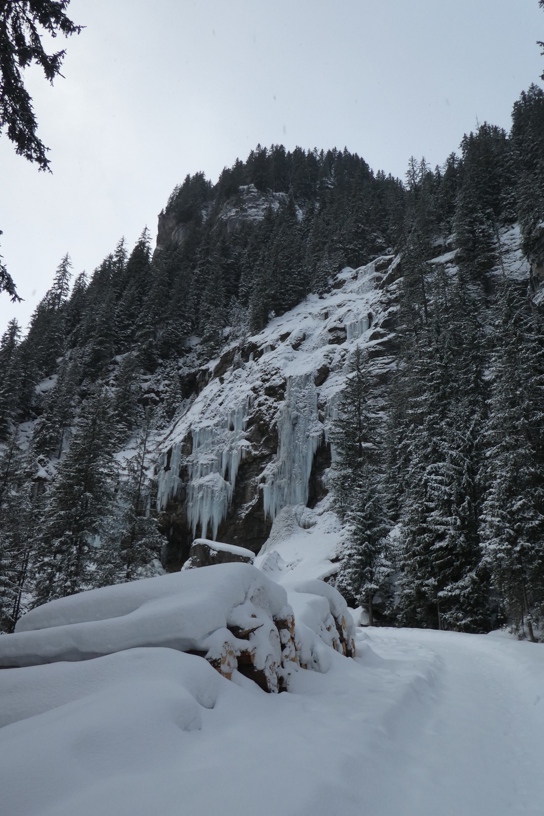 Der Regen hat die oberste Schicht des Schnees in reines Eis verwandelt. Mehrere Zentimeter dick.