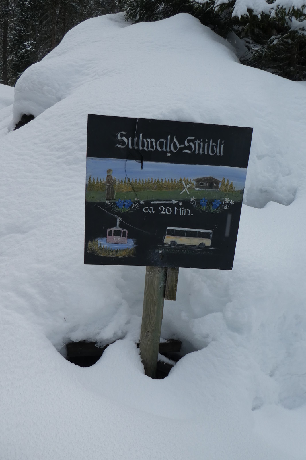 Dort besteigt man eine kleine Pendelbahn hoch nach Sulwald. Wenn man runter möchte, muss man in der Bergstation zum Telefon greifen.