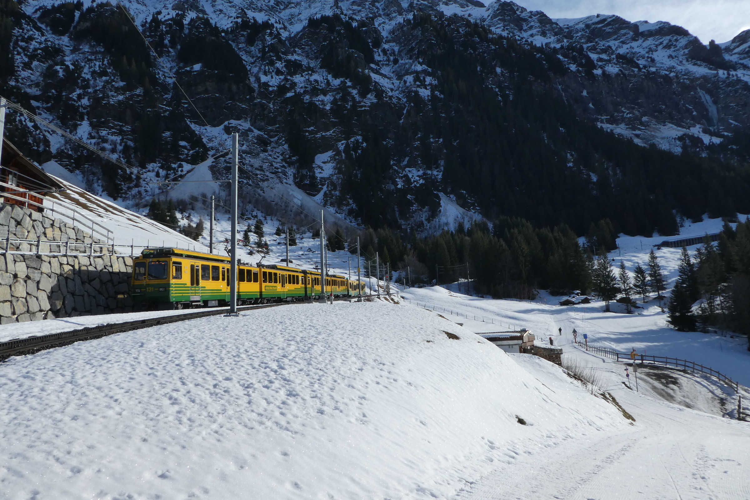So fuhren wir nochmals auf die Kleine Scheidegg und schlittelten runter nach Wengen. Dies ist auch eine sehr schöne und rasante Abfahrt.