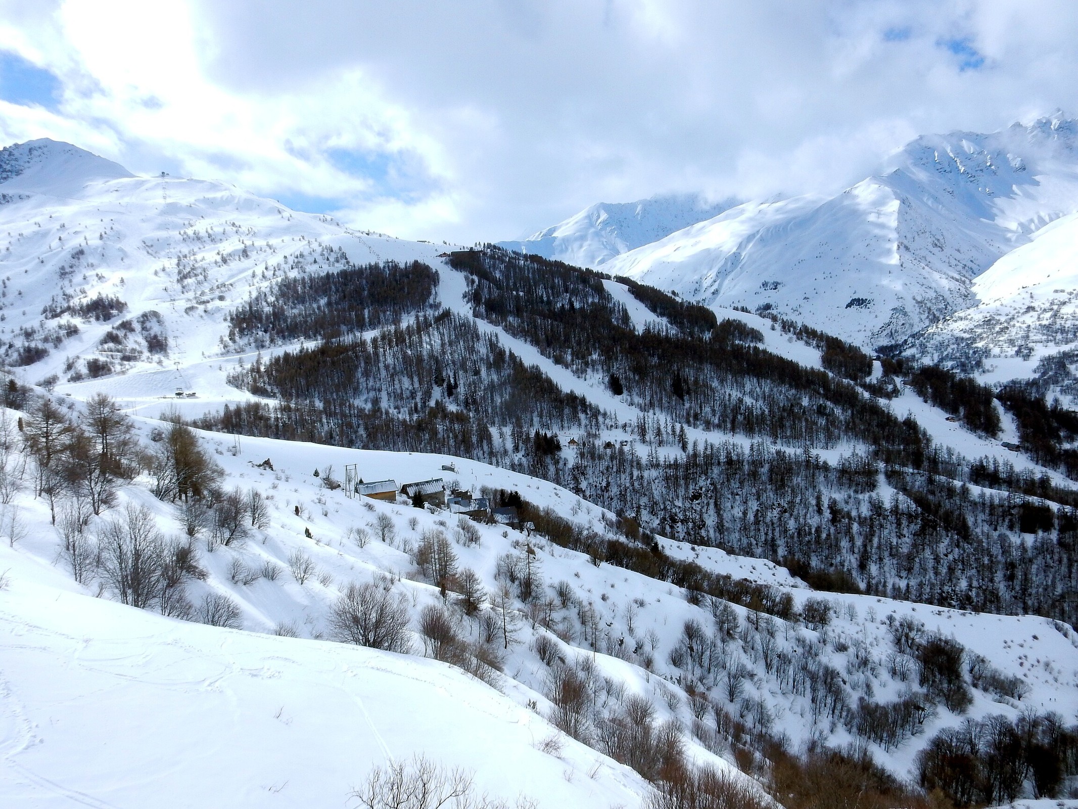 Schönes Skigelände hier oben, mit dem KSSL Crete in der Mitte, links die 6KSB Brives 2 und rechts die Bergstation der KSSL Plan Palais