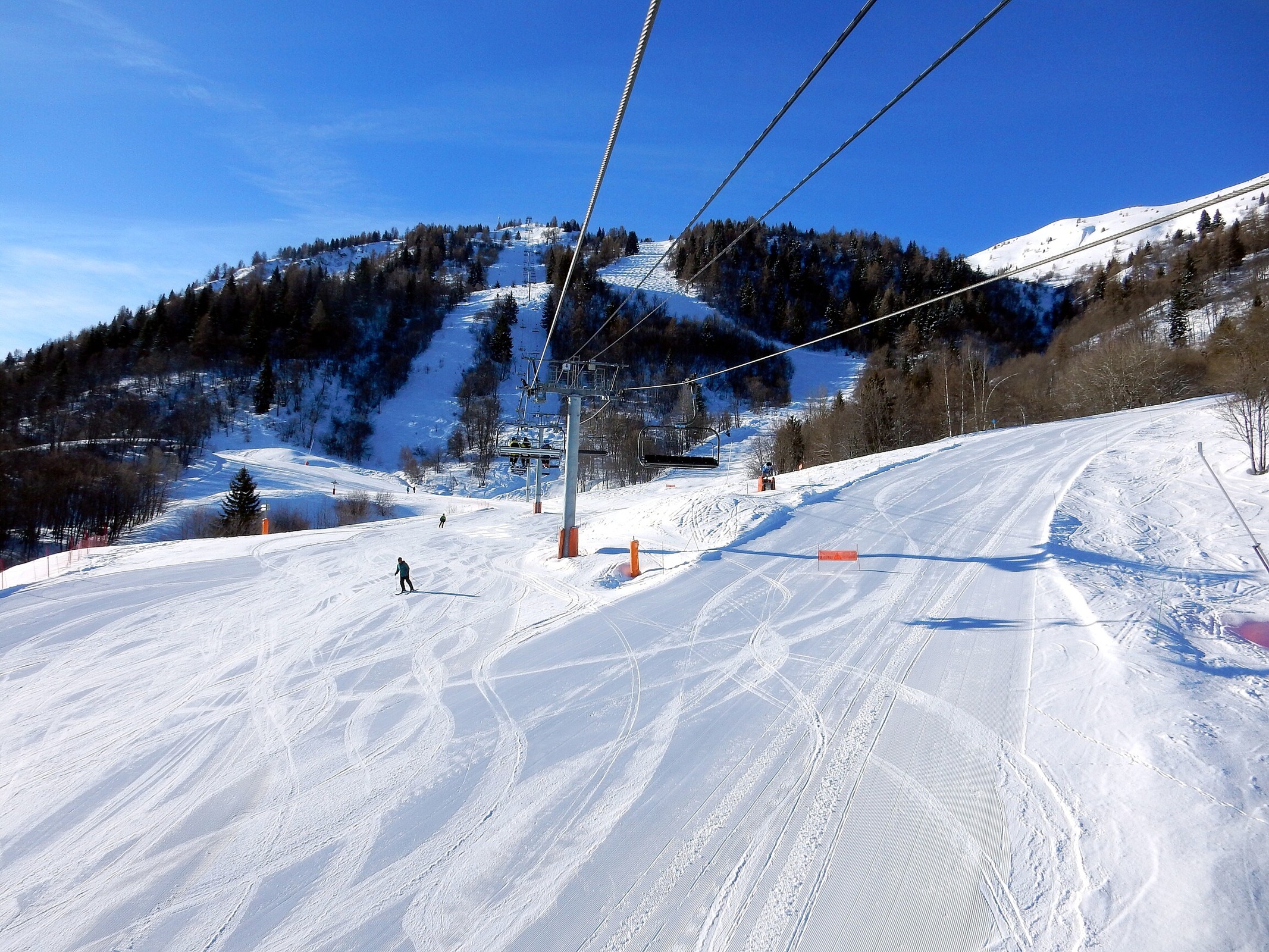 Blick zum unteren Teil der 6KSB Grandes Drozes, dahinter durch den Wald schlängelt sich die Armera-Piste, die sehr schön ist, wenn auch am Schluss etwas lahm.