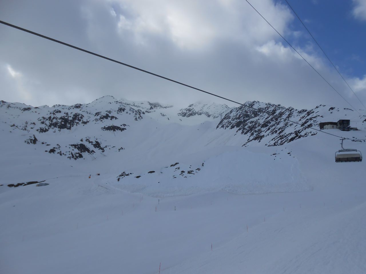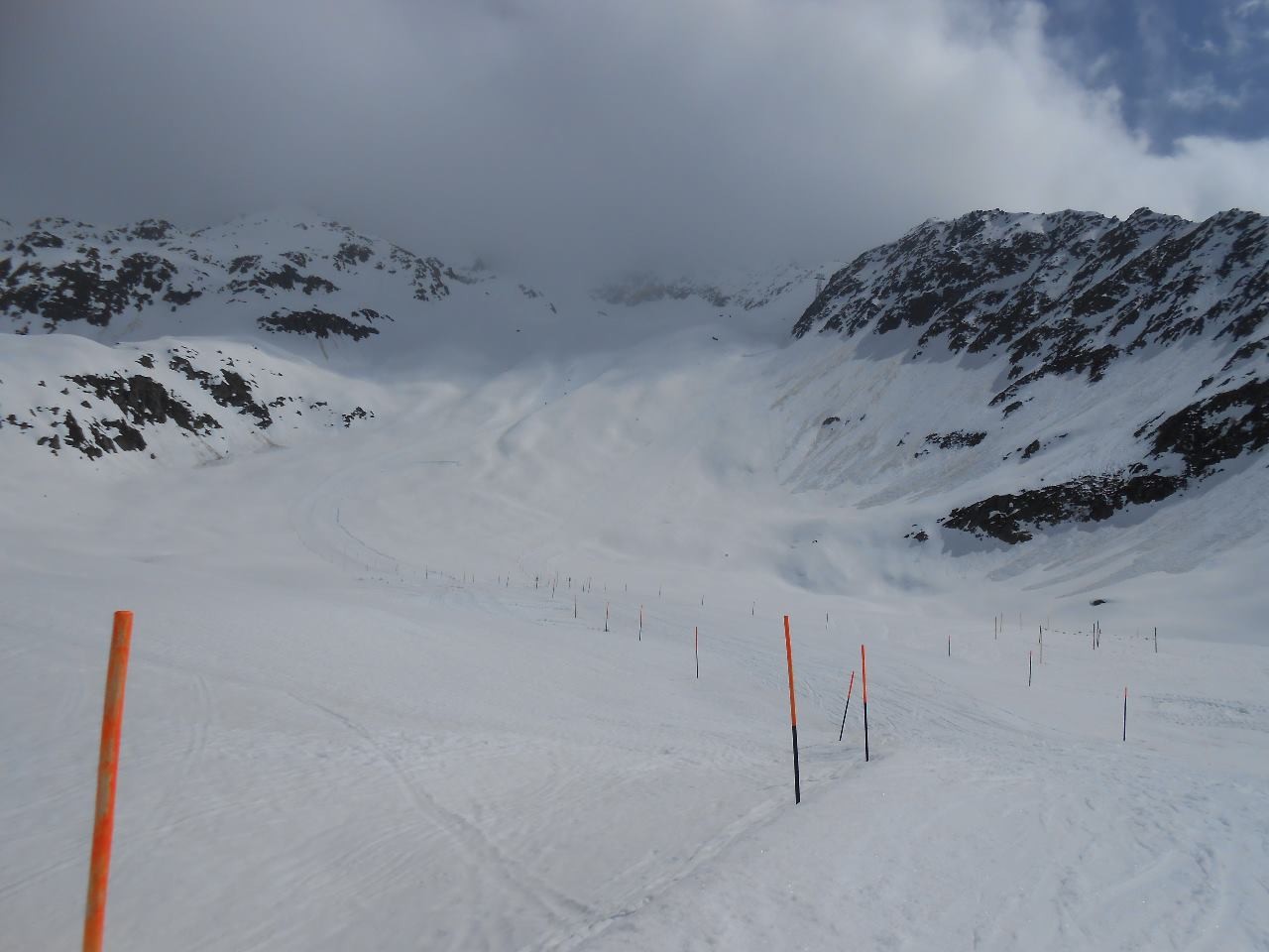 Gletscherabfahrten von unten gesehen. Etwas schieben war angesagt im unteren, flachen Teil und weiter bis zur Talstation der Sesselbahn.