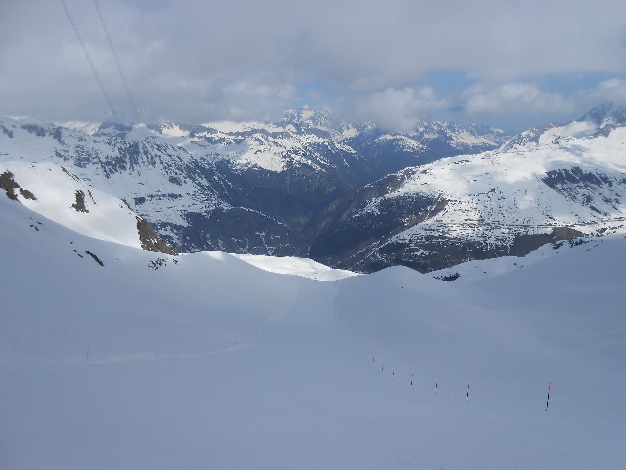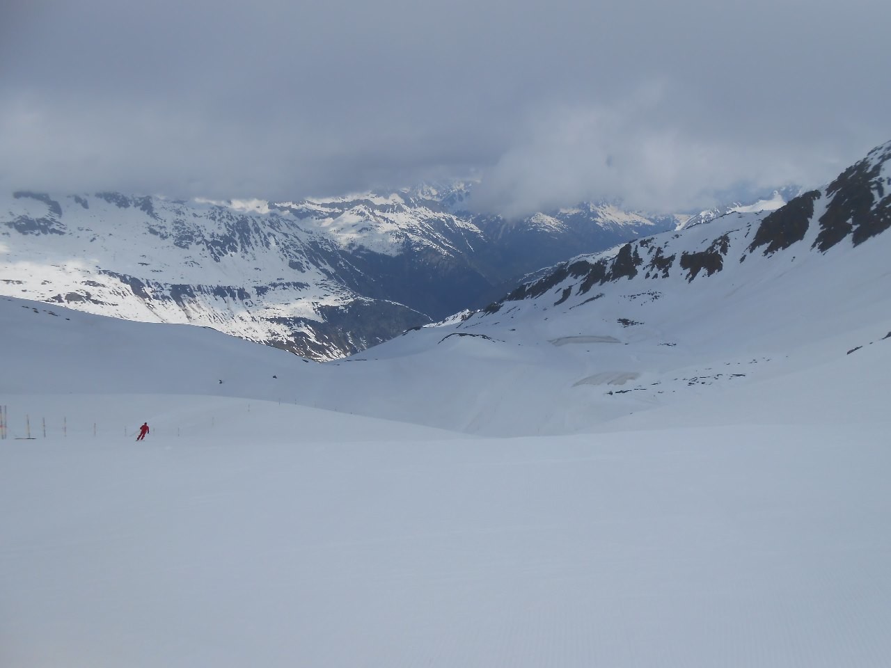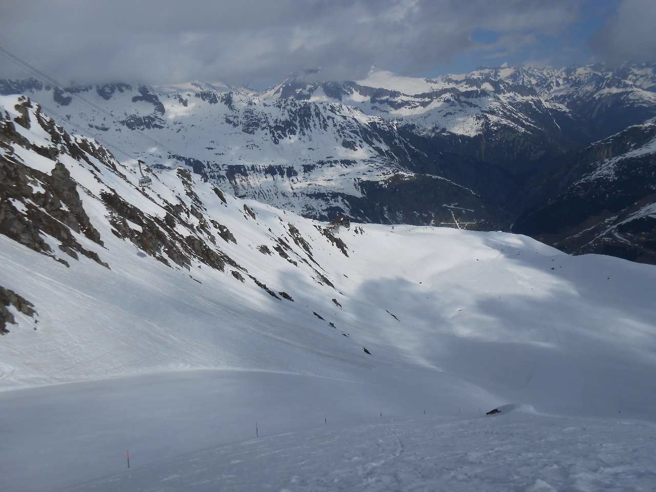 Dem Schnee hat man den warmen April angemerkt. Ich war auch schon zur selben Zeit hier, da hatte es oben noch Pulverschnee. Wenn man aber wie ich Frühlingsskifahren mag, dann waren es super Bedingungen und wunderbar zu fahren.