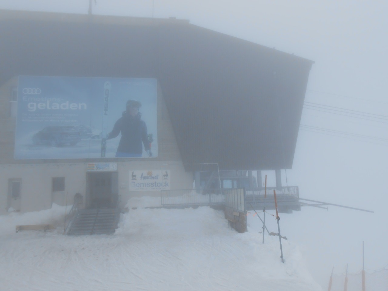 Etwa so präsentierte sich die Bergstation den ganzen Tag lang. Im Nebel eingehüllt.