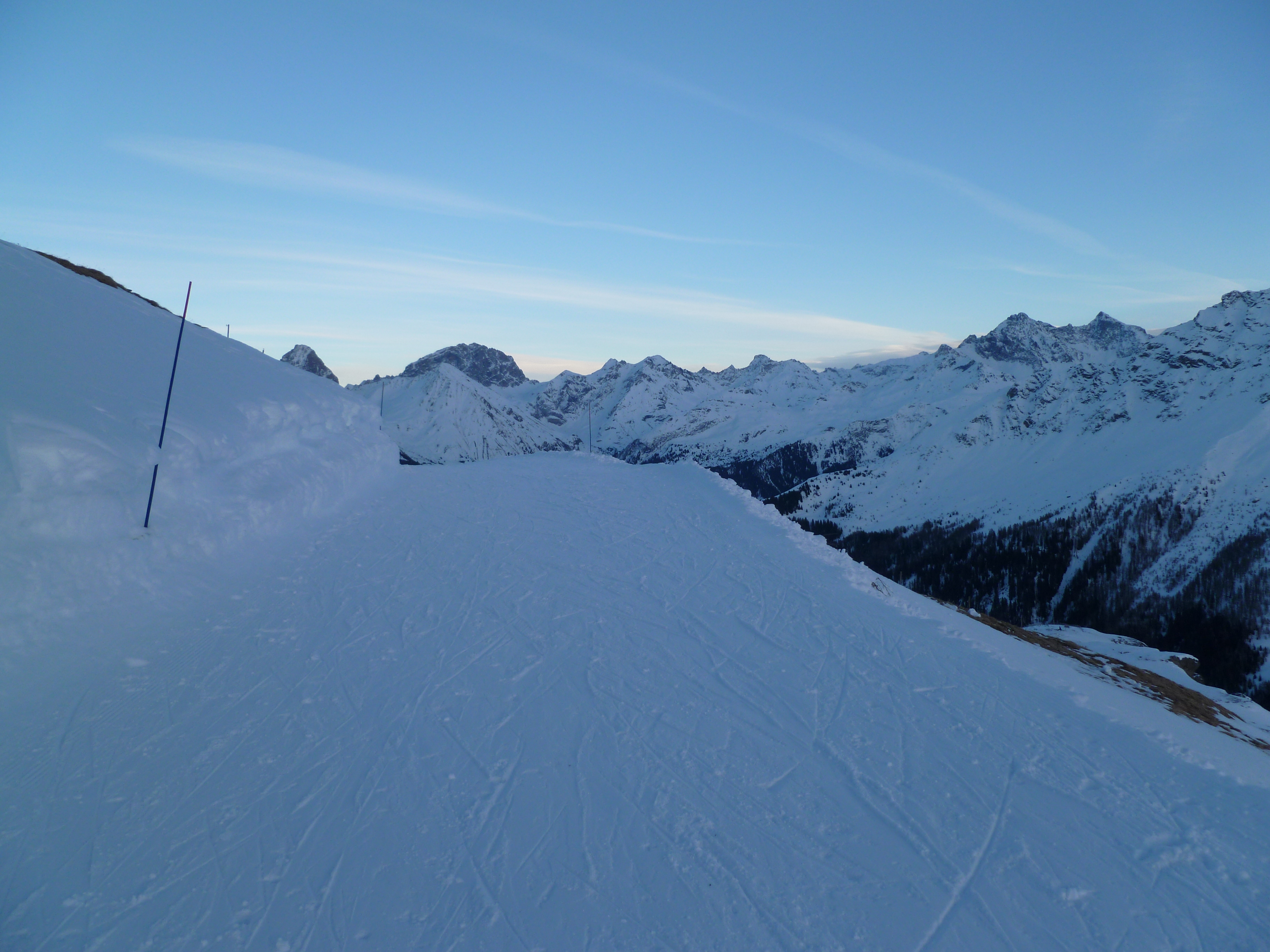 Erstmals war ich nicht anfangs Februar, sondern bereits über Weihnachten für eine Woche in Savognin. Ein eigentlich ziemlich gewagtes Unterfangen, hatte es doch selbst im Februar nicht immer ausreichend Schnee. Dieses Jahr konnten aber fast alle Pisten planmässig geöffnet werden, auch wenn unterhalb von 2000 Metern noch etwas Schnee fällt. Daher waren die Pisten 10b, 16, 17, 19 und 21 im unteren Bereich noch schneekritisch, aber ohne grössere Schäden fahrbar. Montags gab es in den höheren Lagen gut 30cm Pulverschnee, im Tal waren es knapp 10cm, auch hier Pulverschnee. Das war ziemlich erstaunlich, denn vor dem Schneefall regnete es. Der Neuschnee verbesserte die Schneelage im Bereich von 1800-2000 Metern aber nur leicht infolge des vorhergehenden Regens. Im Laufe der Woche wurden die Pisten wieder härter (nach dem Schneefall) und es kommen einige neue schneearme Stellen dazu.