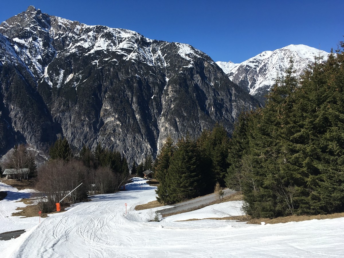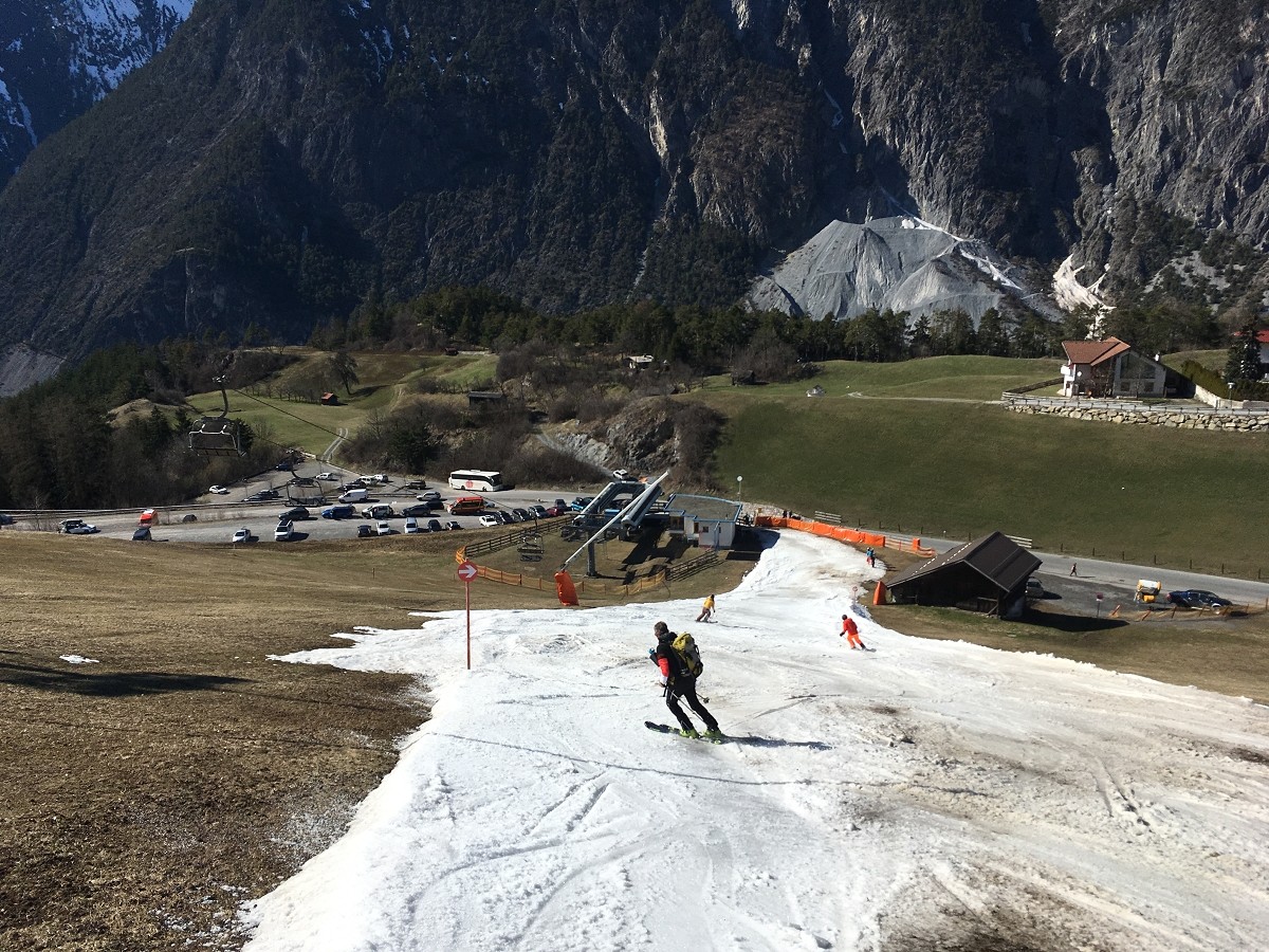 Die Talabfahrt war schon eine Woche vorher mehr oder weniger am Ende schneemäßig - da hat man wohl Nachts ab und zu noch beschneit.
