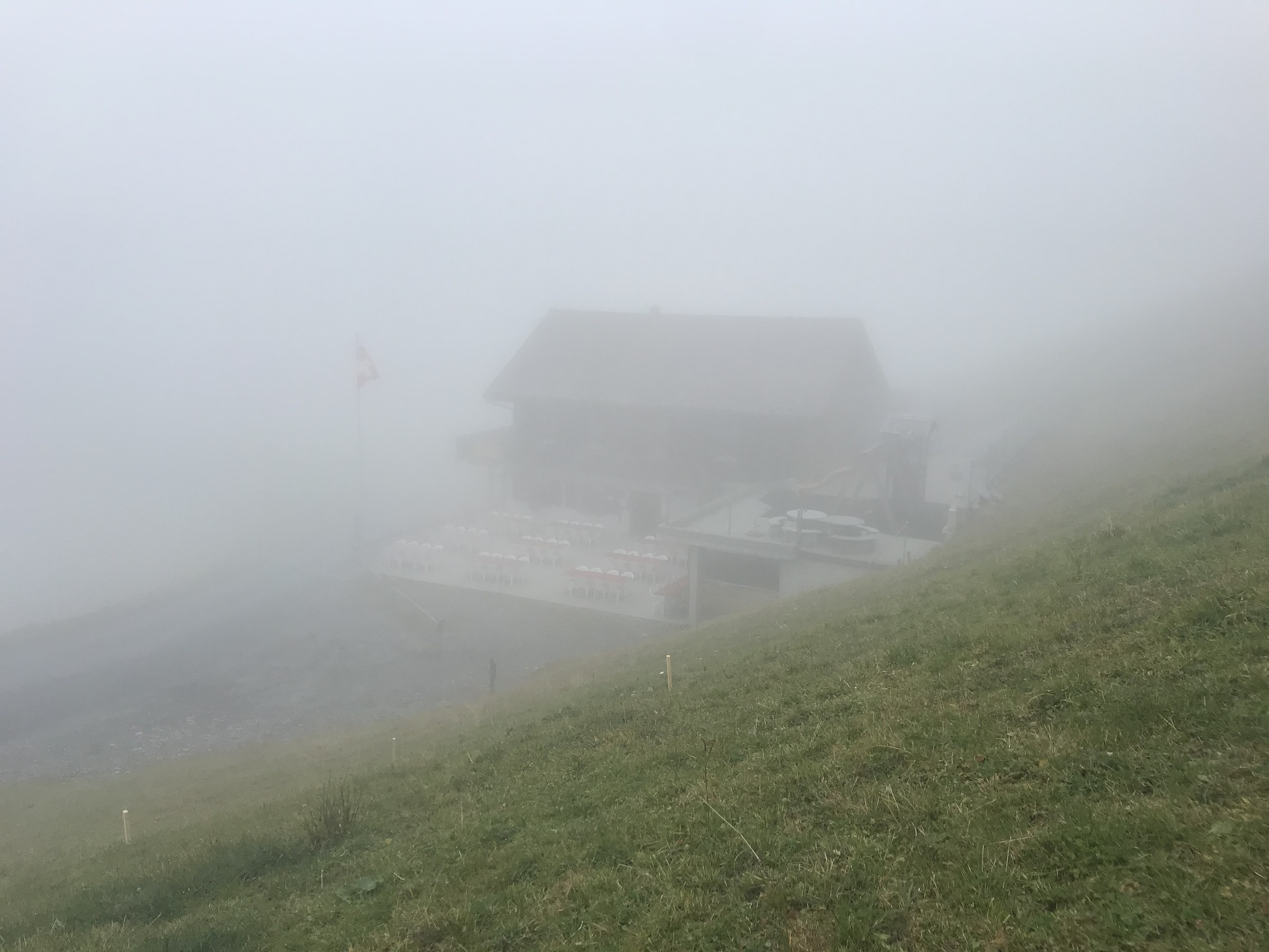 Den ganzen Vormittag lang war es recht sonnig, aber just zur Mittagszeit drückt Nebel rein. Nun ja, ich kenne das Panorama ja.