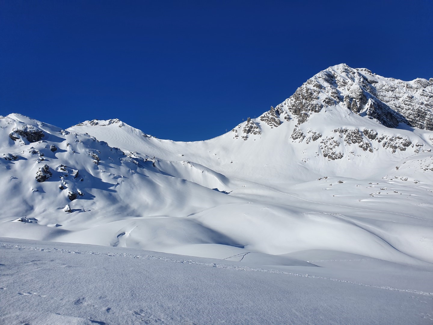 Ich bin hoch zum Rotschrofen gelaufen. Die Herzerl Hänge waren der Traum schlechthin. Anschließend haben wir die geöffnete Gastronomie genutzt: Der Wolf, die Mohnenfluh und die Schneggarei hatten bereits auf.