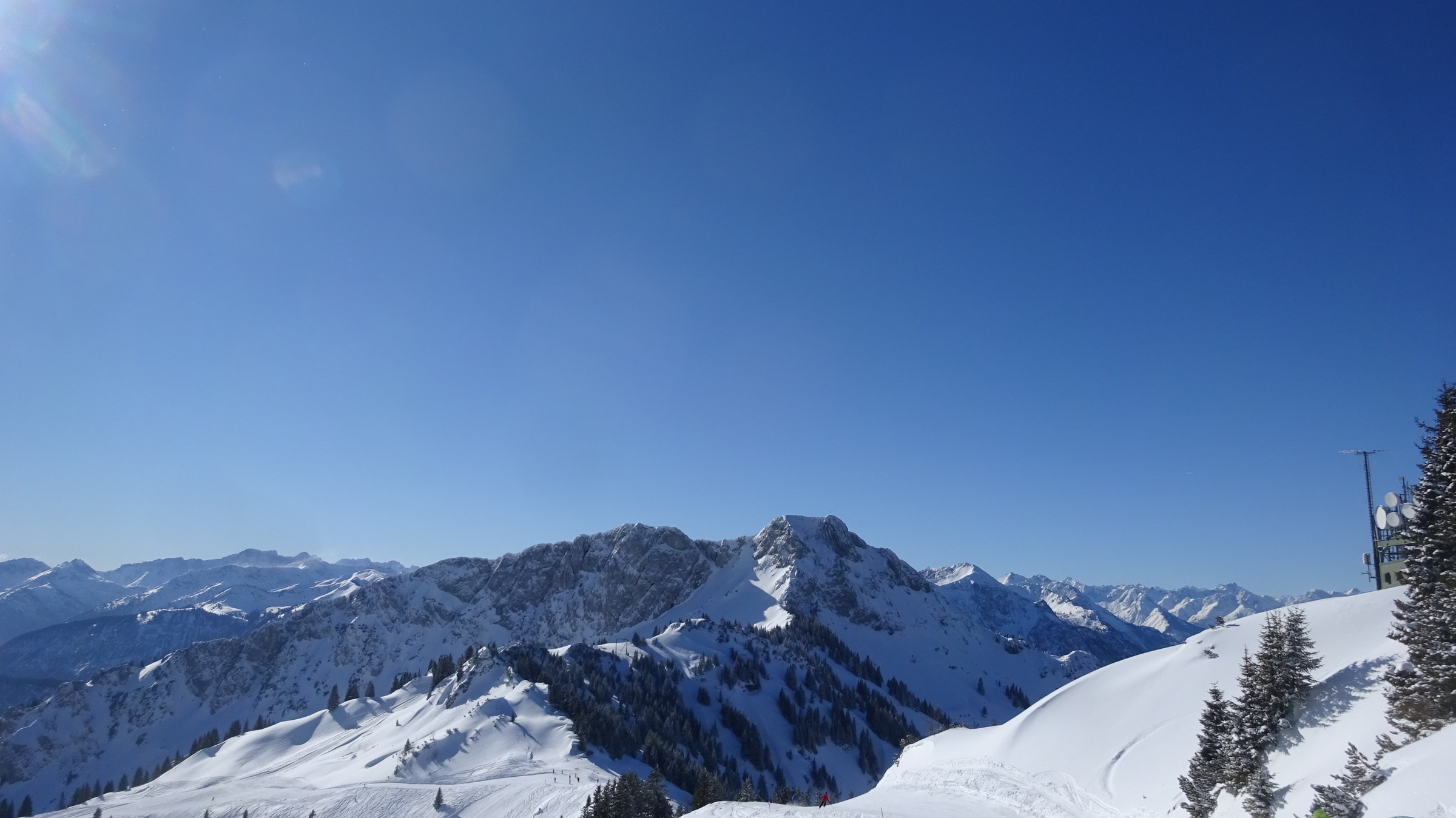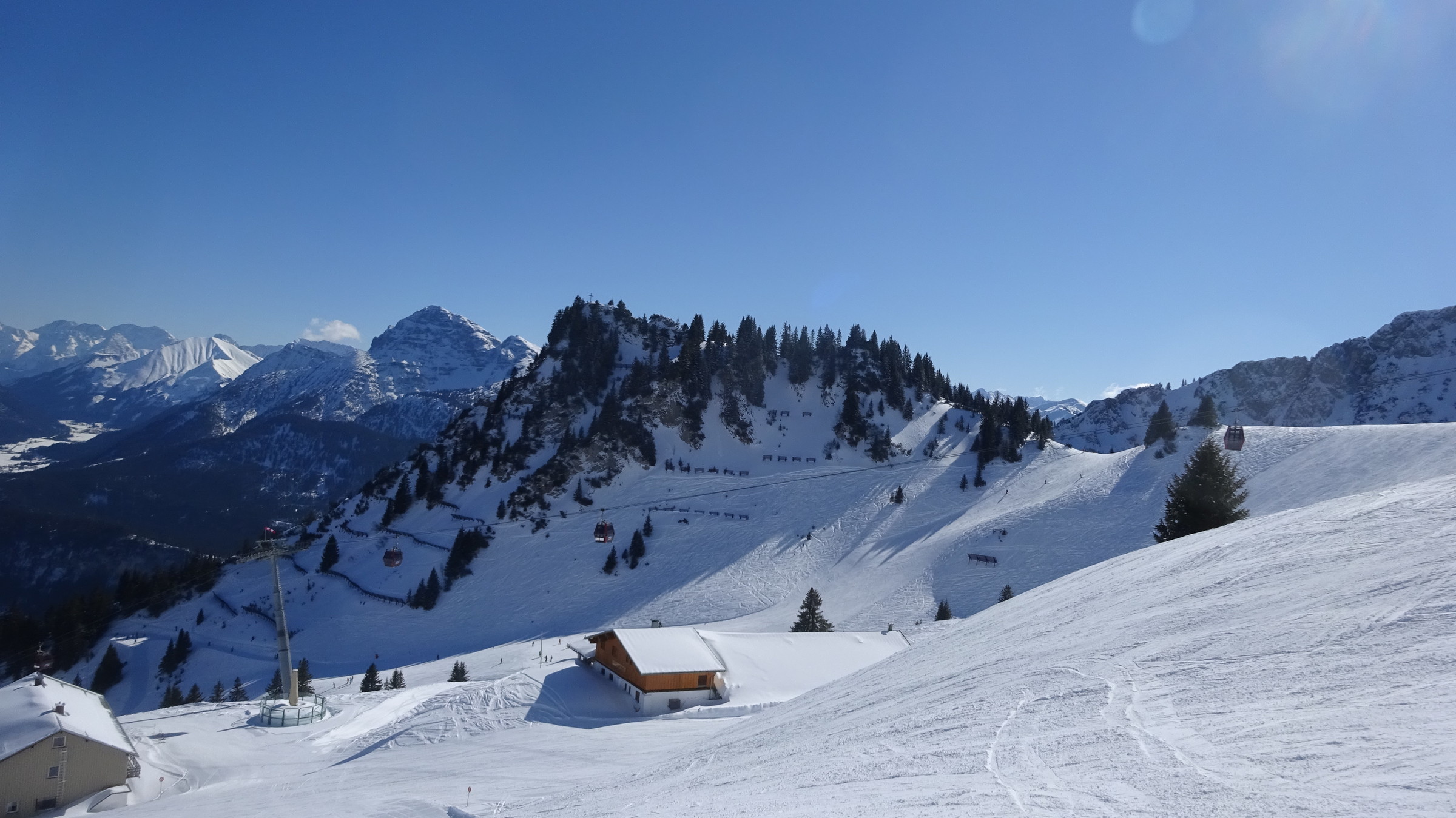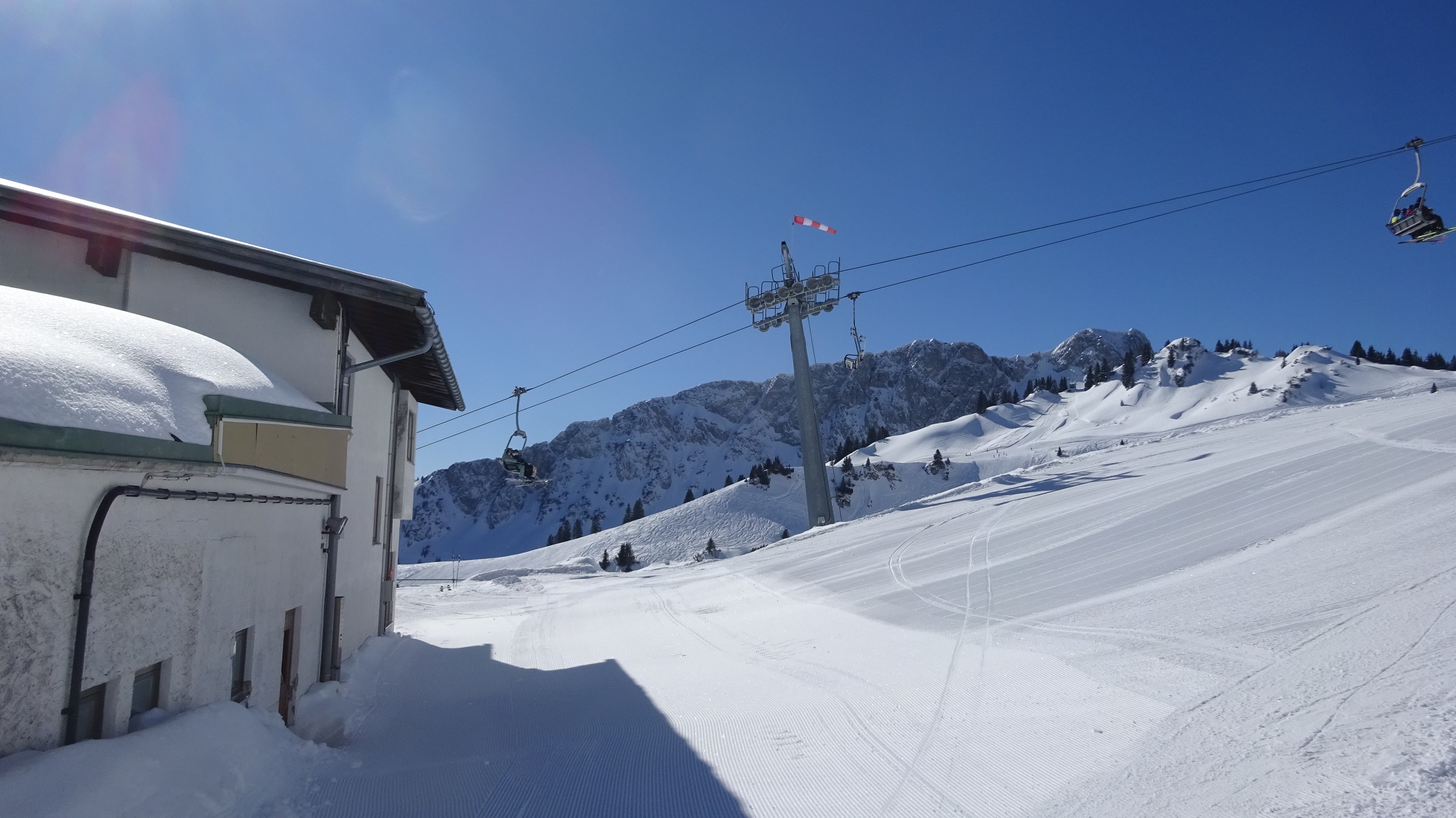 Von Beginn an Sonnenschein am Kamm merkte man den Wind, im Skigebiet selber nicht