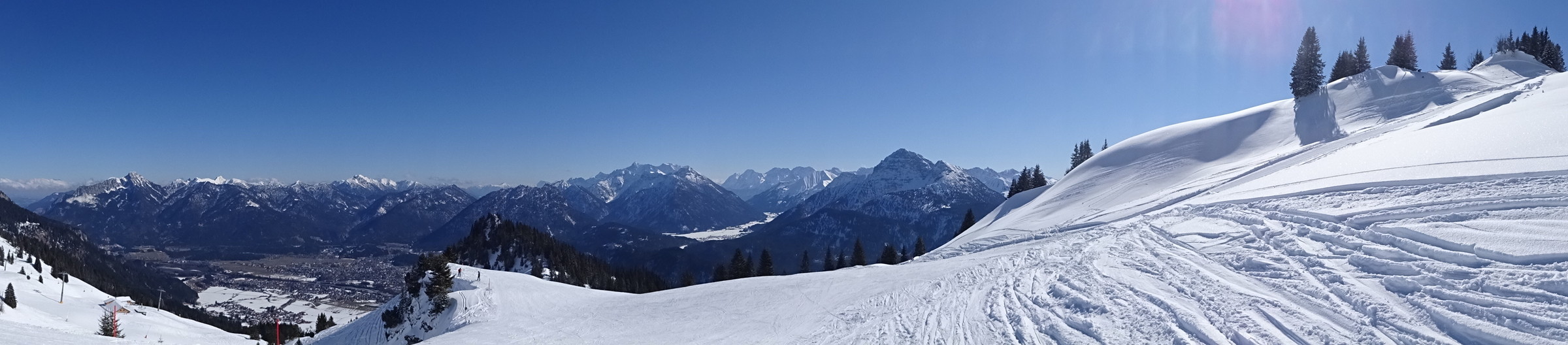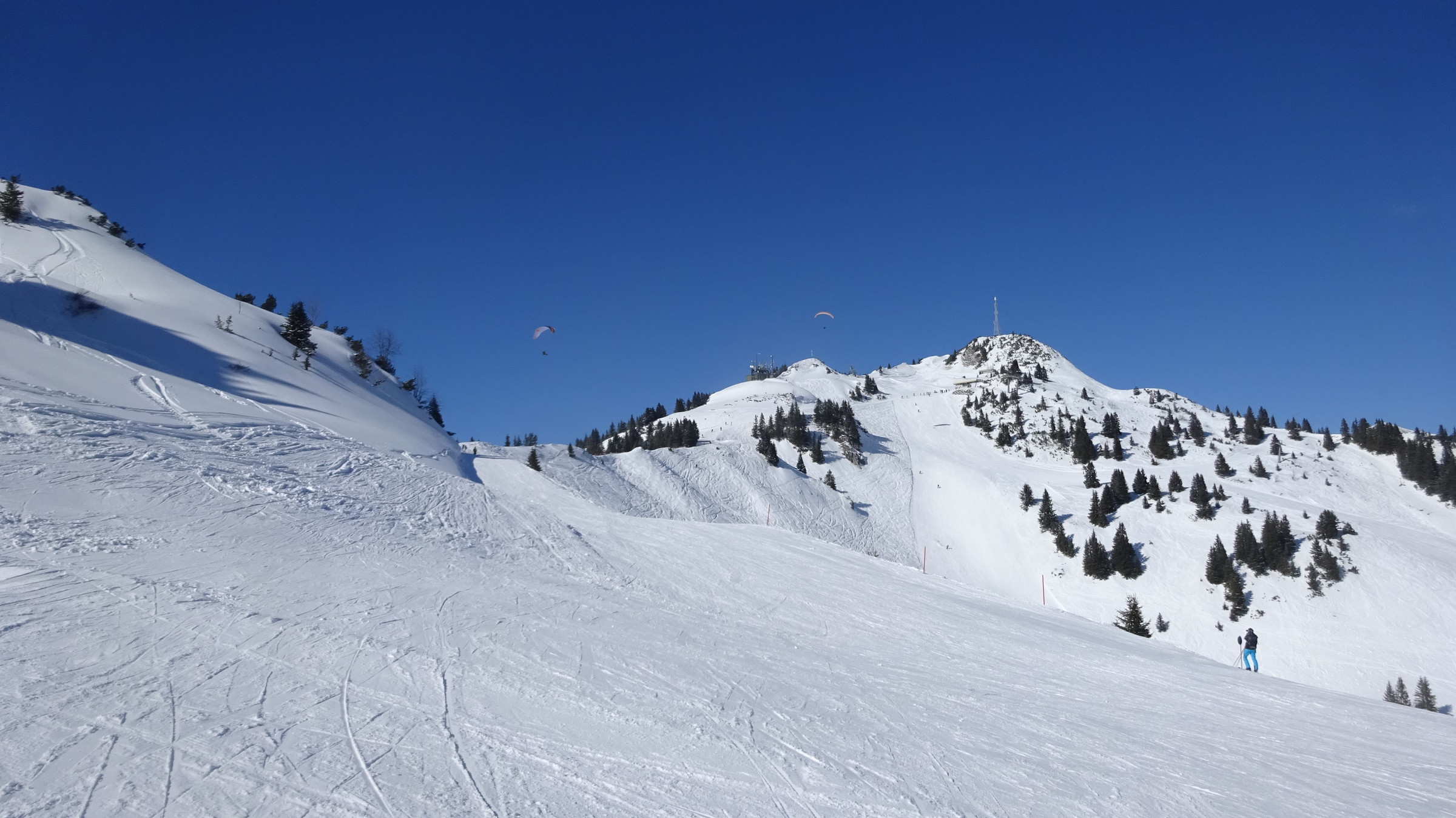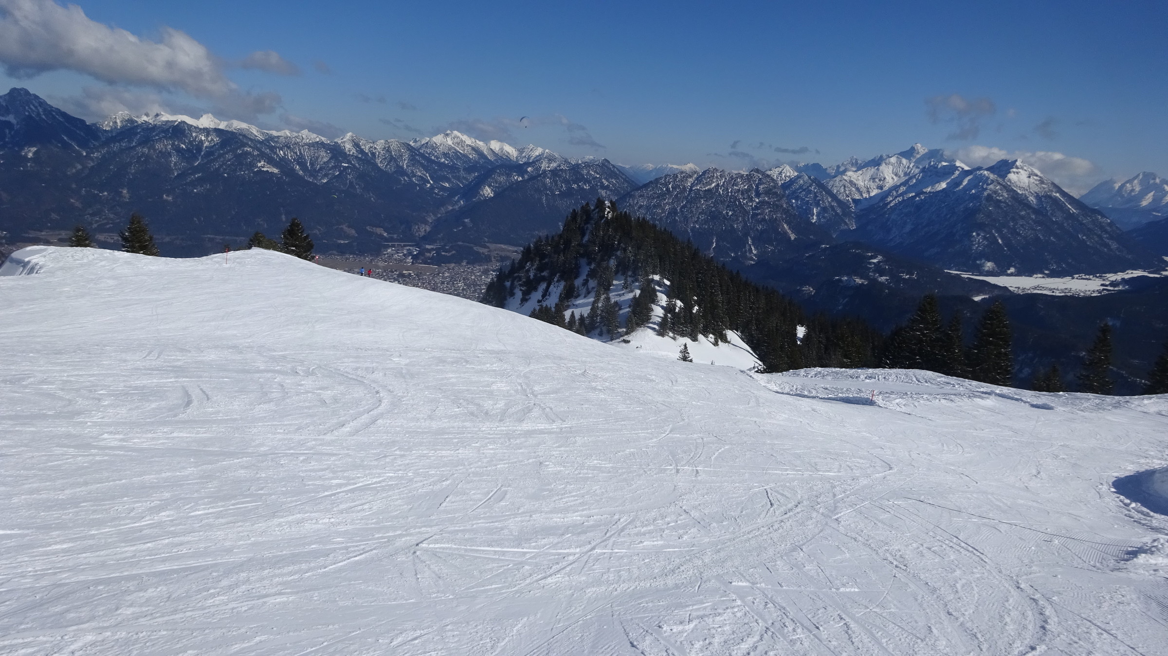 Von Beginn an Sonnenschein am Kamm merkte man den Wind, im Skigebiet selber nicht