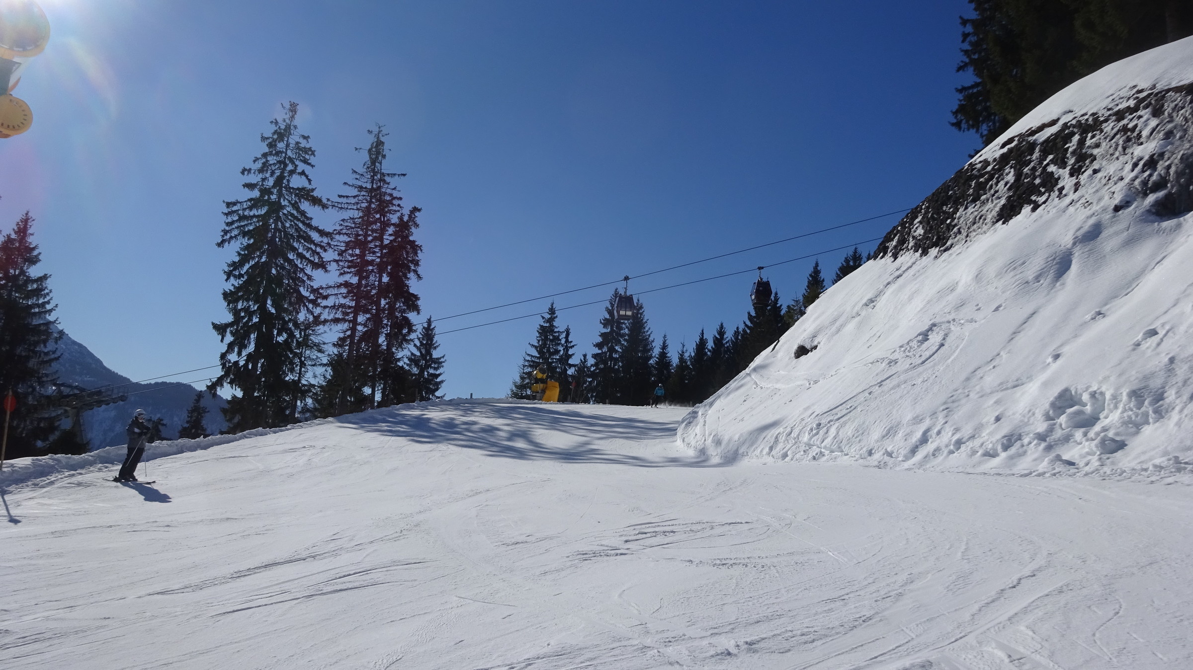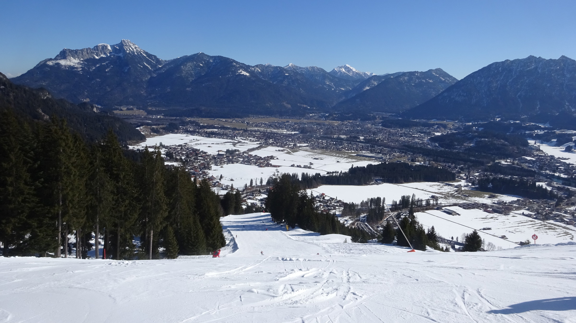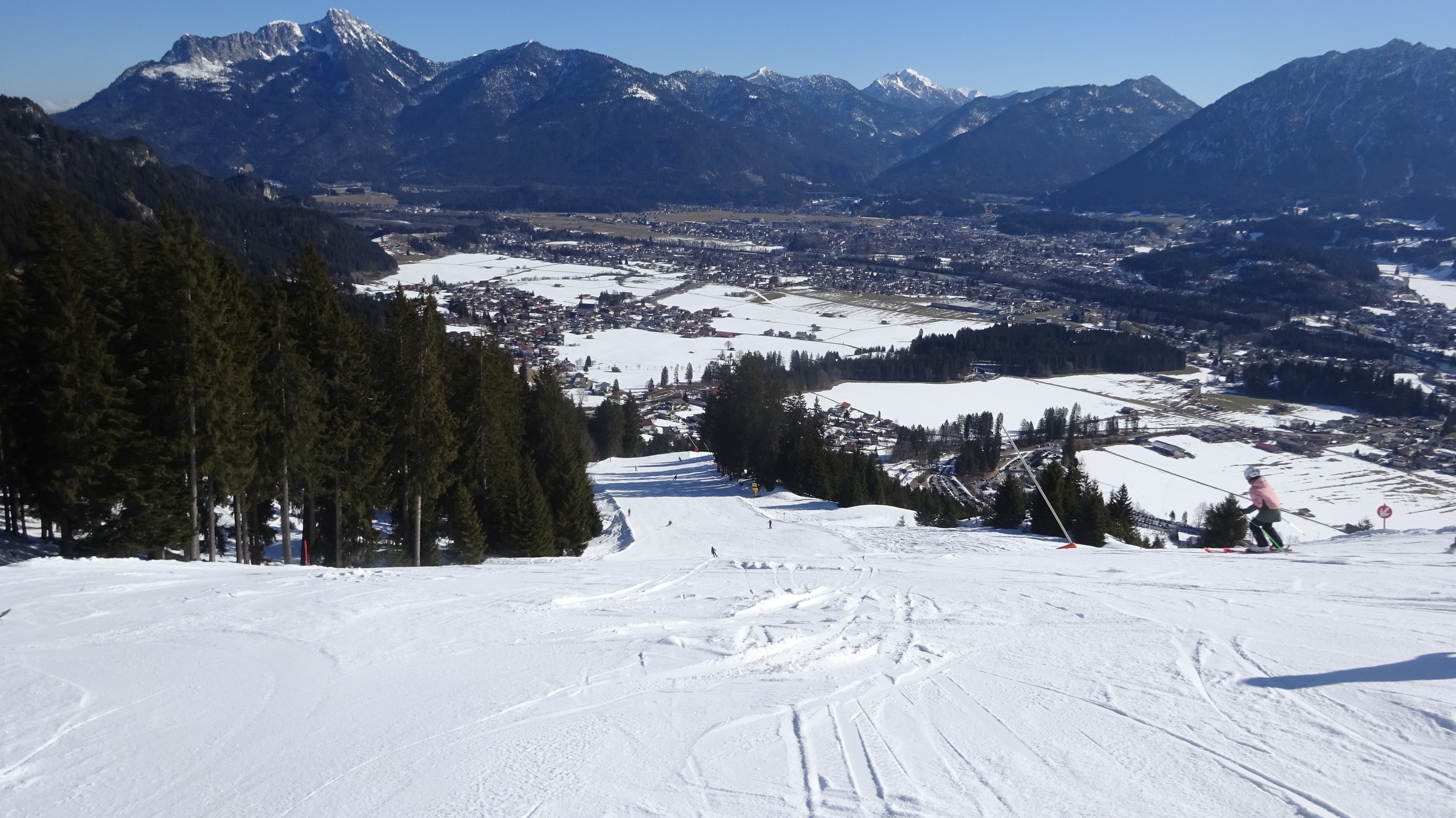 Heute ging es zum Hahnenkamm bei Reutte. Ich war um 8:20 Uhr am Parkplatz und um 8:30 am Lift, da gab es dann schon eine gute Wartezeit aber diese wurde mit den ersten Abfahrten im Höhenskigebiet beseitigt. Die Pisten waren perfekt präperiert und allgemein überzeugt das Lift Pistenverhältnis!!! Denn der 4er Sessellift erschließt 7 verschiedene Pisten welche sehr breit sind. Das beste ist aber, dass man die Pisten im oberen interresanten Teil immer für sich alleine hat, obwohl es am Sessellift sehr gute Wartezeiten gab, nur im unteren Teil wo sie alle zusammenführen wird es ein bisschen voller. Zudem überzeugt das Panorama. Die Talabfahrt ging in der Früh sehr gut wurde aber ab Mittag im unteren Teil ein bisschen eisig. Was ich mitbekam war das heute der vollste Tag im Gebiet in dieser Saison. Ich kann den Hahnekamm nur weiterempfehlen und bereue es, dass ich ihn nicht schon vorher entdeckt habe
