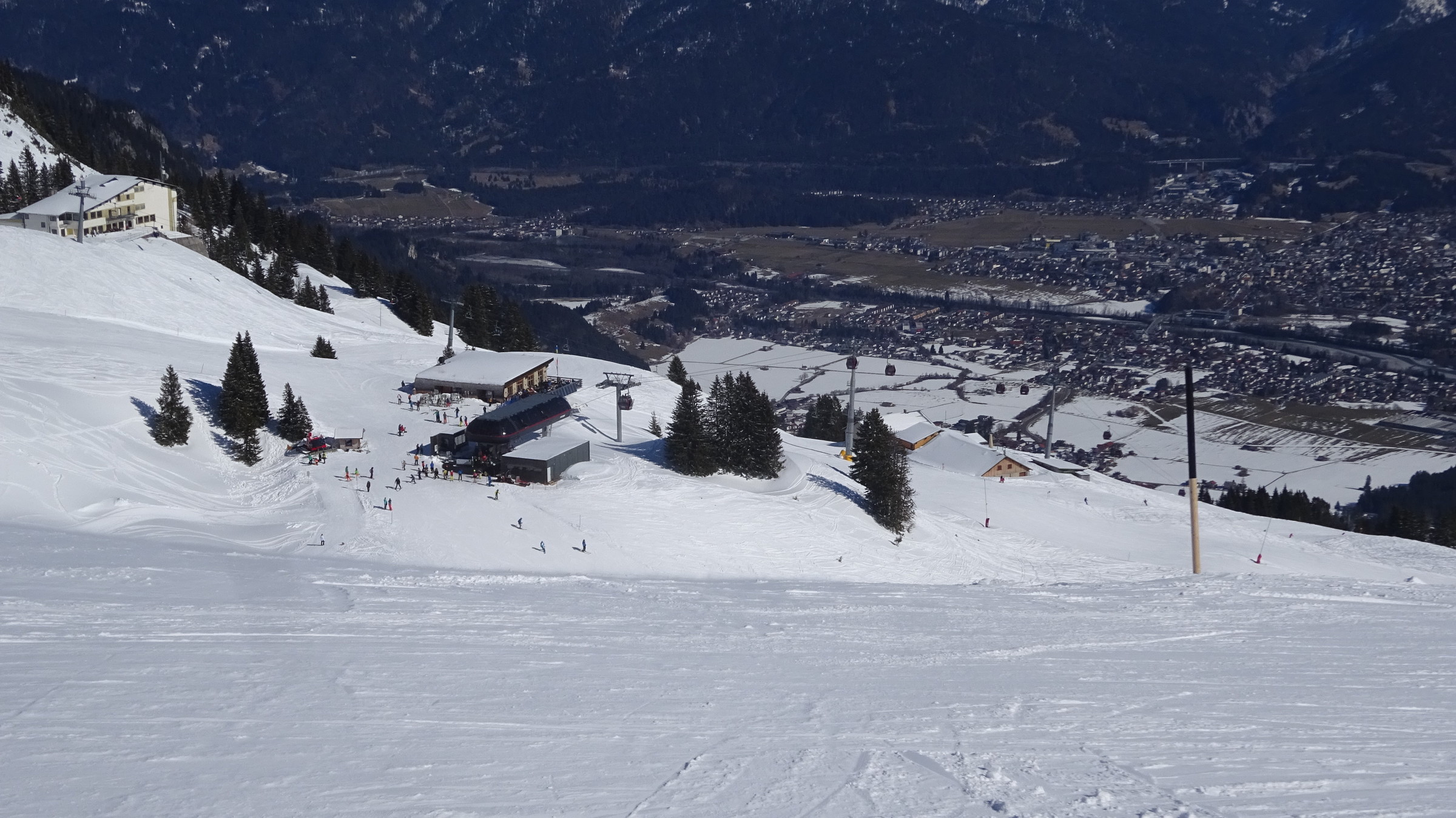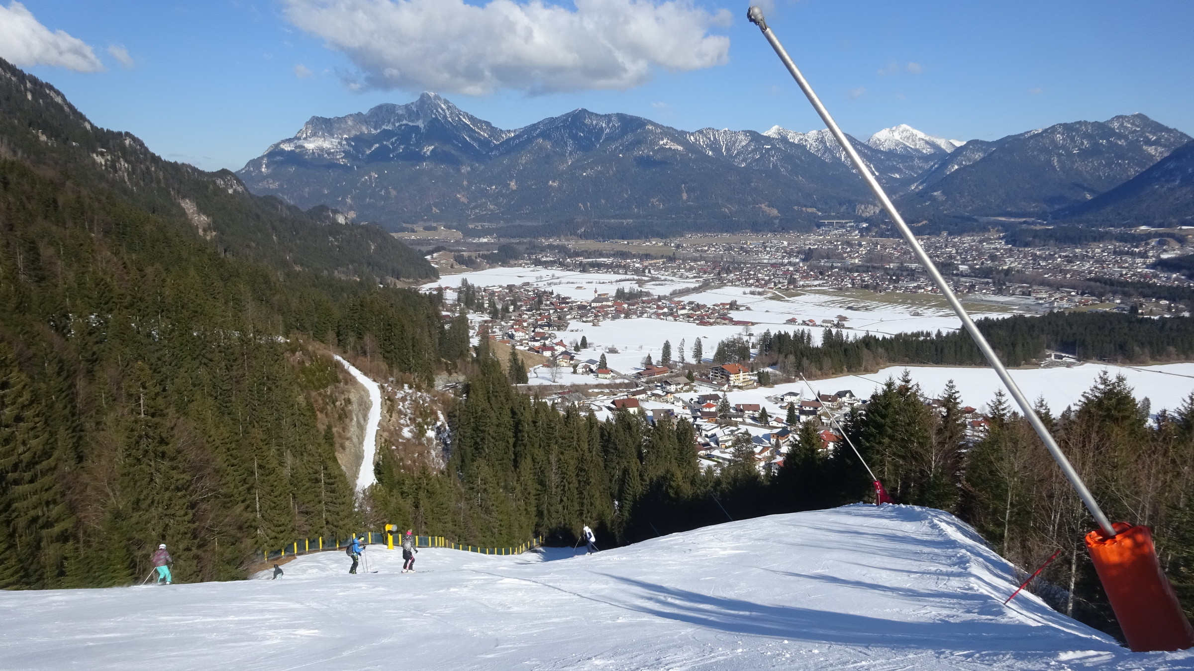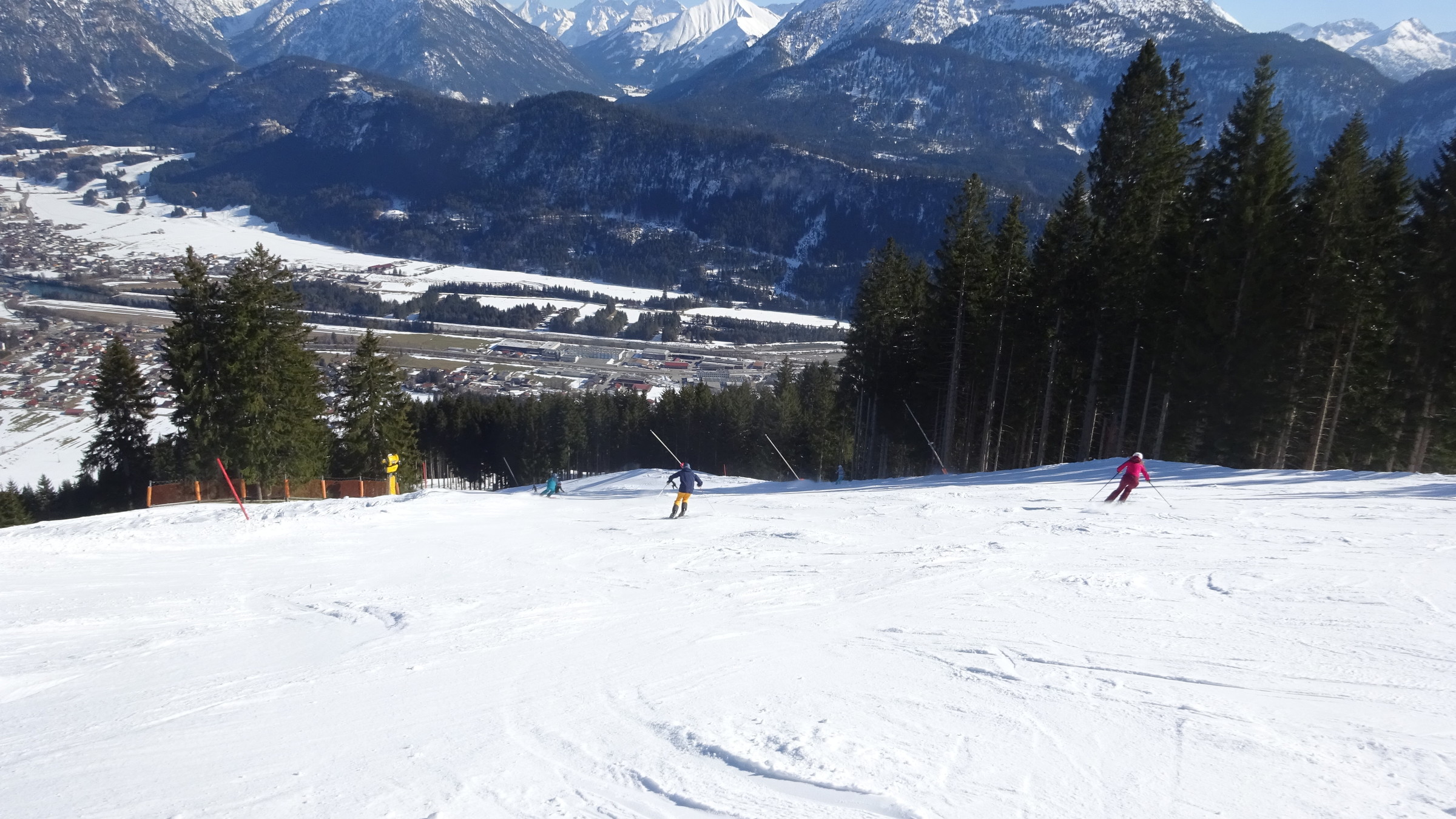 Heute ging es zum Hahnenkamm bei Reutte. Ich war um 8:20 Uhr am Parkplatz und um 8:30 am Lift, da gab es dann schon eine gute Wartezeit aber diese wurde mit den ersten Abfahrten im Höhenskigebiet beseitigt. Die Pisten waren perfekt präperiert und allgemein überzeugt das Lift Pistenverhältnis!!! Denn der 4er Sessellift erschließt 7 verschiedene Pisten welche sehr breit sind. Das beste ist aber, dass man die Pisten im oberen interresanten Teil immer für sich alleine hat, obwohl es am Sessellift sehr gute Wartezeiten gab, nur im unteren Teil wo sie alle zusammenführen wird es ein bisschen voller. Zudem überzeugt das Panorama. Die Talabfahrt ging in der Früh sehr gut wurde aber ab Mittag im unteren Teil ein bisschen eisig. Was ich mitbekam war das heute der vollste Tag im Gebiet in dieser Saison. Ich kann den Hahnekamm nur weiterempfehlen und bereue es, dass ich ihn nicht schon vorher entdeckt habe