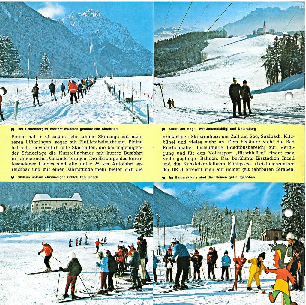 Auf einer weiteren Aufnahme ist das Skigebiet am Fuße des Fuderheubergs zu sehen (wenige 100 Meter weiter südlich von Schloß Staufeneck, wo es heute einen Aldimarkt gibt). Ebenfalls ein Doppel-Seillift, der oben noch eine zweite Sektion gehabt haben dürfte: