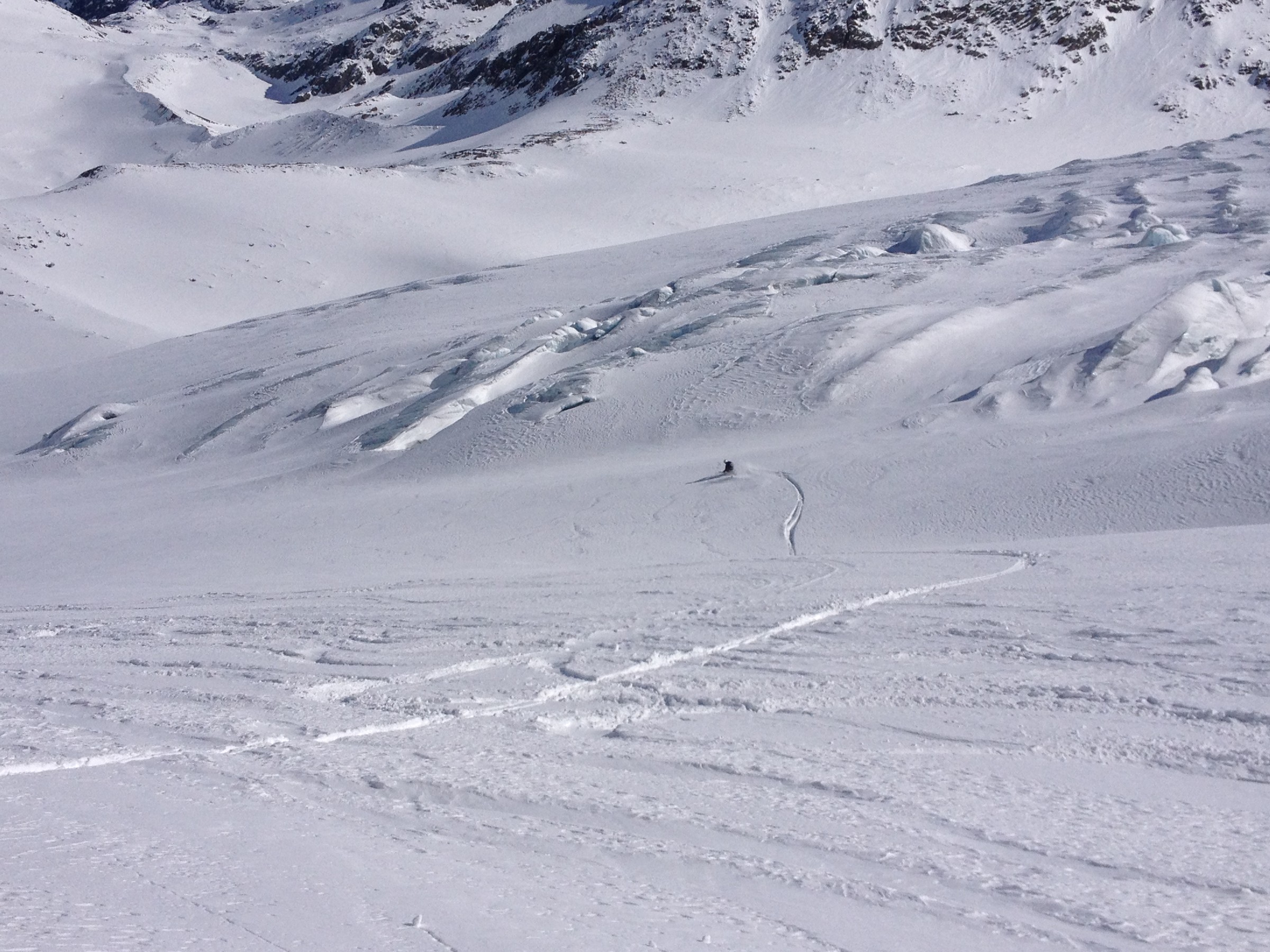 Seitenblick 9Uhr16. An und für sich tolle Hänge an der DSB Wildspitz. Falls man diese zufällig steinfrei schaffen sollte..