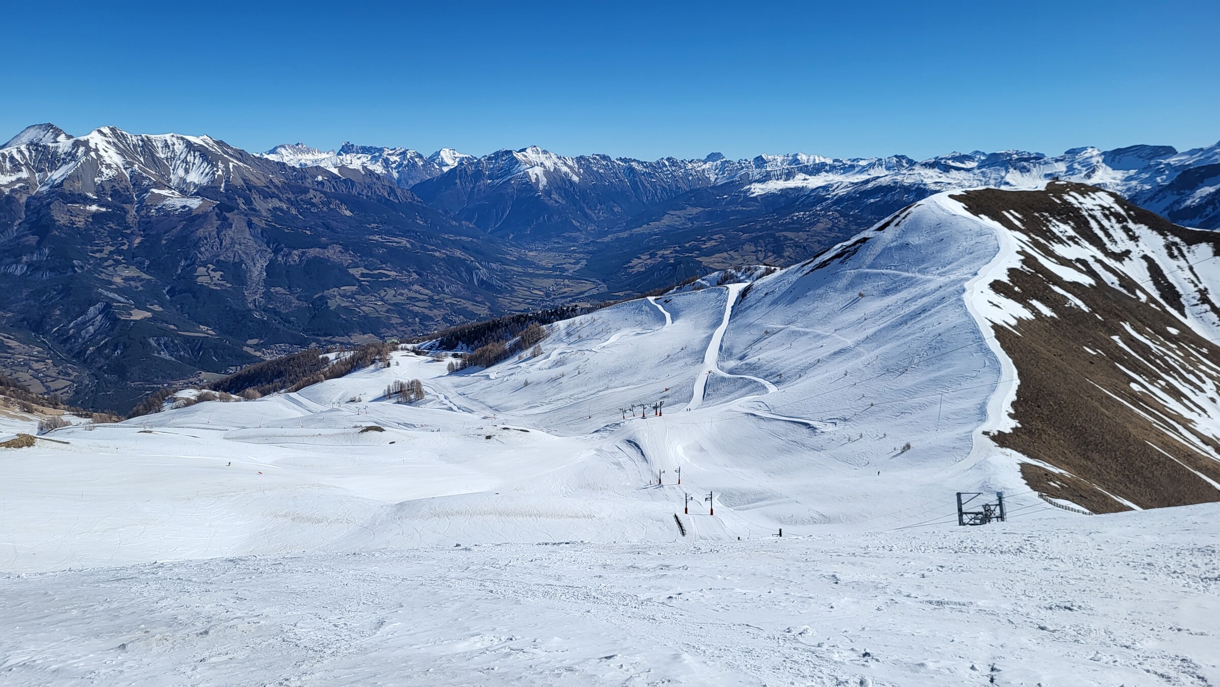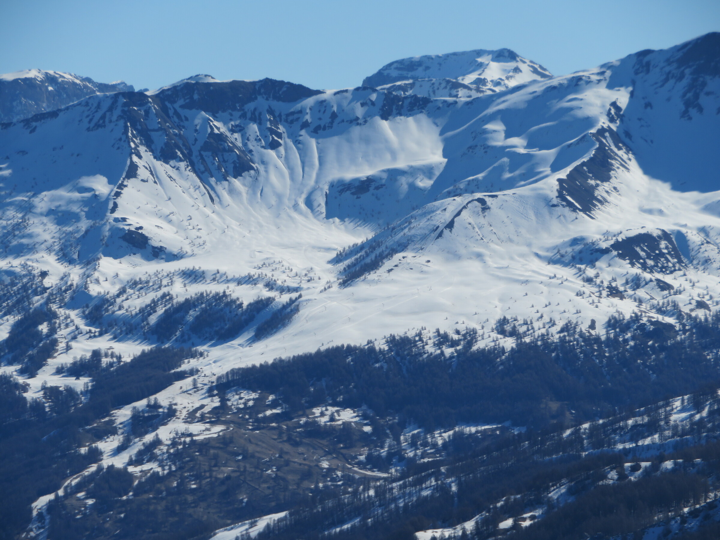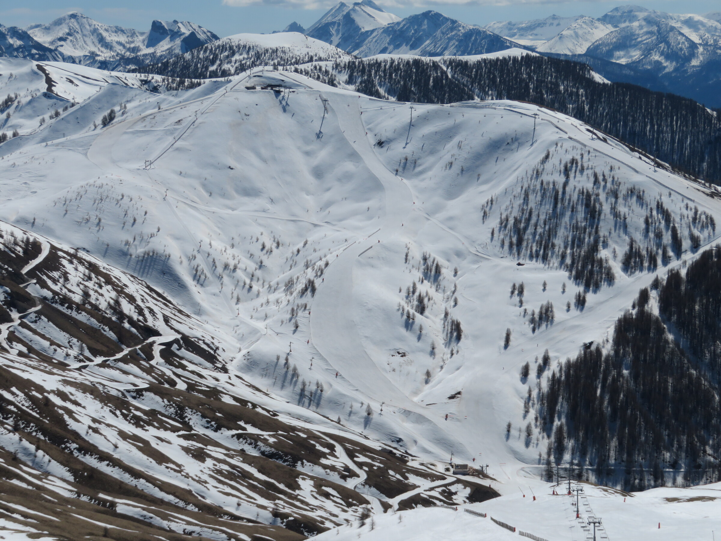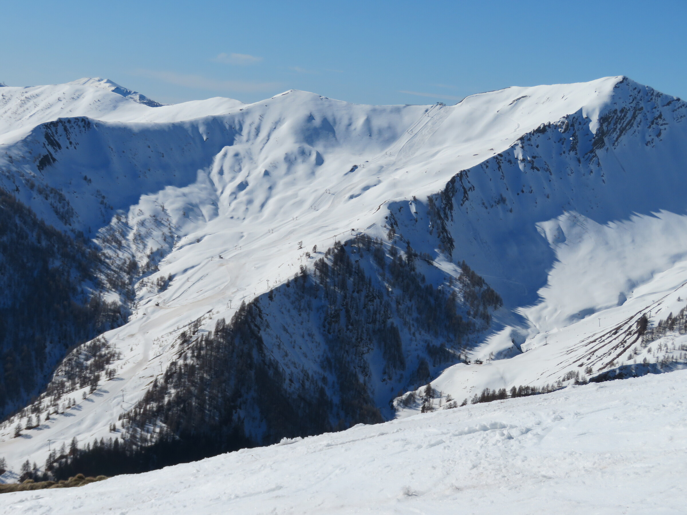 > Blick ins Nachbarskigebiet Le Sauze. Ob sich hier in den nächsten Tagen auch noch ein Besuch ausgehen wird?