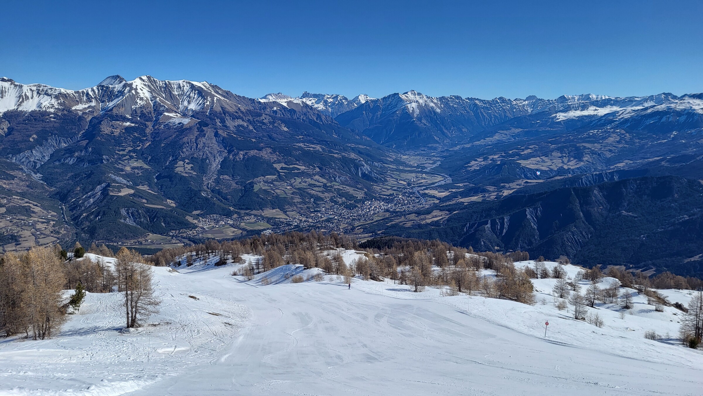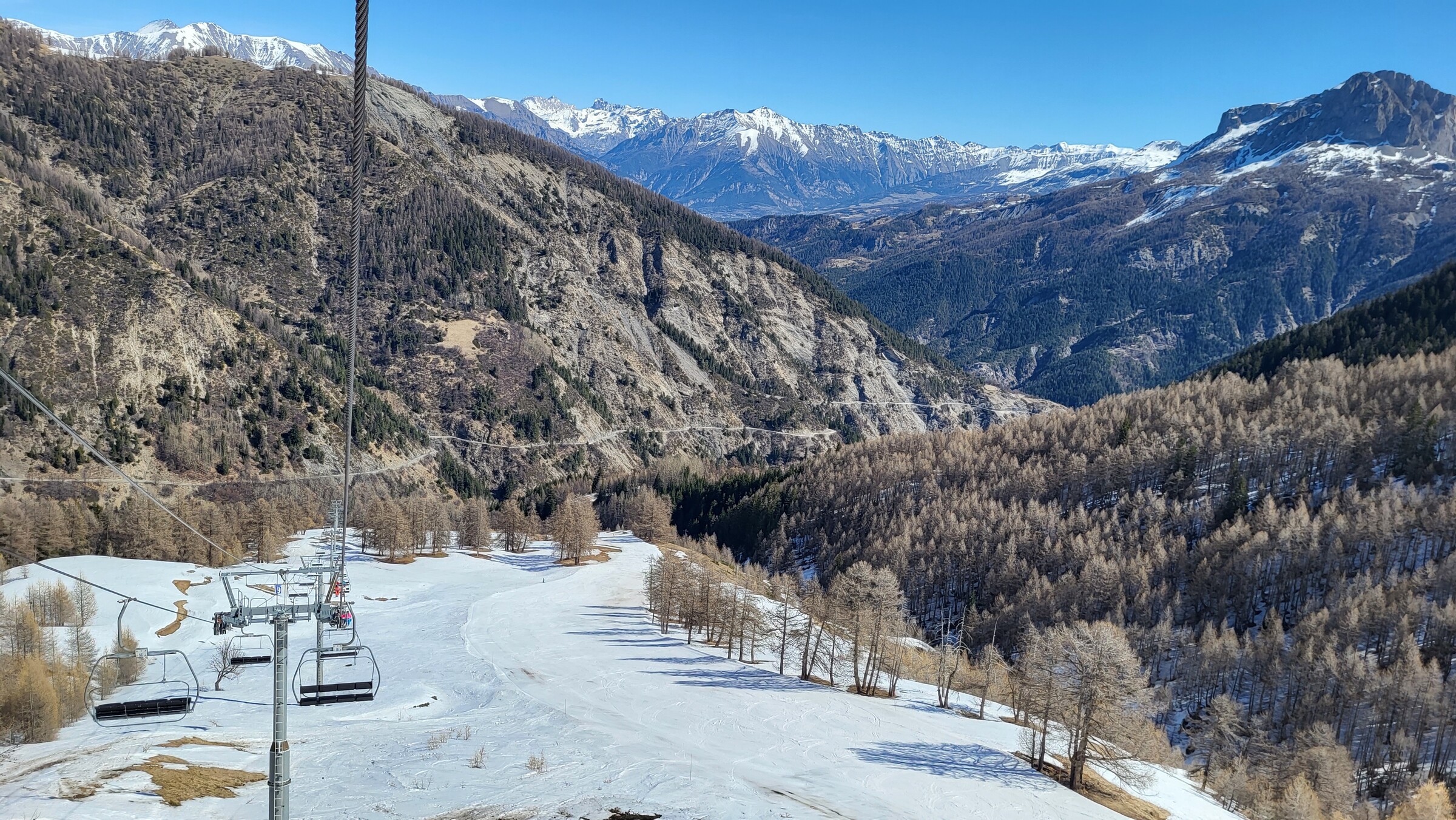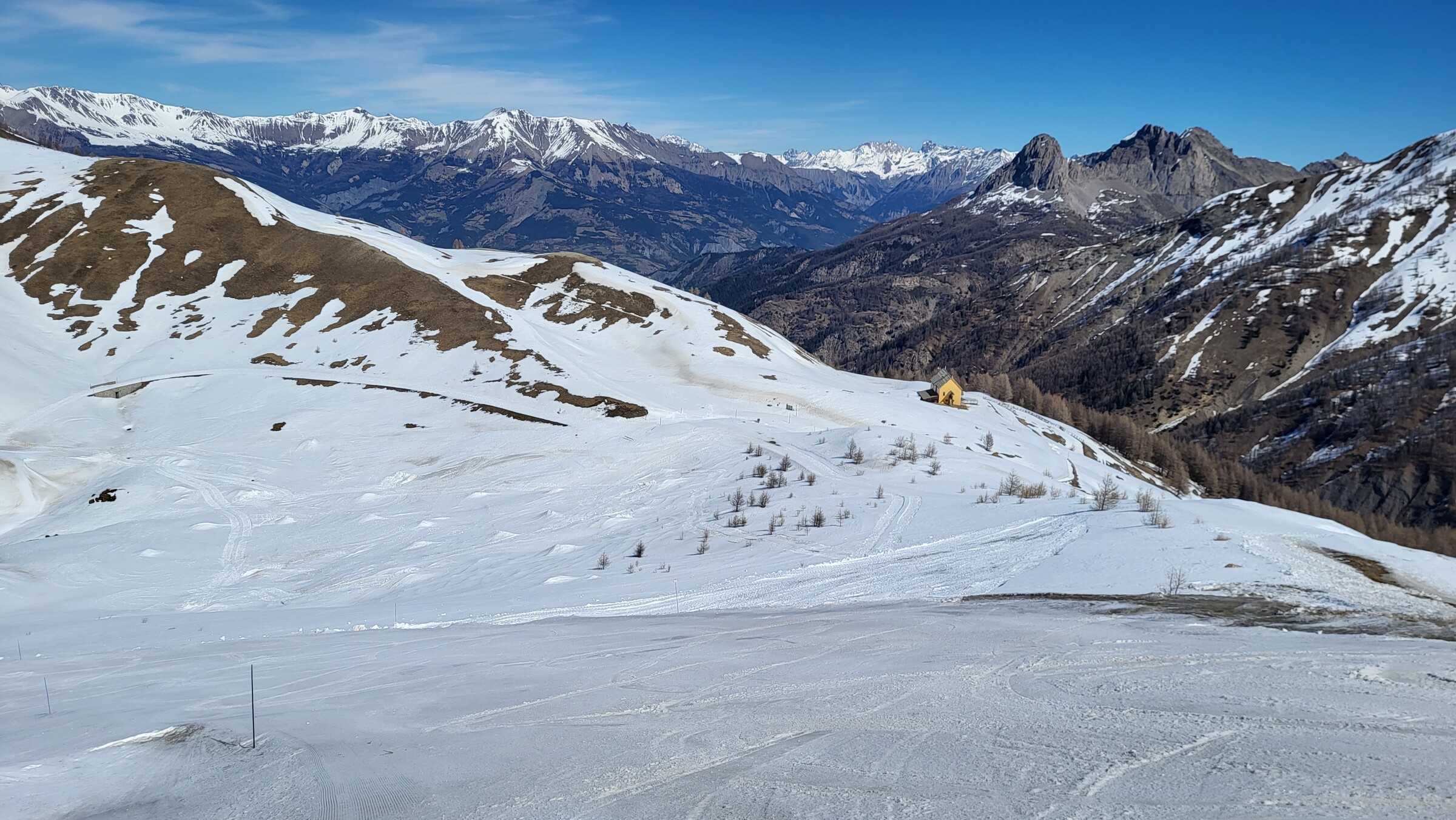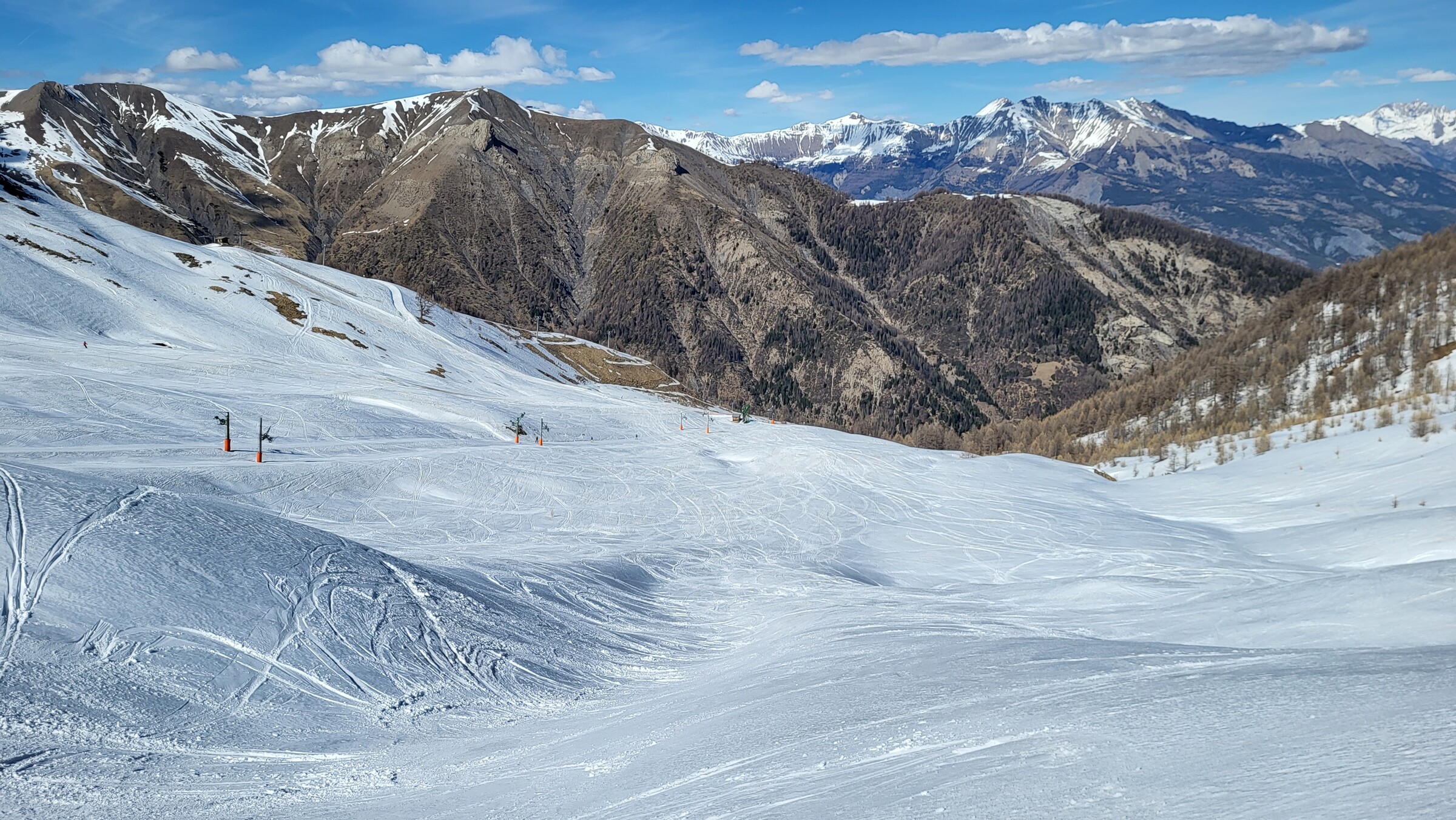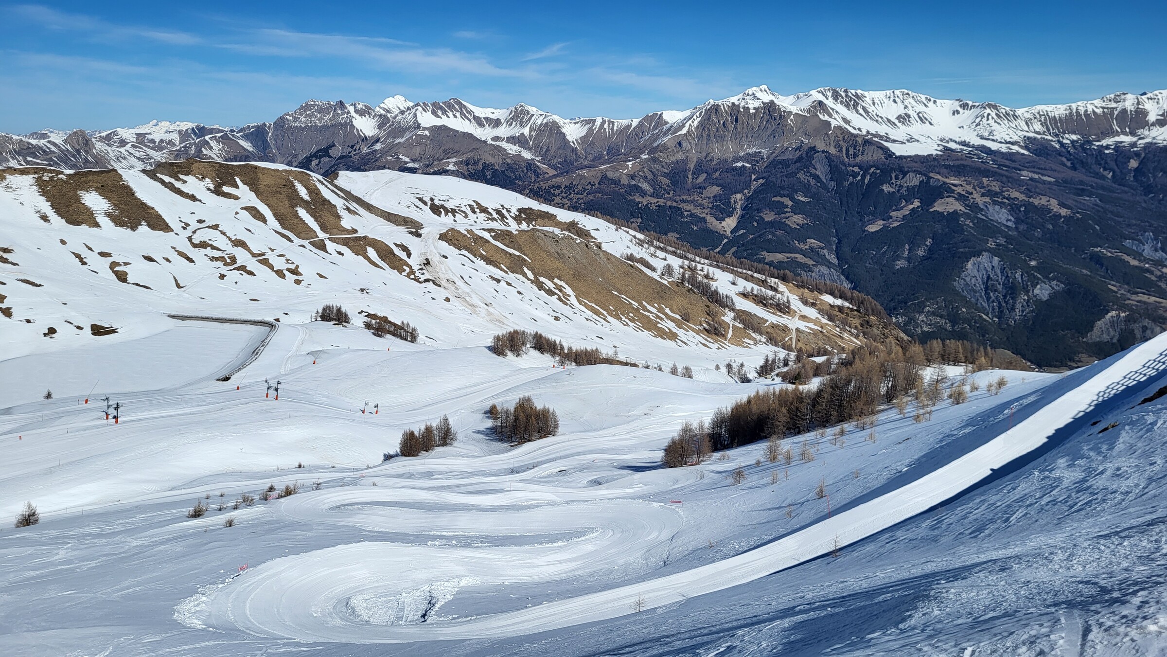 > Blick ins Nachbarskigebiet Le Sauze. Ob sich hier in den nächsten Tagen auch noch ein Besuch ausgehen wird?