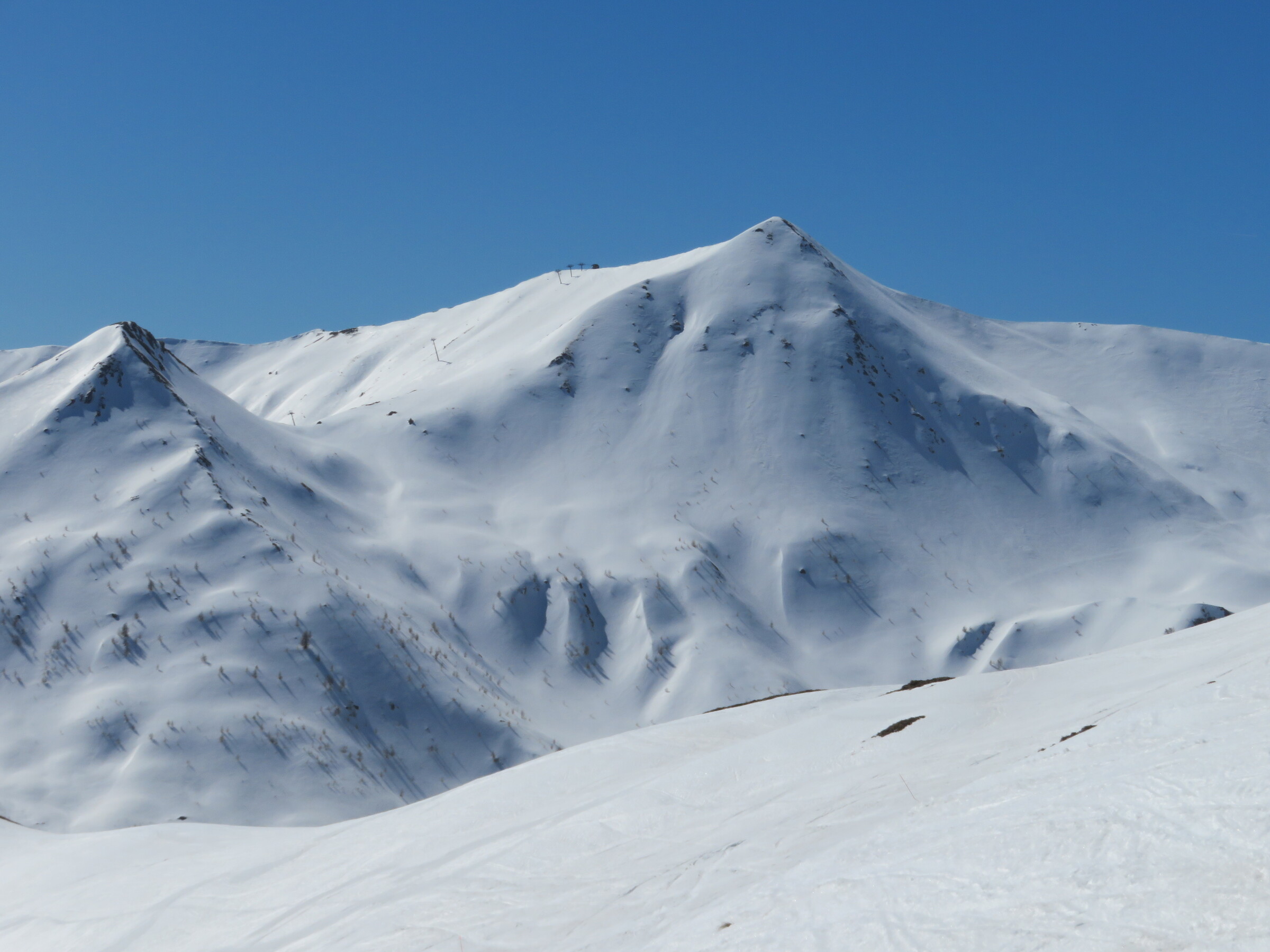 > Durch einen schwerwiegenden Defekt an der 6KSB Chaup (war die ganzen letzten Saisonswochen außer Betrieb) leider nicht erreichbar: Der eigentlich sehr schneesichere Bereich am Observatoire