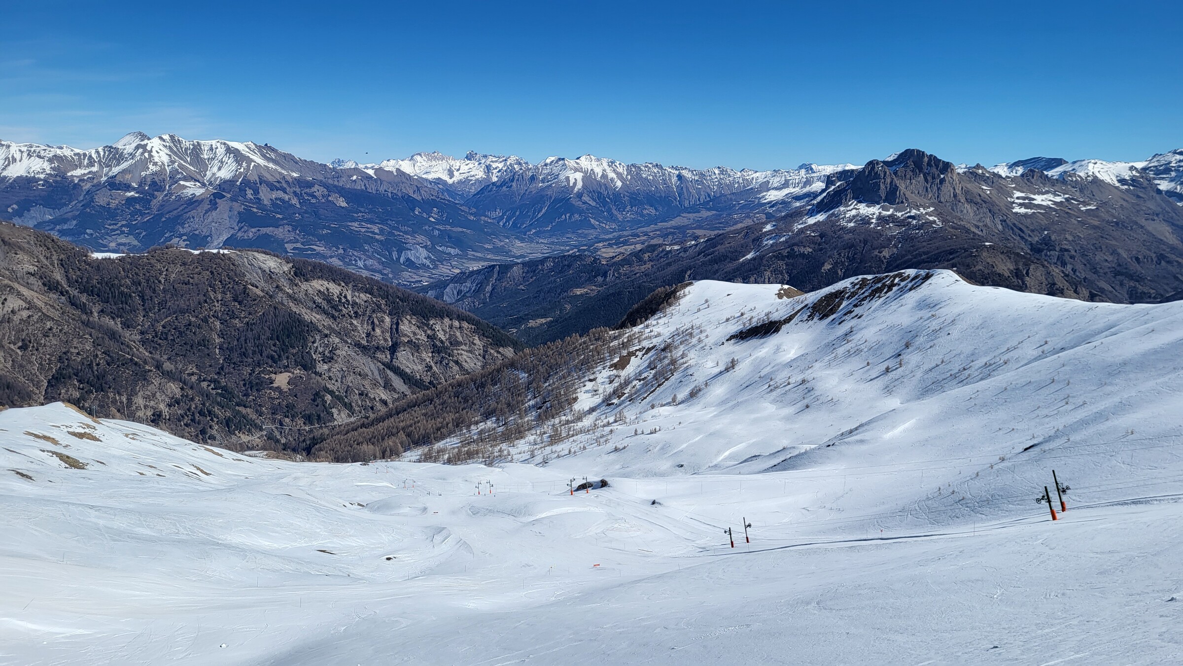Trotz eingeschränktem Pistenangebot wieder ein genialer Skitag. Meinem Geschmack nach eines der schönsten Skigebiete der Alpen: Weitläufig, Hänge aller Expositionen, große Variantenvielfalt je Lift, steile Hänge und interessantes, pistennahes Gelände sowie Aussicht in die Landschaften der Provence. Ein Muss, wenn man in dieser Region unterwegs ist!