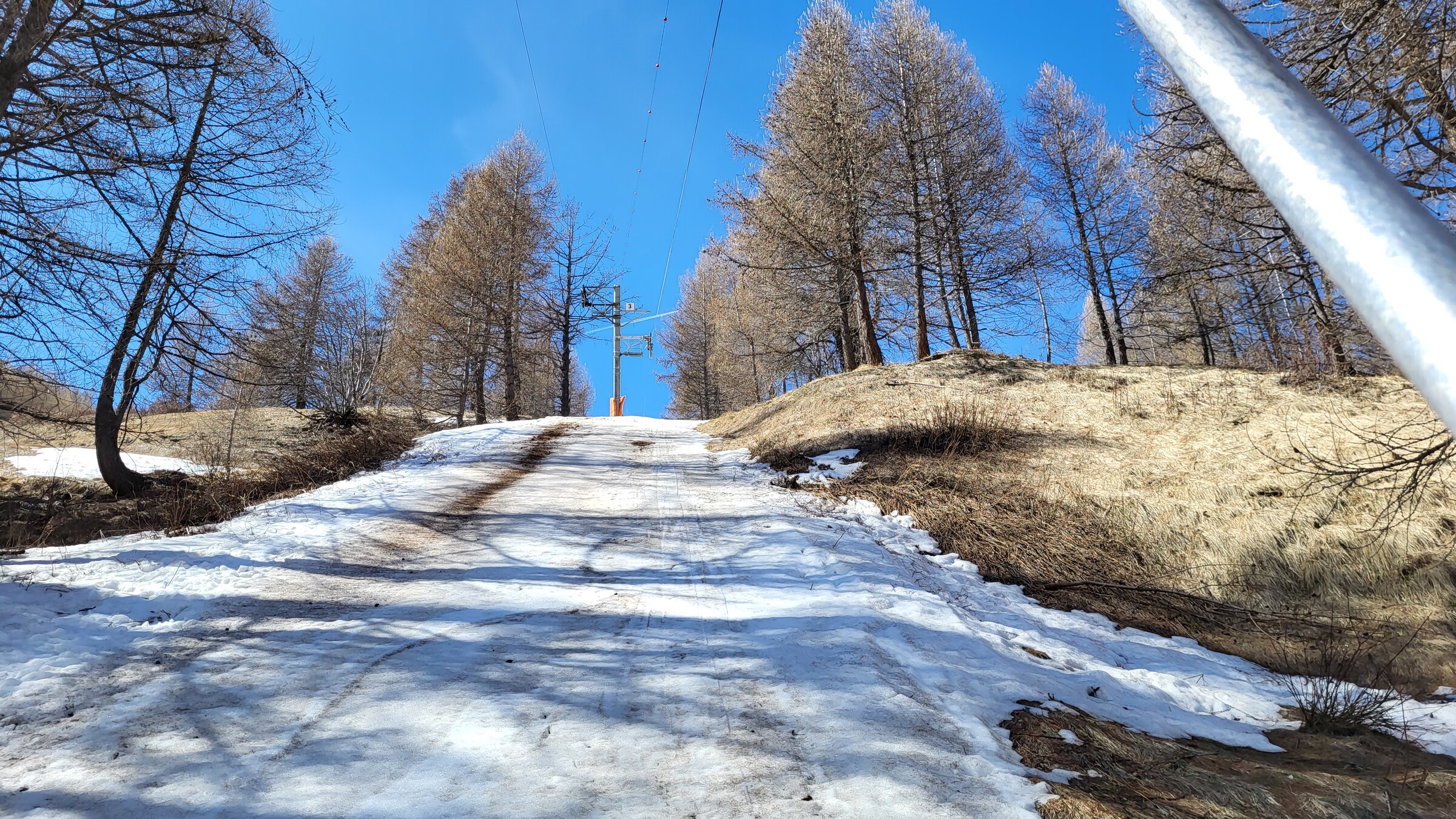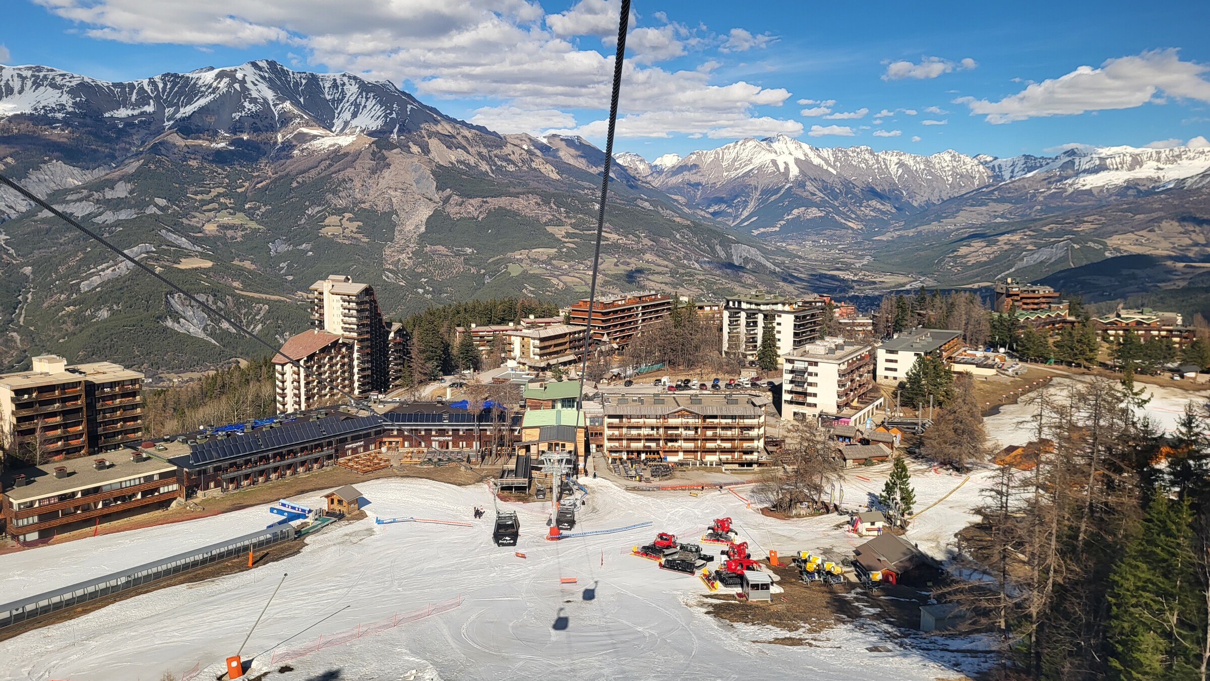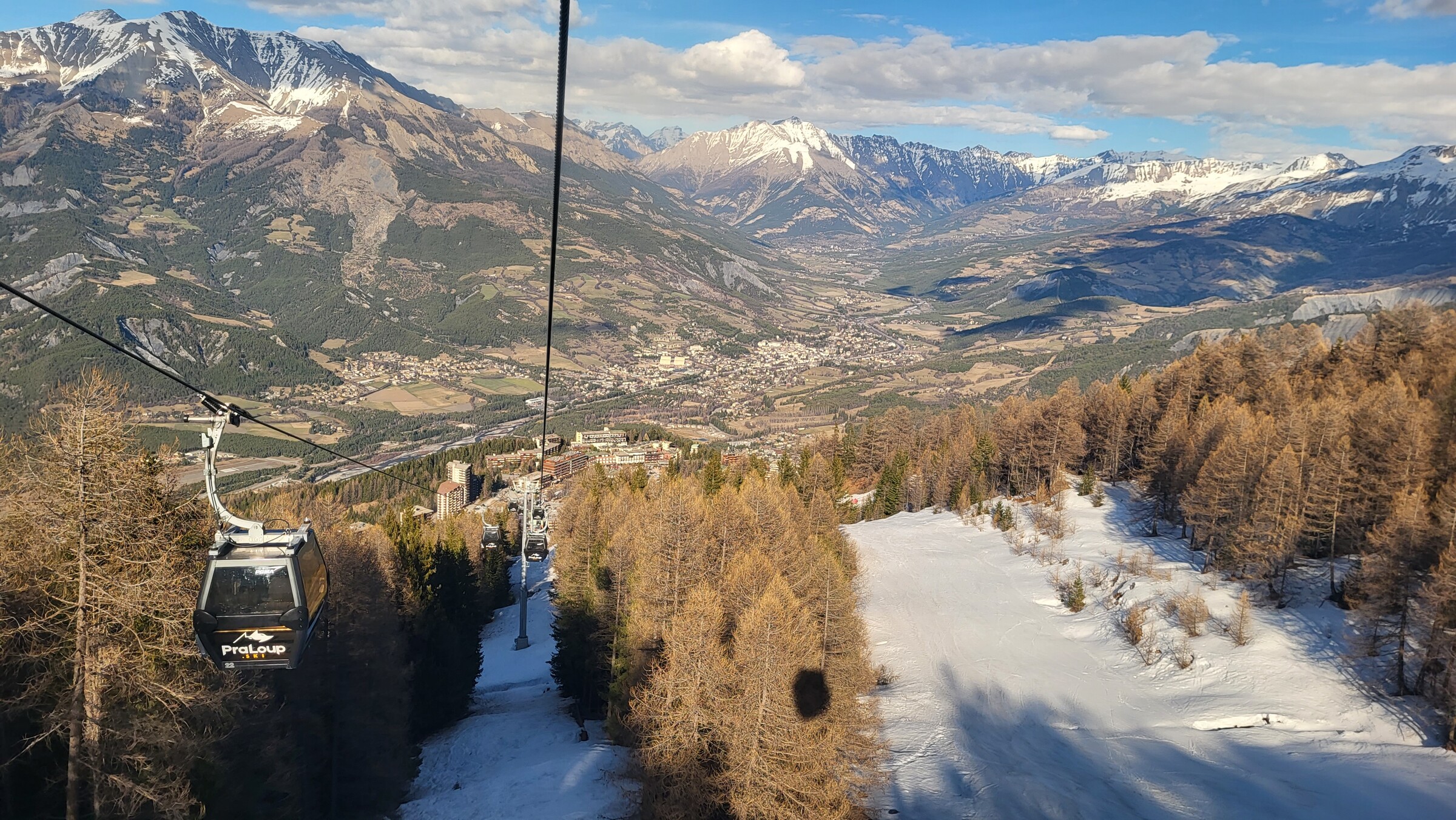 > Da der Verbindungsweg nicht mehr ausreichend Schnee hat, geht es bergab mit der 3SB Richtung Allos