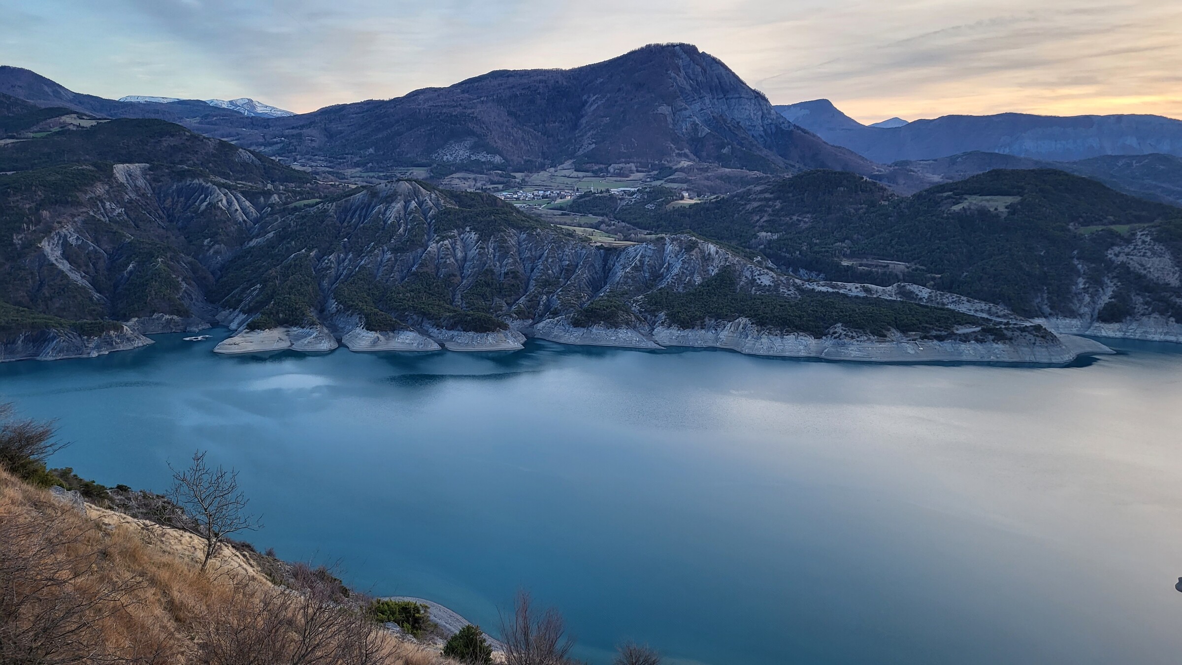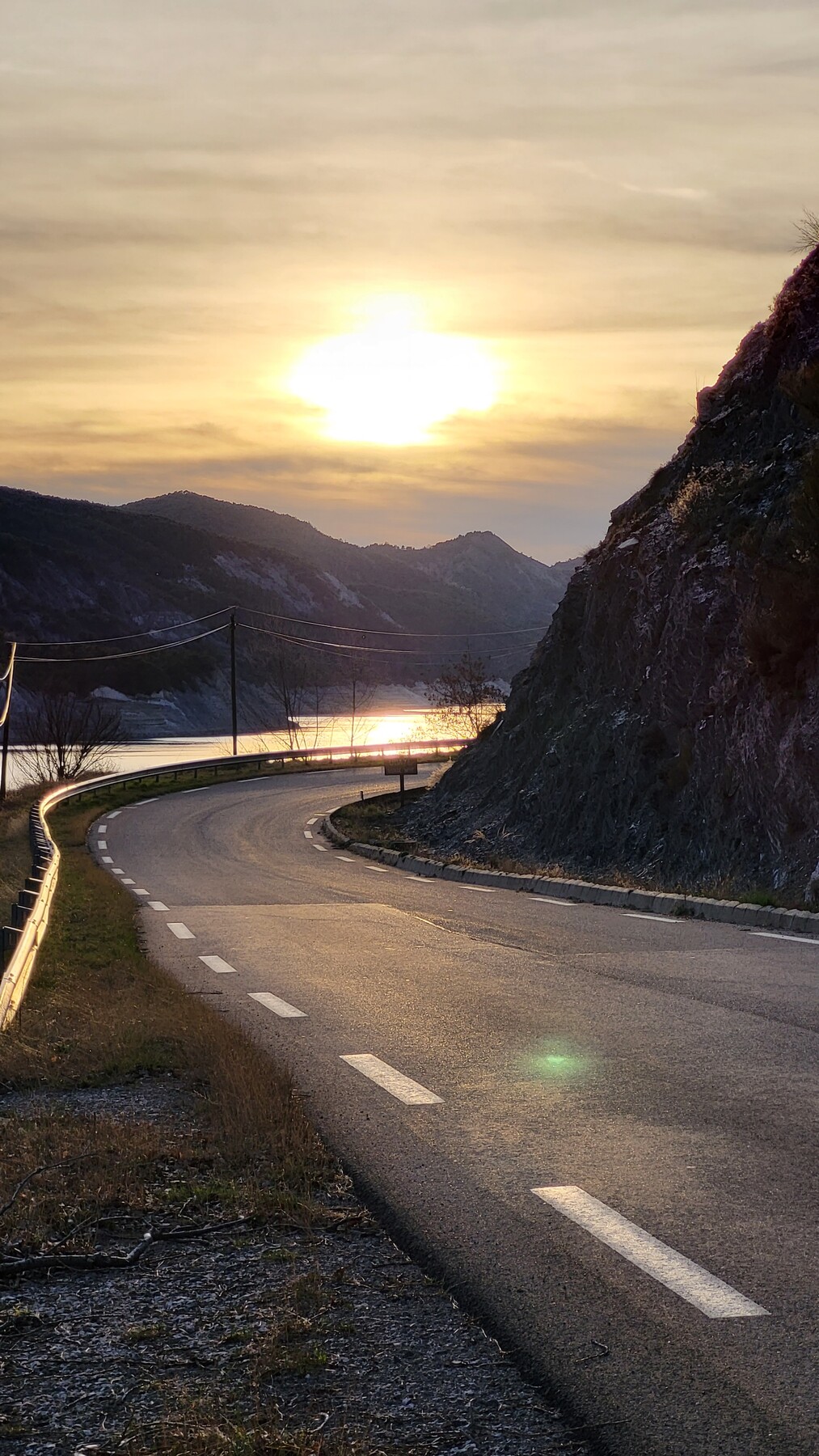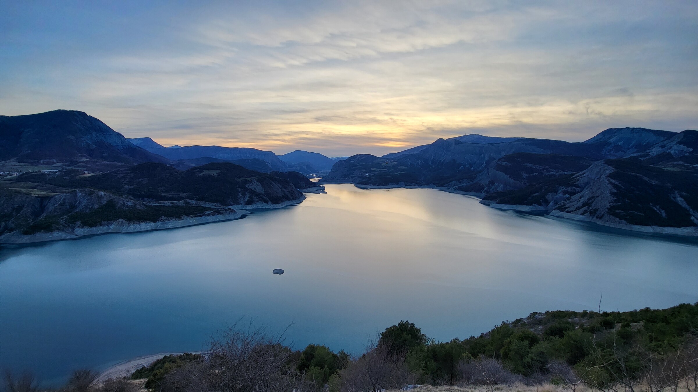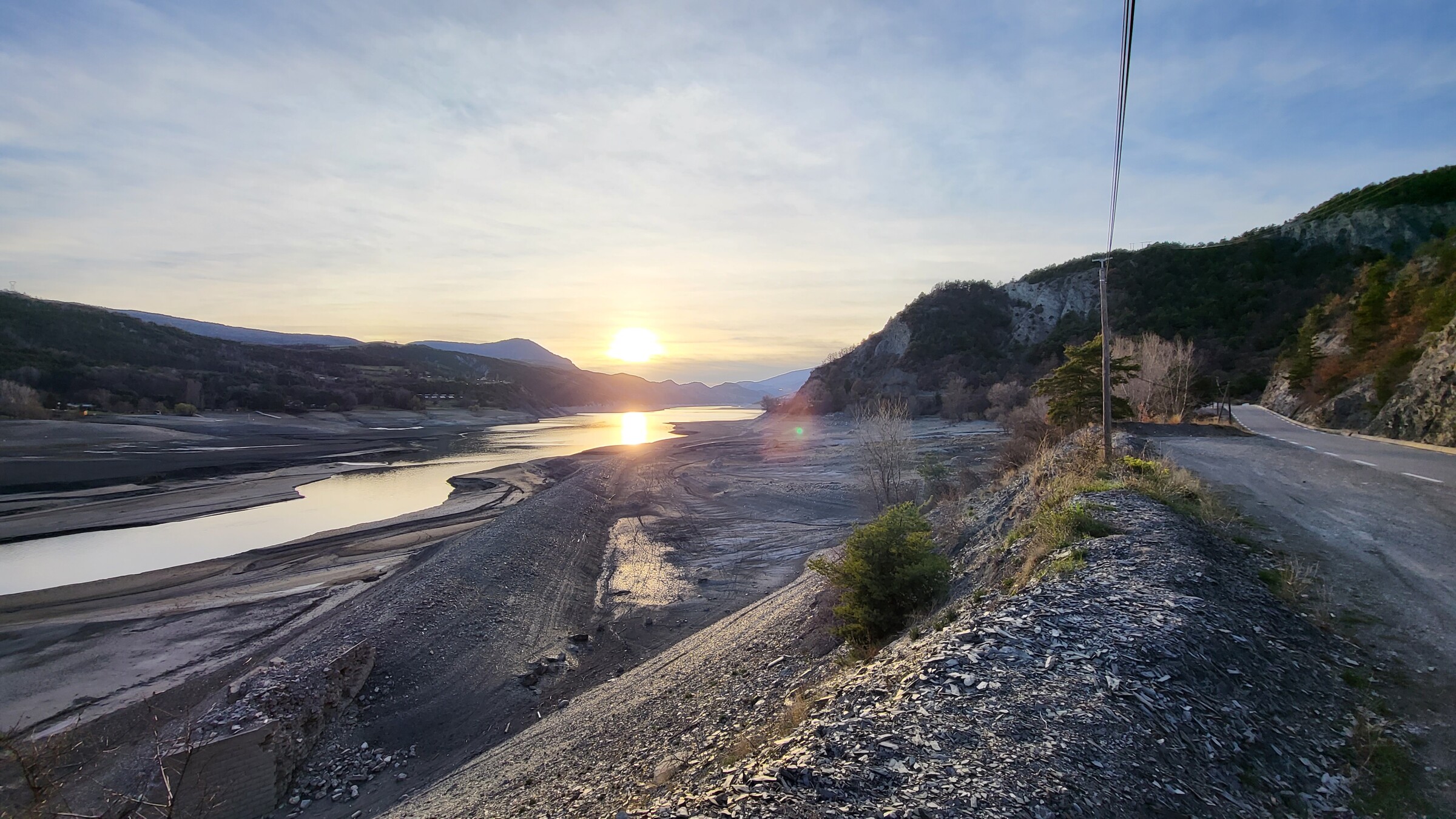 > Dadurch kam ich passend zum Sonnenuntergang am Lac de Serre-Poncon vorbei, über die ruhige und aussichtsreiche Straße auf der Ostseite