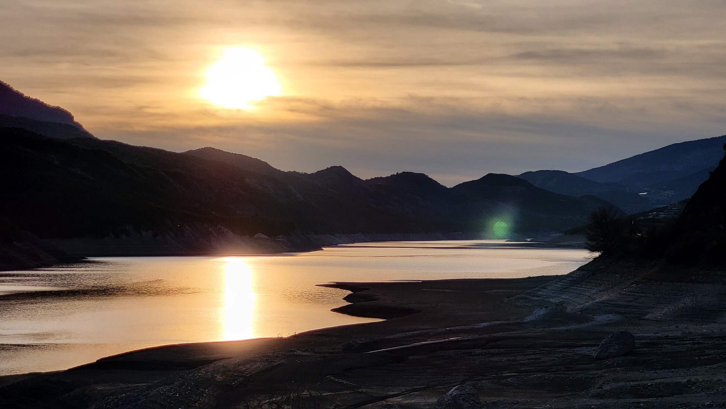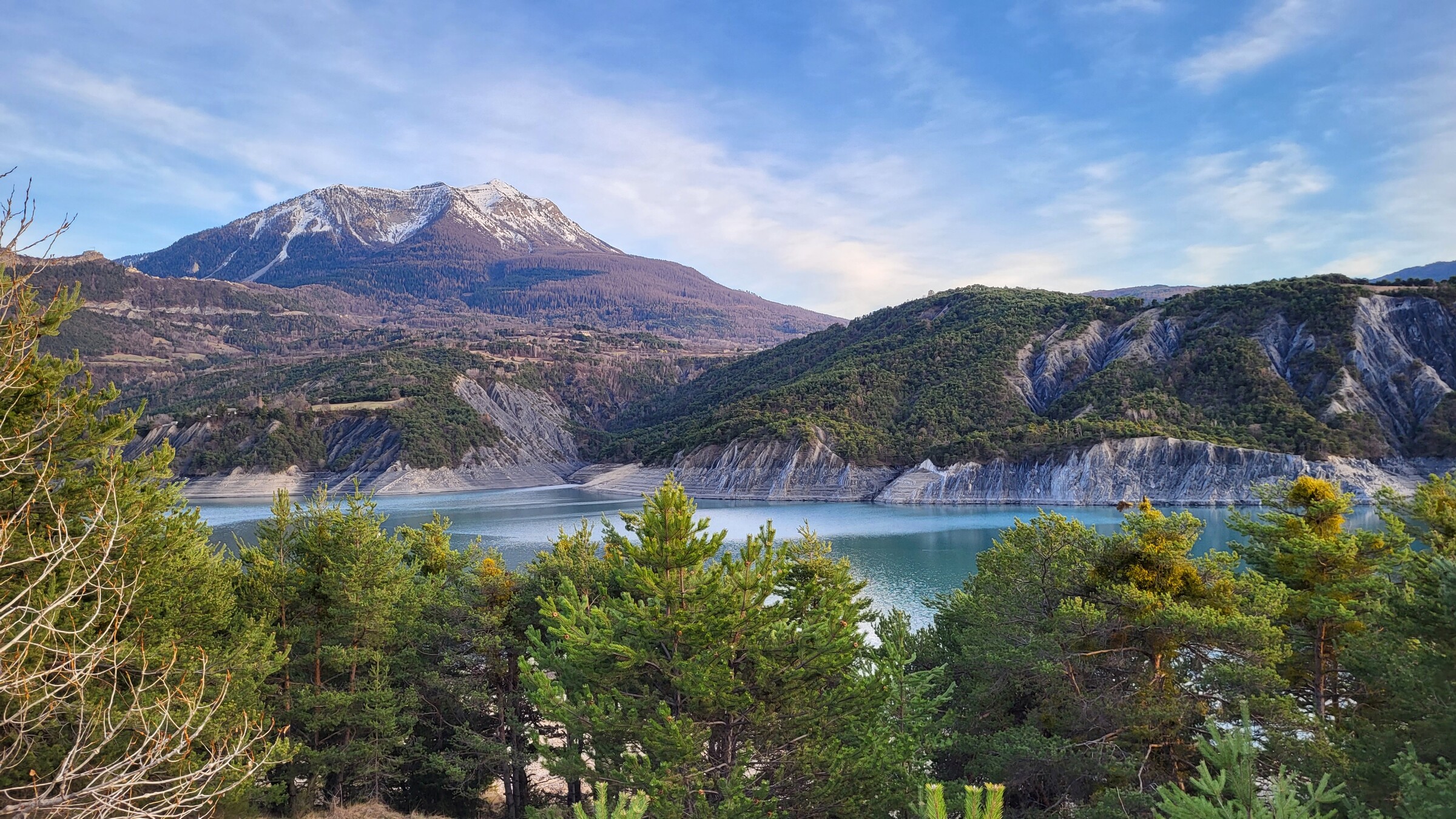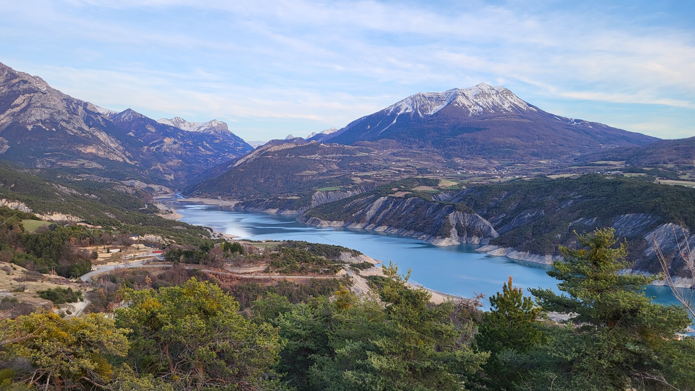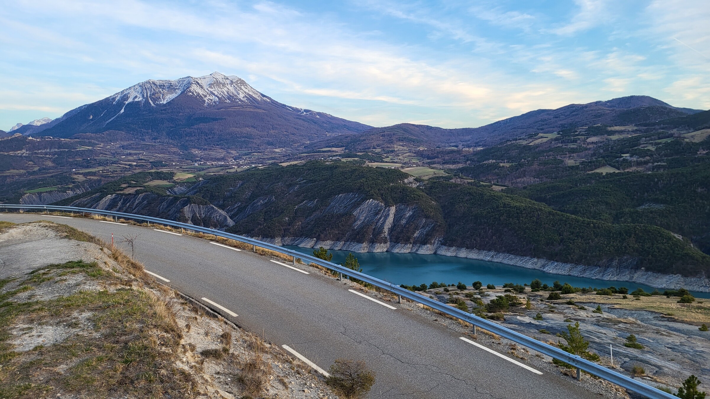 > Dadurch kam ich passend zum Sonnenuntergang am Lac de Serre-Poncon vorbei, über die ruhige und aussichtsreiche Straße auf der Ostseite