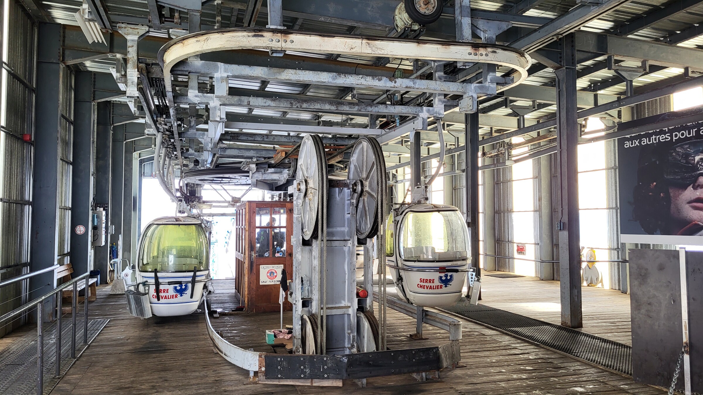 > Und weiter nach Briancon. Die EUB Prorel wurde leider noch nicht ersetzt und nervt auch heute wieder mit Stillständen, vielen fehlenden Kabinen und dem unbequemen Stehkabinendesign