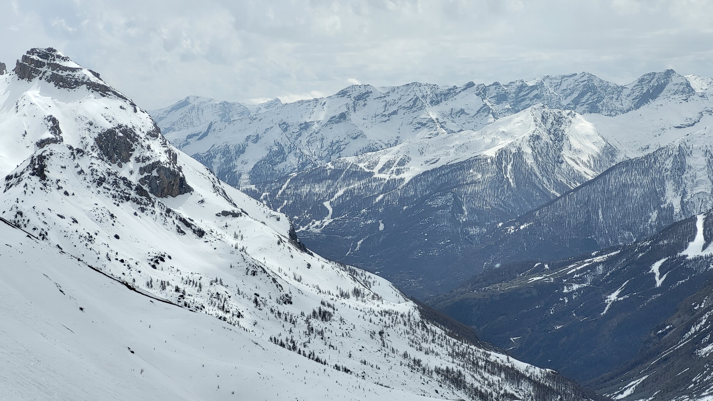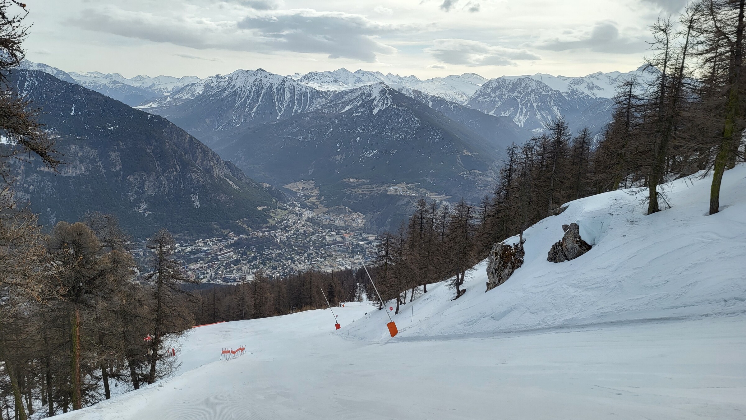 Wettertechnisch wäre es natürlich auch an diesem Tag weiter im Süden besser gewesen. Irgendwie liegt genau immer mein ausgewähltes Gebiet gerade ein paar Kilometer zu weit nördlich. Wobei sich an diesem Tag die Ausdehnung des Gebiets auszahlte: Während in Monêtier und Villeneuve die meiste Zeit des Tages Wolken hingen und es auch Schnee-/Regenschauer gab, schien in Briançon fast durchgängig die Sonne.