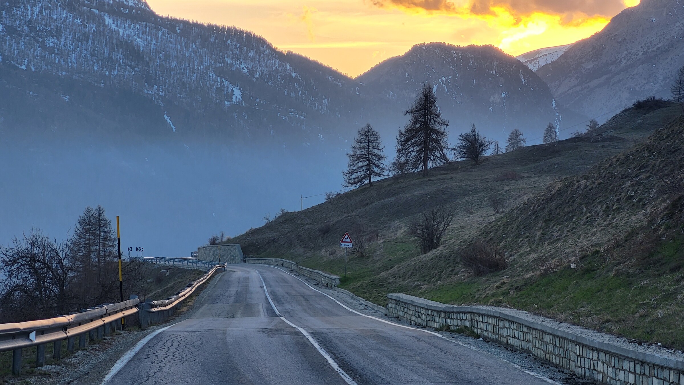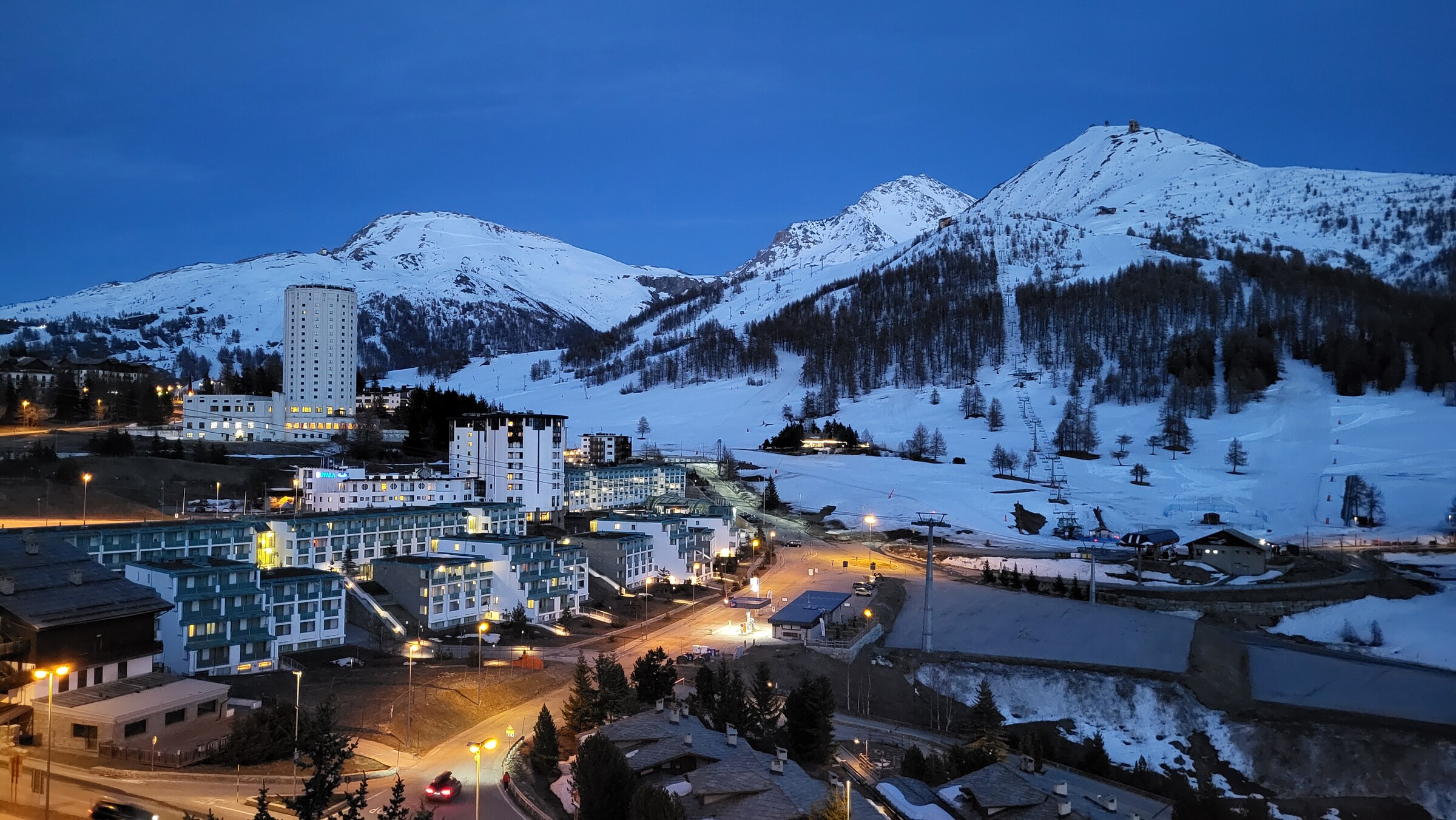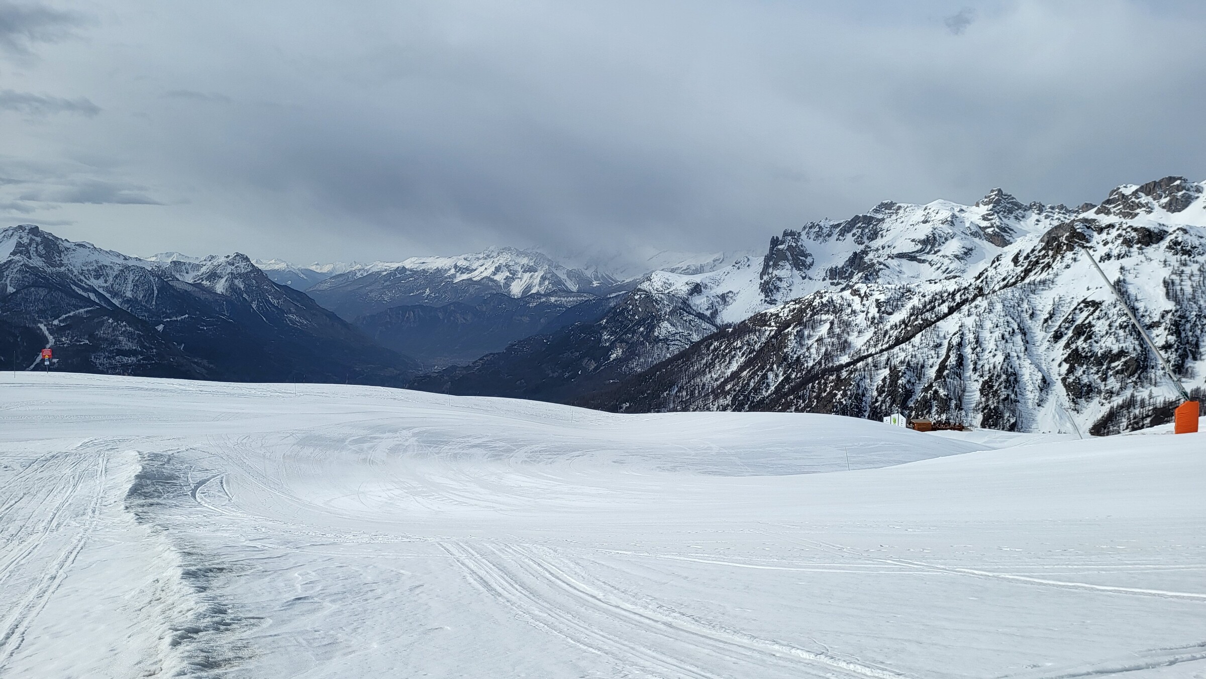 > Und direkt zum nächsten hochgelegenen Pass und heutigen Tagesziel: Sestriere. Ich hatte lange überlegt, ob ich doch noch ein neues Skigebiet in die Tour integrieren könnte, insbesondere Prali schien mir am besten machbar. Generell gibt es im Piemont ja kaum Skigebiete. Und Bardonecchia, ein großes Gebiet was mir noch fehlt, hat ein unglaublich schlechtes Informationsmanagement, dass mal wieder nicht herausfindbar war, ob und welche Pisten noch offen wären (Labellemontagne hat dort wohl auch seine Finger im Spiel…). Es klang aber so, als wären nur noch drei einzelne, nicht verbundene Anlagen in Betrieb. Aufgrund der schlechten Wetterprognose für den Folgetag entschied ich mich schließlich doch für Sestriere, mit Waldabfahrten und wenig Umweg. Nachher würde ich in Prali vor geschlossenen Liften oder im Nebel stehen…