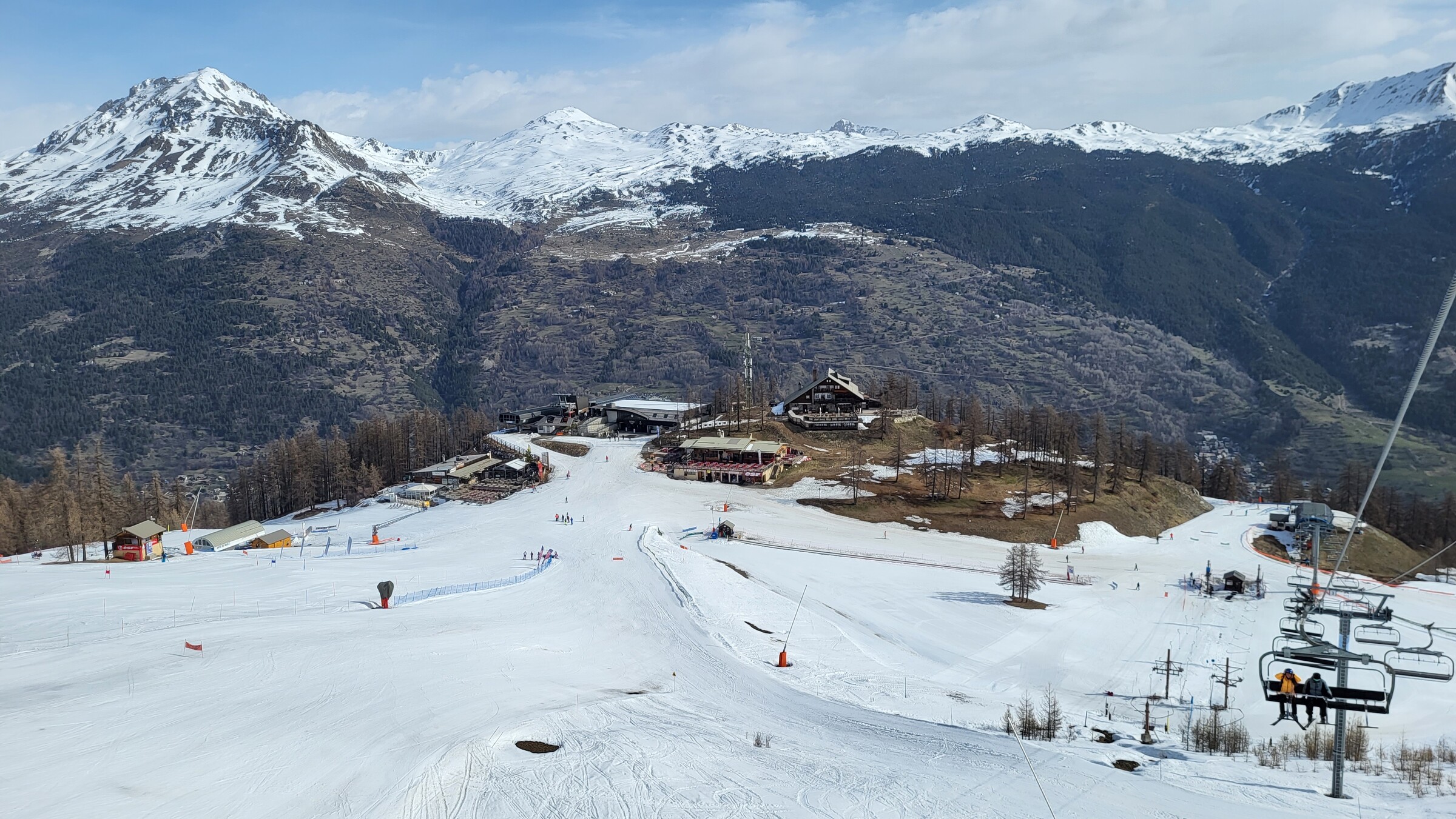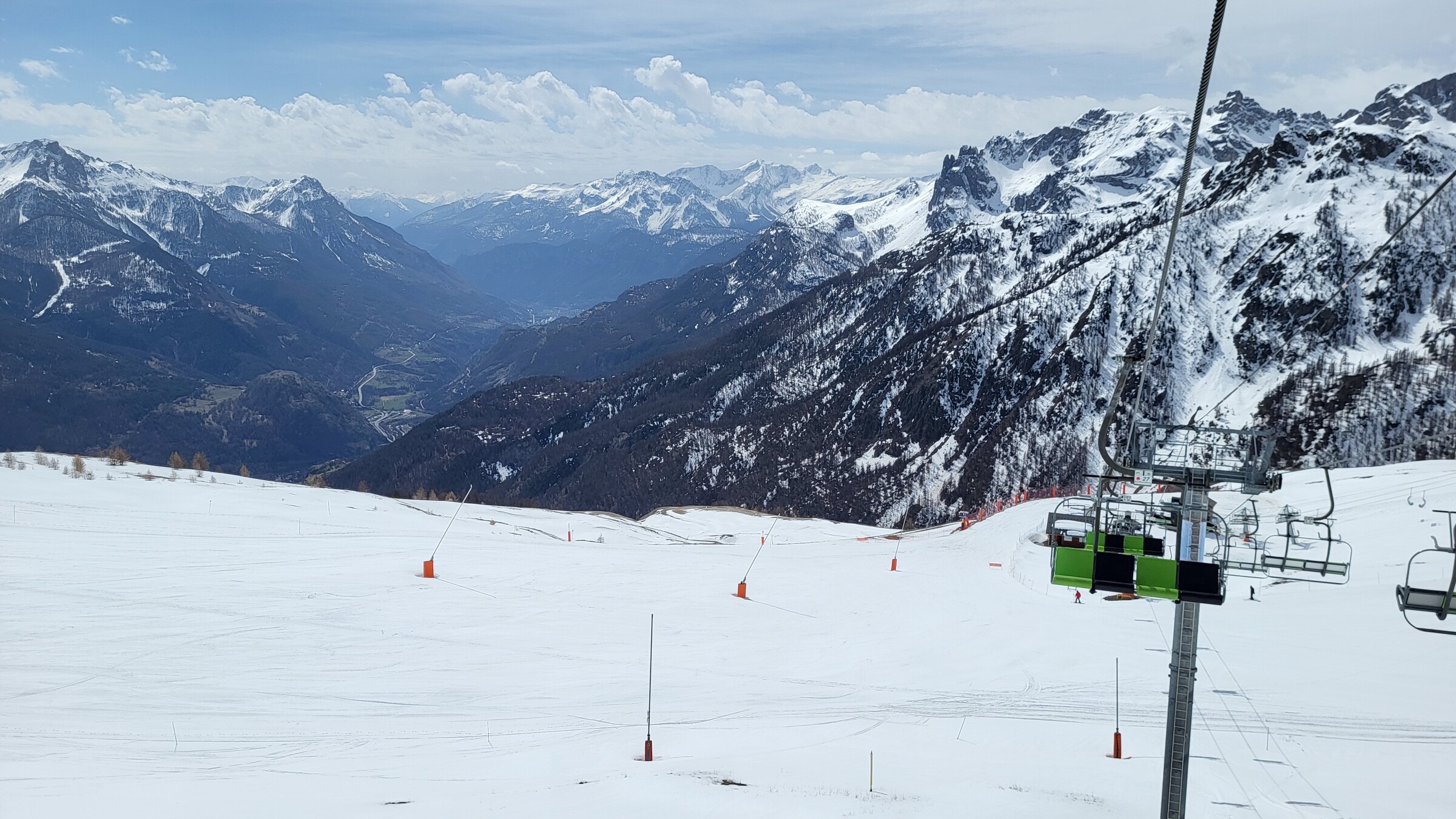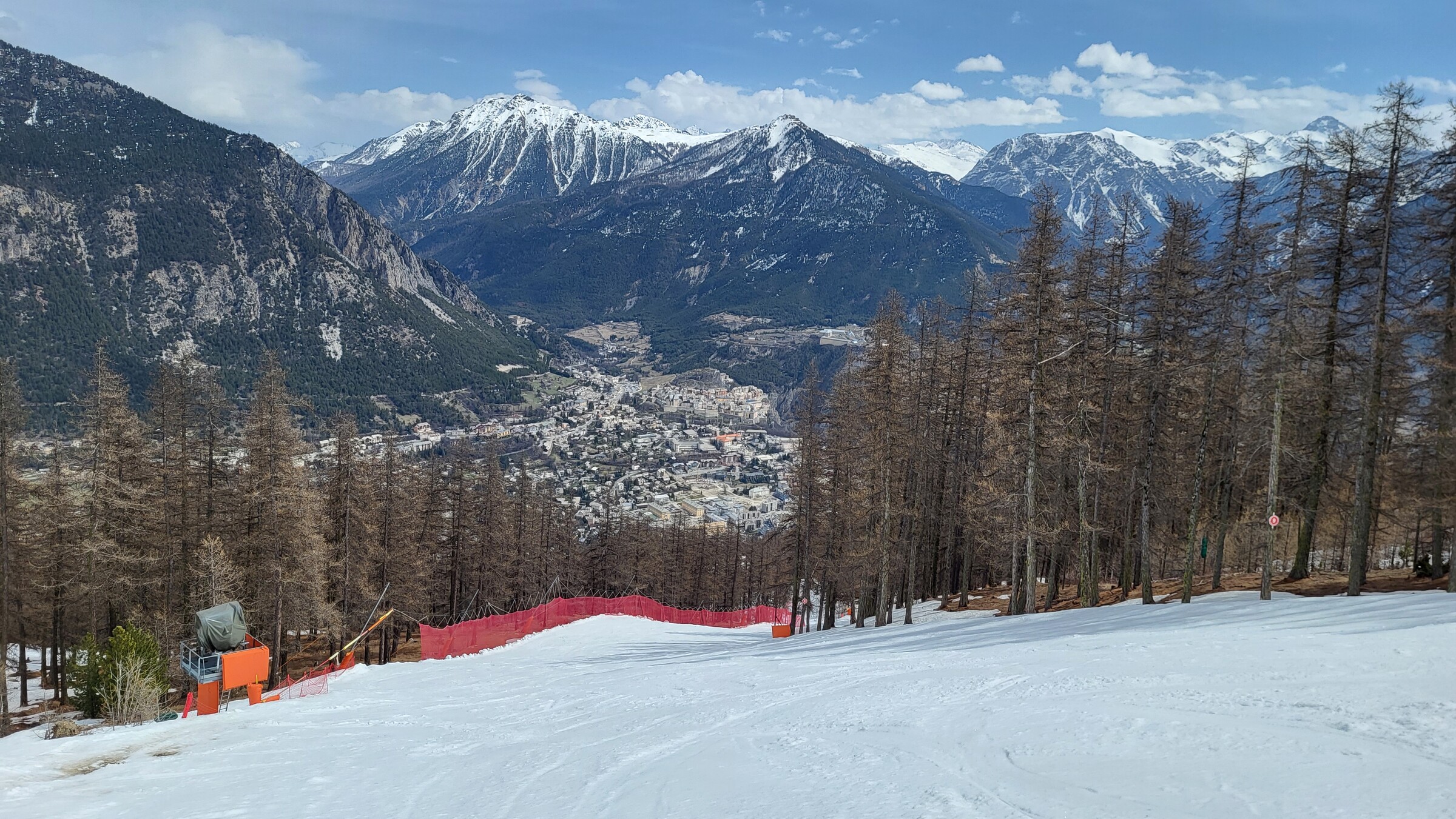 > Leider (mal wieder) kaum noch Pisten hier offen, im Vergleich zum März 2017 und 2019 auch nicht mehr die Talabfahrt bis ganz runter in die Stadt auf 1.200 m. Für diesen Sektor müsste man wahrscheinlich mal im Hochwinter hierhin