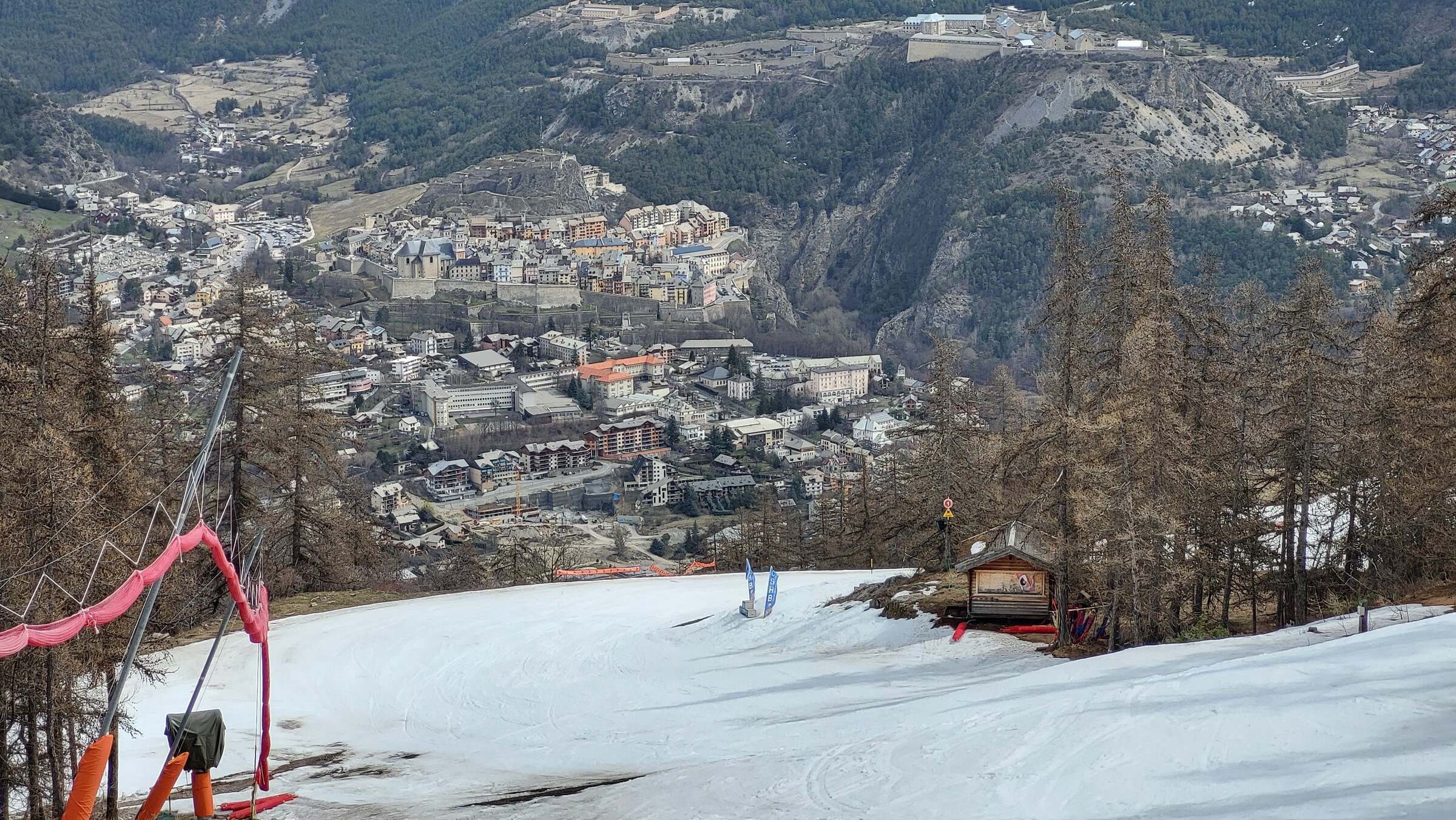 > Blick zur Stadt und der Talabfahrt (untenraus fehlt der Schnee)