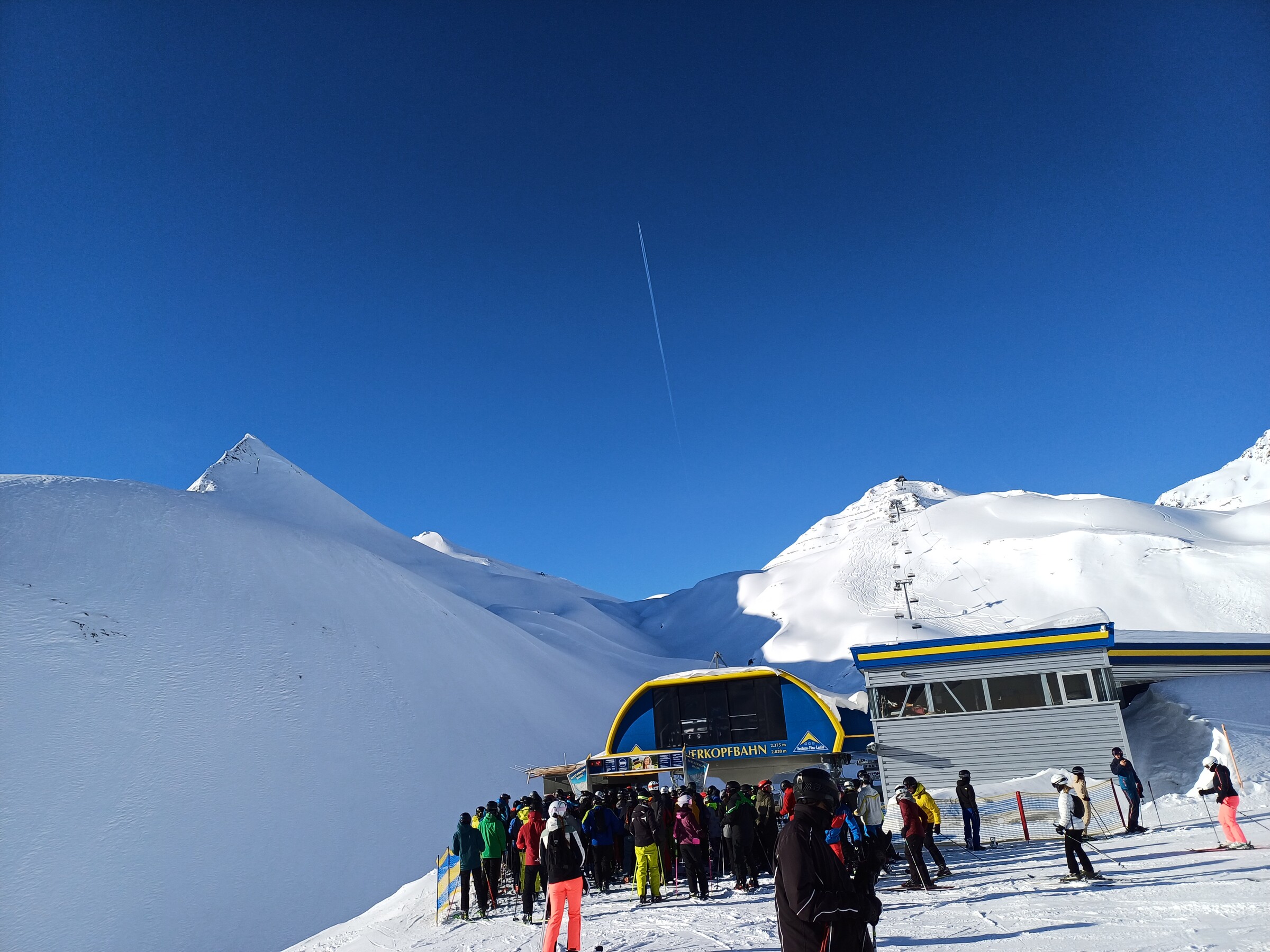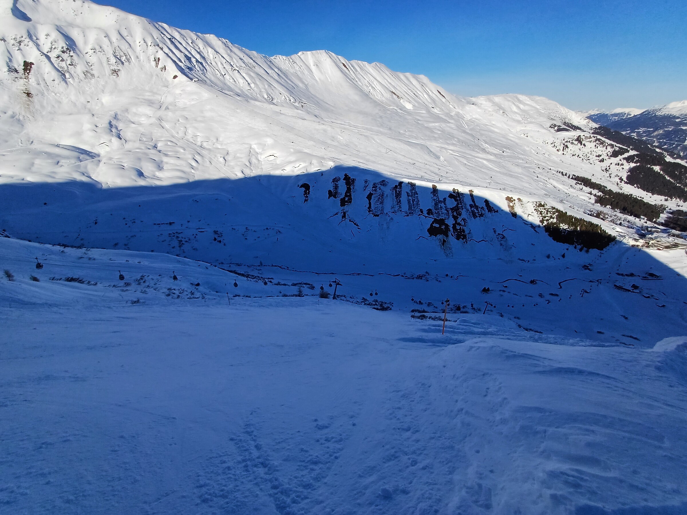 Schnee: Ausreichend vorhanden, ab Mittag in der Sonne teils Pappschnee auf harter unruhiger Unterlage, fährt sich nicht gut. Im Schatten Pulverschnee. Teils gut aber in vielen Bereichen auch miserabel präpariert. Teils unruhig und knollig, vor allem im Bereich von Lanzen gerne auch Eis. Hat mich etwas an Ischgl vor vielen Jahren bzgl. Eis und Knollen erinnert.