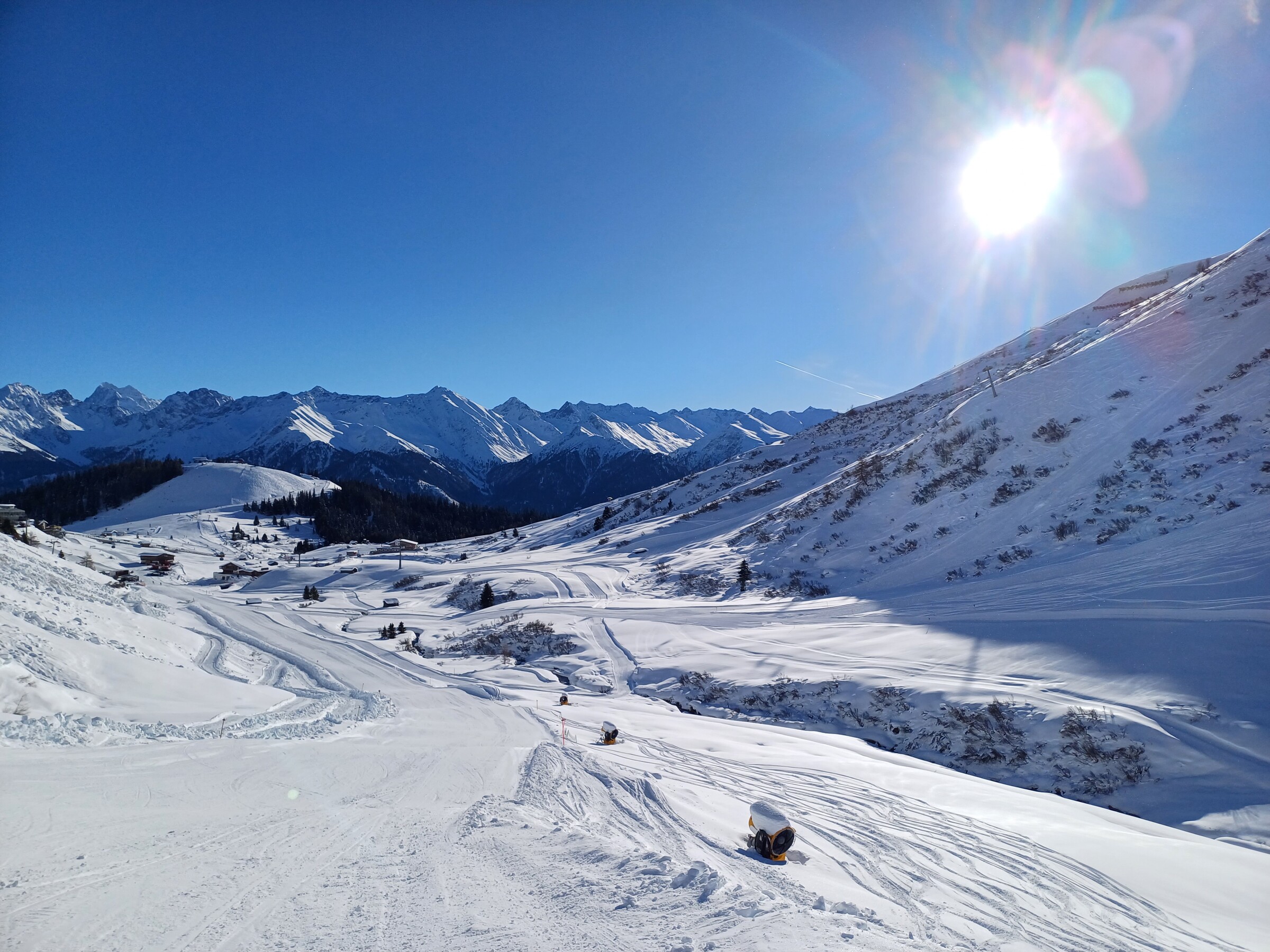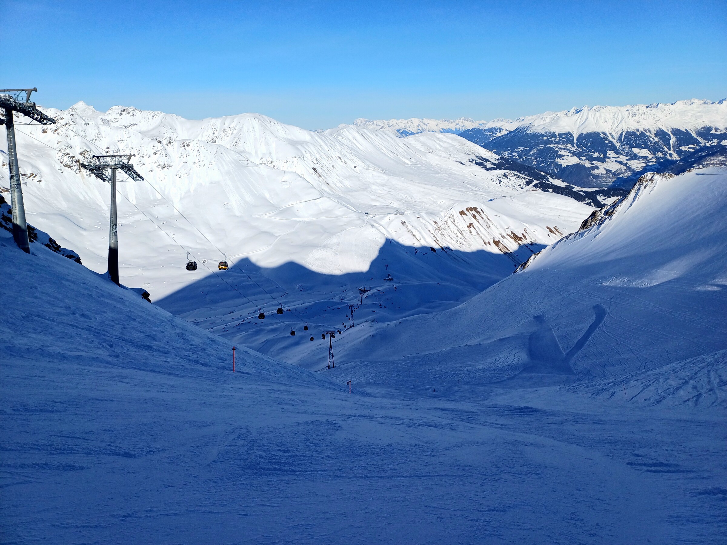 Hier wurde mit dem Pistenbully die Lawinensituation an dem Hang entschärft, die Piste unterhalb war zunächst zu, ein Mitarbeiter überwachte die Sperrung. Wechsel rüber Richtung Nordseite, über Sunliner und Waldbahn: Was für eine geniale Abfahrt, die Frommesabfahrt gehört zweifelsohne zu den besten Abfahrten die ich bisher fahren durfte, einmal hab ich sie nach Ladis verlängert. Gegen Ende noch mal rüber zum Lazid und hier bis zum Schluss geblieben. Meinen ursprünglichen Plan das Gebiet heute zu wechseln und morgen woanders zu fahren, habe ich heute Morgen verworfen, war mir zu stressig und kein überzeugendes Hotelangebot im Paznauntal gefunden.