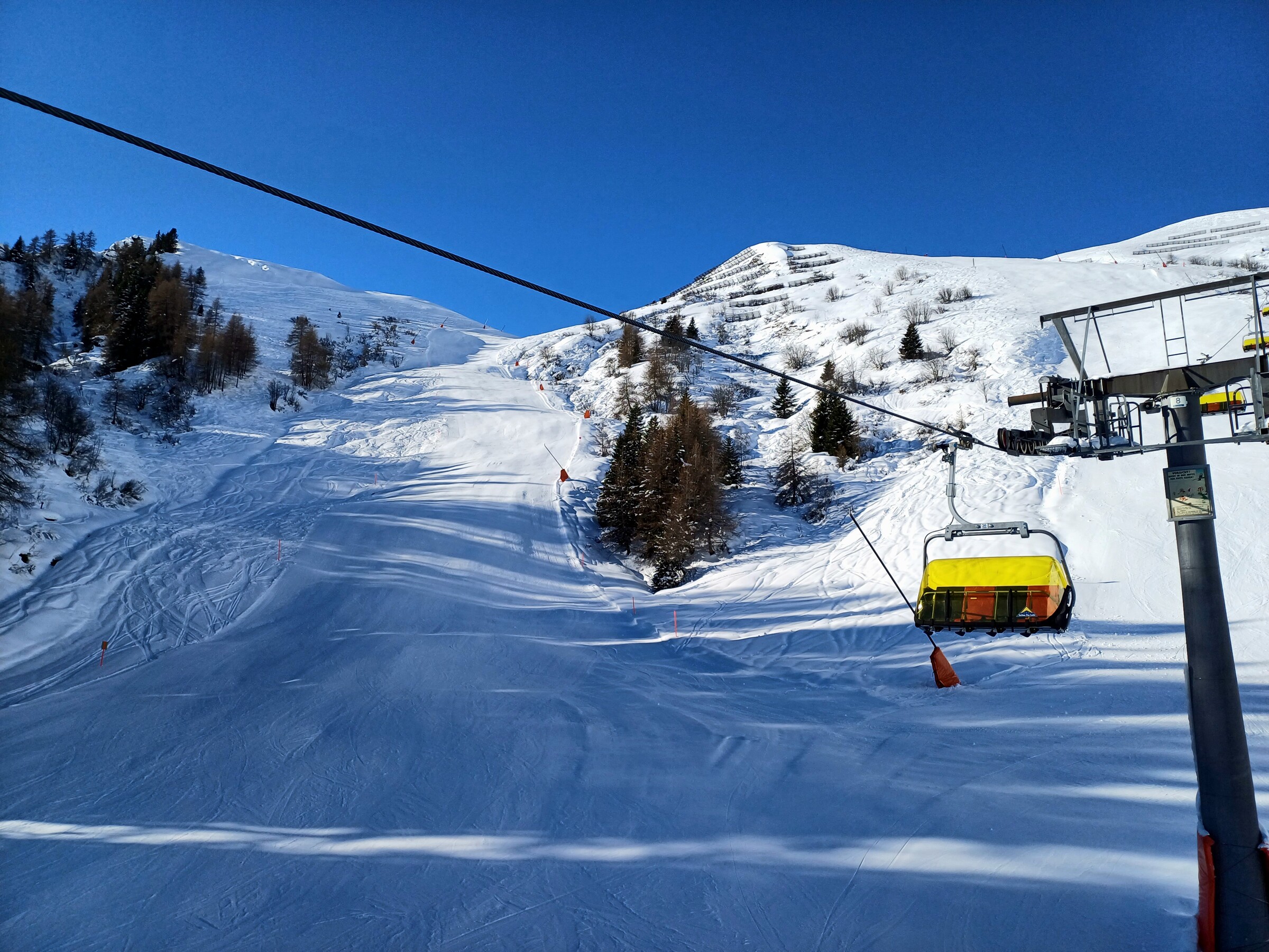 Nachdem ich gestern möglichst viel abfahren bzw. sehen wollte und ein Gefühl für das Gebiet bekommen habe, habe ich heute die Strategie gewechselt und mich hauptsächlich auf die Pisten bzw. Bereiche fokussiert, die mir wirklich taugen. Ich war trotzdem überall außer am Massnerkopf, ich habe etliche Wiederholungen an der Pezidbahn vorgezogen.