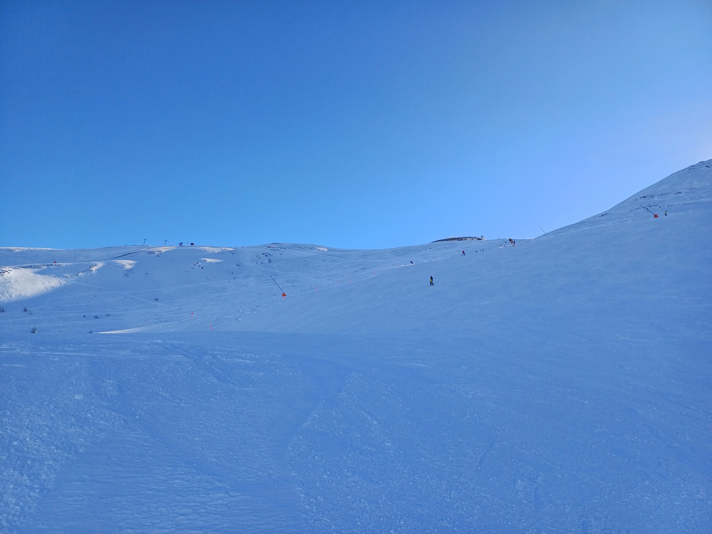 Heute nochmal einen noch deutlich besseren Tag als gestern erwischt. Es war deutlich weniger los als gestern und die Pisten waren in einem viel besseren Zustand als gestern. Auch die Bereiche weiter unten, die ich gestern bemängelt hatte, waren wirklich in einem super Zustand.