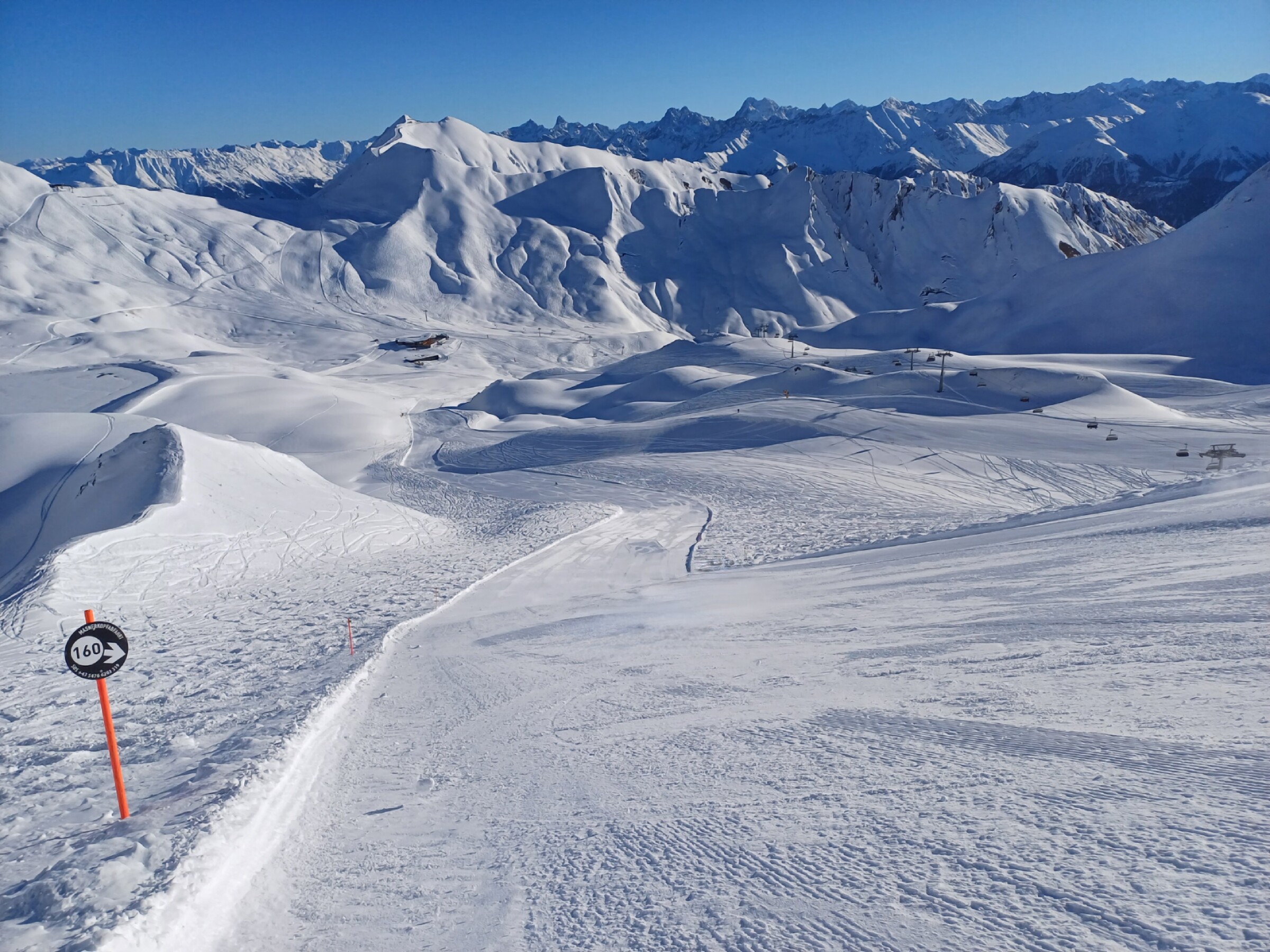Start an der neuen Bahn, eine echt super Anlage und super flott. Direkt weiter zum Lazid und dann versehentlich Lawensbahn eingebaut, wusste nicht dass die Scheidbahn nötig ist um Richtung Pezid zu kommen. Danach alles am Massnerkopf abgefahren: Der Massnerkopf ähnelt seinem Kollegen Palinkopf ein paar Kilometer weiter schon sehr. Mir fehlt hier eine zweite KSB rechts. Tolles Gelände aber teils doch sehr hängend und Pistenpflege so naja. Zurück leider keine Pezidbahn für die Schwarzen mehr nehmen können wegen zu viel Wartezeit. Hab mich auf den Weg Richtung Fisser Nordseite gemacht. Der "mittlere Bereich" zwischen Komperdell und Nordseite hat mich nicht so angesprochen und Pisten waren richtige Rüttelwege. Vor allem hier war es echt nervig: Fisser Nordseite war echt gut und sehr leer, die Leute wollen einfach Sonne. Unten sehr knollig. Hat mir gut gefallen, schade dass die Schwarze an der Almbahn noch zu war, die wäre genau nach meinem Geschmack. Ich bin hier das Meiste abgefahren und dann von der Almbahn die Schwarze Richtung Möseralm. Bin dann noch am Pezid und Lazid die tollen Schwarzen runter: Ab 15 Uhr bin ich dann noch relativ sinnlos die Planseggbahn und nochmal Königsleithebahn und Komperdellbahn gefahren. Fazit: