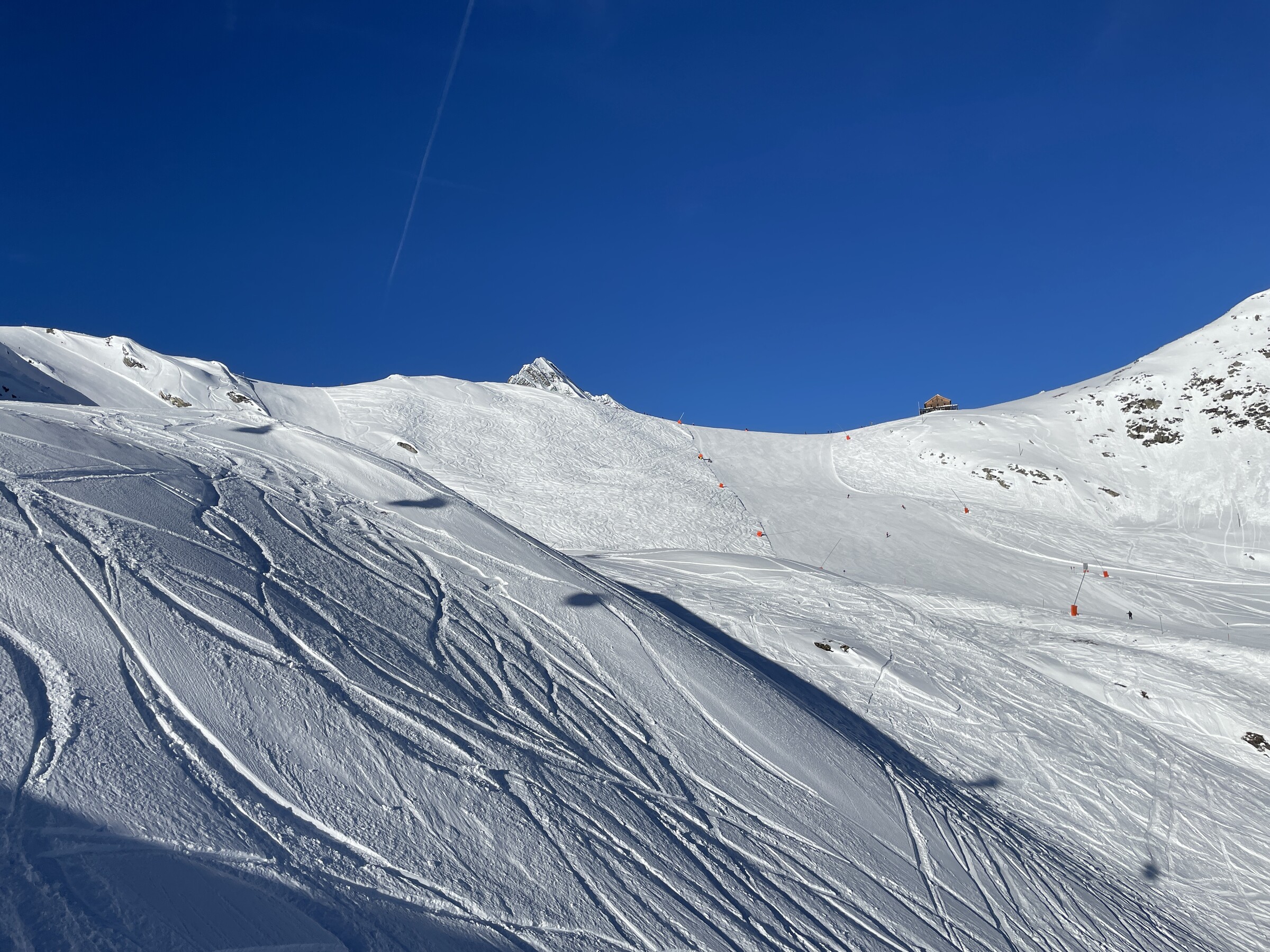 Leider bewahrheitete sich dann mal wieder die Weisheit, dass man mit Kindern nicht planen kann. Unser 5-Jähriger plagte sich ab abends mit Schüttelfrost herum und die Nacht bei fast 40 Grad Fieber brachte uns um den Schlaf und ihn um den für heute geplanten Skikurs. Um den Tag nicht komplett ungenutzt zu lassen, erklärte sich meine Frau bereit, die Patientenbetreuung zu übernehmen. Ich startete also mit etwas Verspätung zunächst Richtung Gletscher.