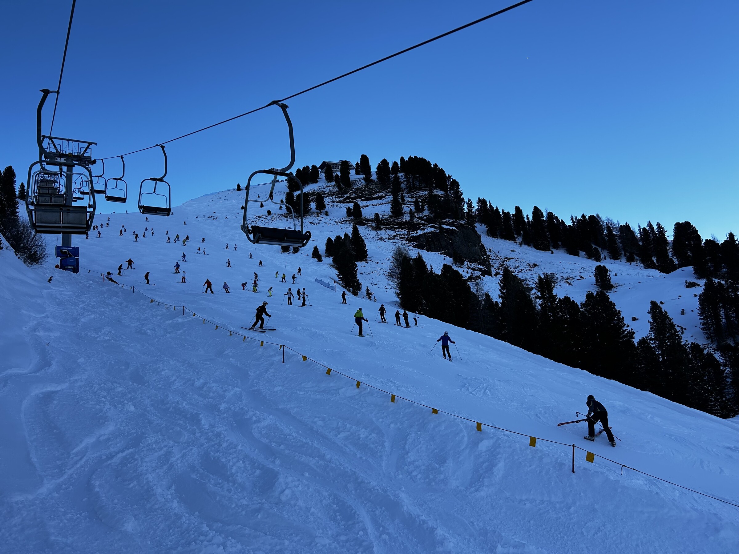 Am Morgen waren die Pisten herrlich durch den Neuschnee von der Silvesternacht, der schön kompakt geworden war. Gestartet sind wir an der Saslong und siehe da, der Zaun an der EUB Bergstation ist noch offen. Die Ciampinoi 3 nach Wolkenstein war dann richtig geil.