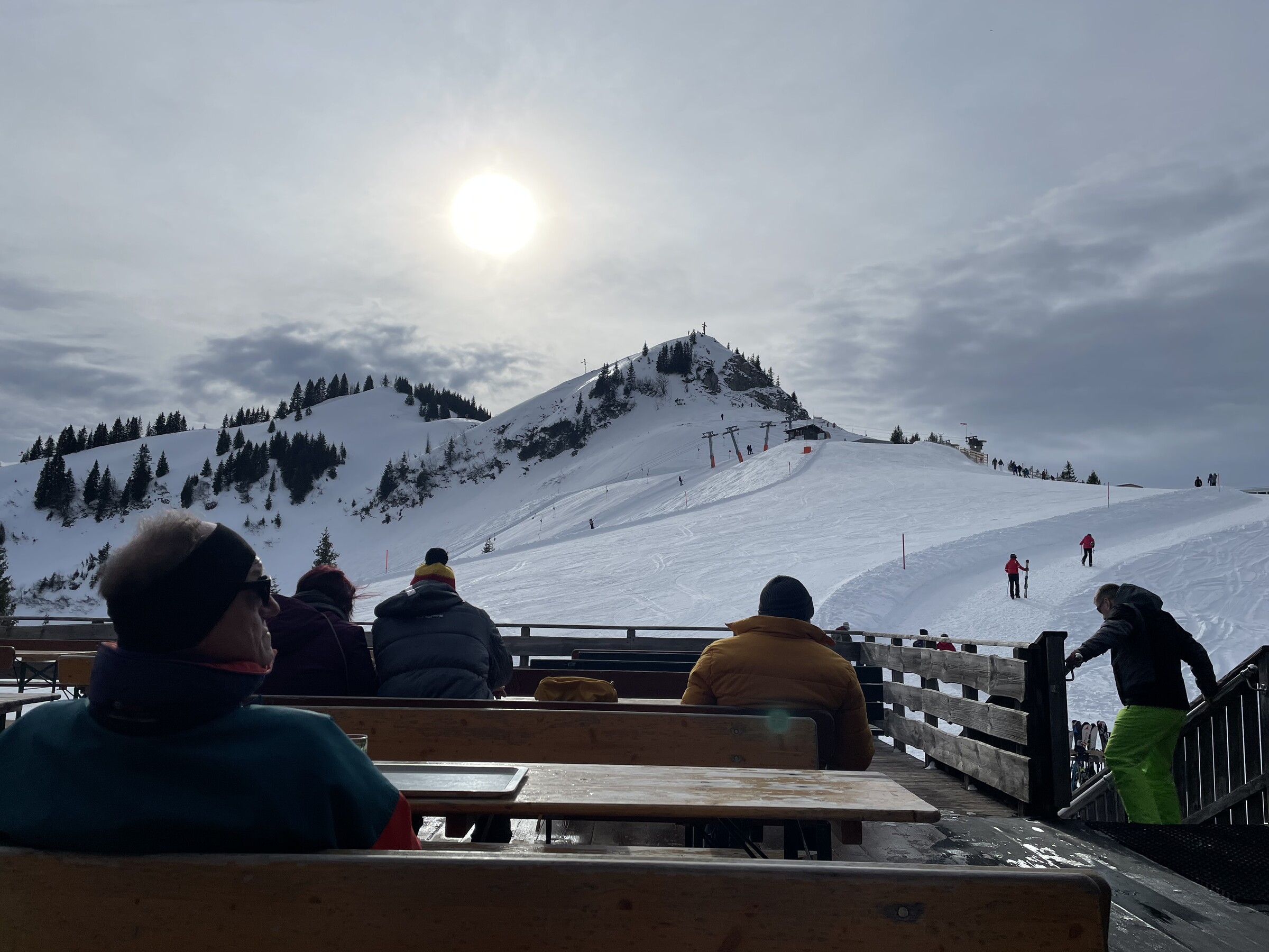 Zu Mittag waren wir in der „Sonnenalma. Die Preise dort waren für mich wieder „typischer“ für einen Skiurlaub als gestern in der „Gundhütte“. Zum apres Ski waren wir dann im „s‘Um und Auf“. Schöne, urige Hütte.