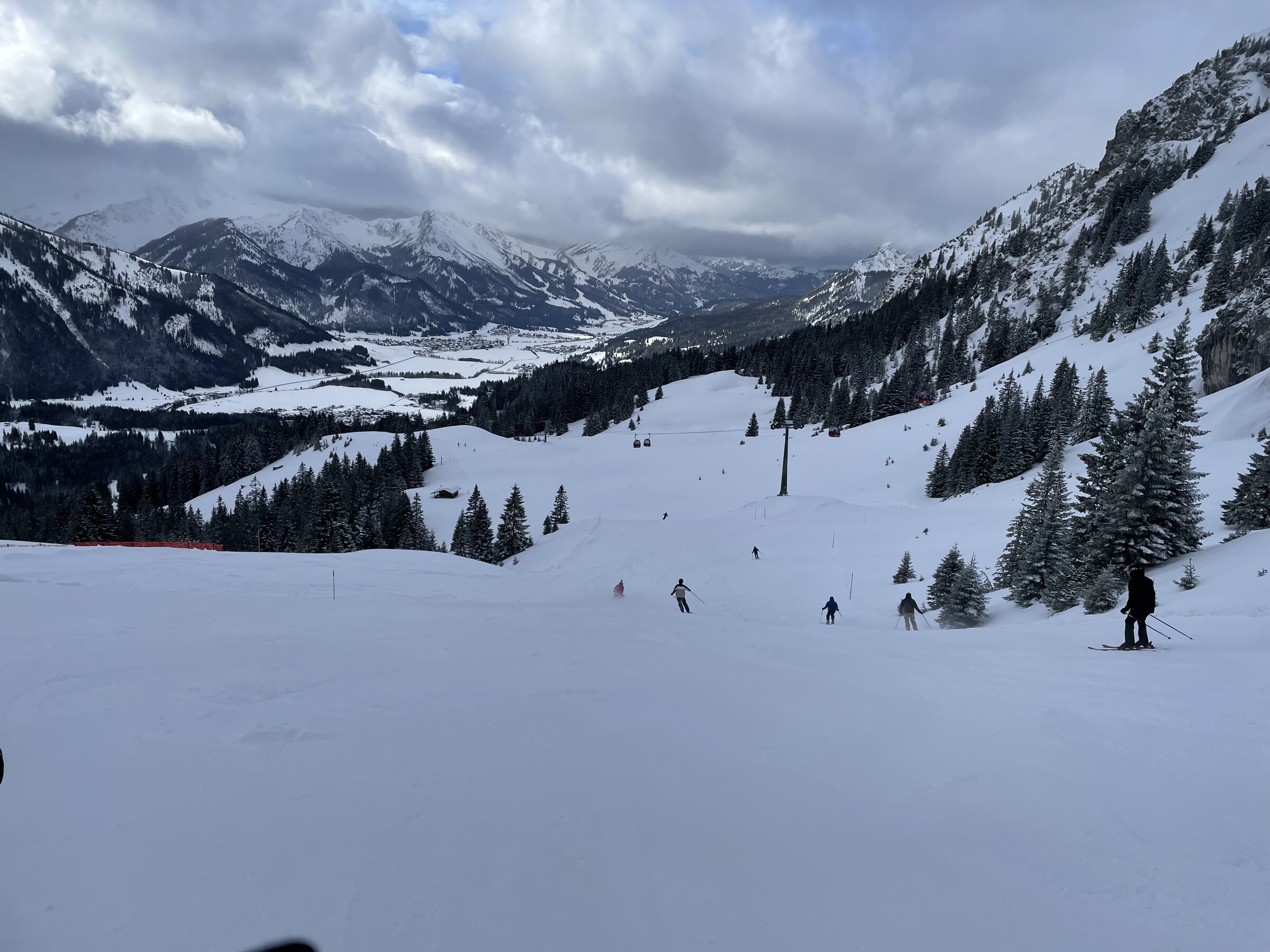 Auf der Piste und an den Liften verteilte sich die Menge gut und man musste meistens nur ein paar Bügel warten. Am Nachmittag wurde es zudem leerer, weshalb es keine Wartezeiten mehr gab. Wir waren überrascht, wie viel Variation es gab und hatten eine Menge Spaß. Schon als kleines Kind war ich bei der Anfahrt ins „Tannheimer Tal“ beeindruckt vom Anblick des „Spieserlifts“ und wollte damals immer schon eines Tages dort Ski fahren. Die Trasse durch den Wald empfinde ich als sehr idyllisch.