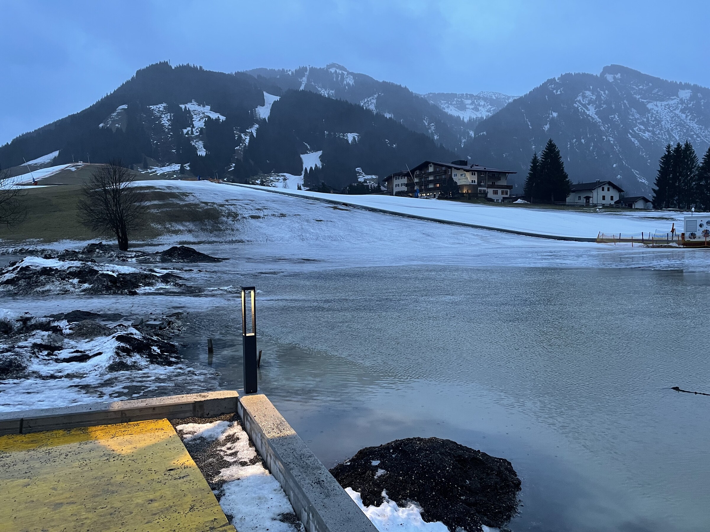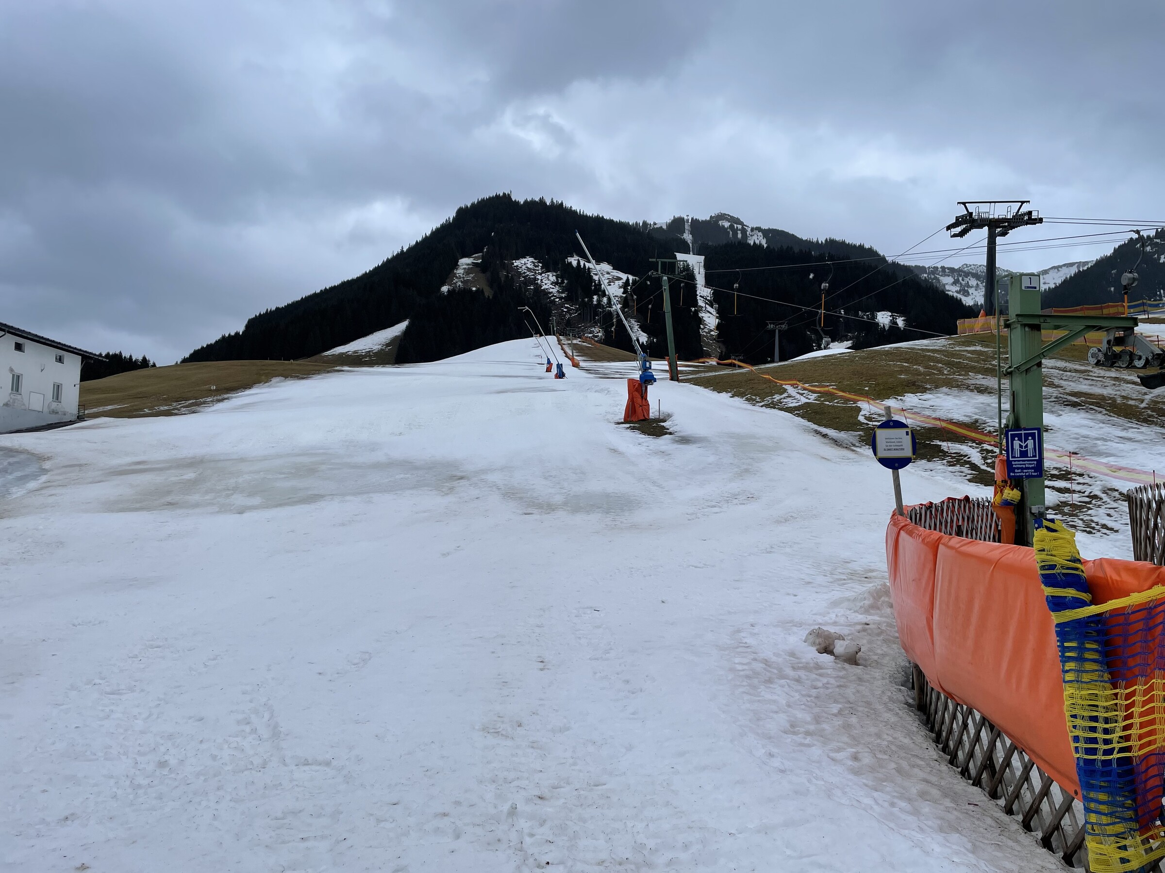 In der Nacht von Dienstag auf Mittwoch taute bei Sturm, Dauerregen und milden Temperaturen sämtlicher Naturschnee in den Tallagen weg. Der Sturm hatte leider morgens zugenommen und sollte über den Tag nicht weniger werden. Daher ging es für uns am 24.01., mangels Alternativen, zu den „Spieserliften“ nach Unterjoch. In Grän, Tannheim, Zöblen, Schattwald sowie Oberjoch war kein Skibetrieb.