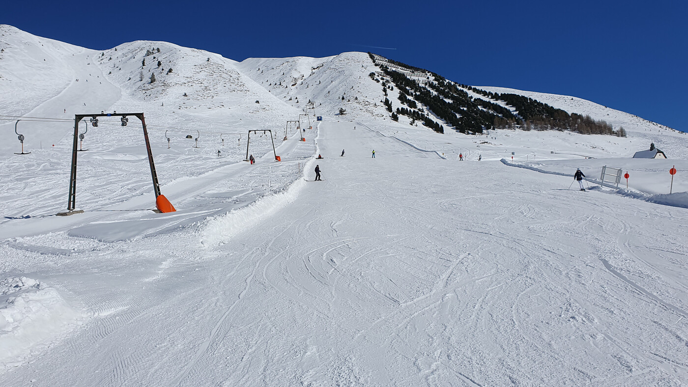 Richtig positiv eingebrannt hat sich dabei nichts, aber auch nicht wirklich Negatives mit Ausnahme der Hütten. Im Kühtai wurde es mir landschaftlich doch etwas langweilig, weil sich das meiste halt auf zwei nahezu gespiegelten Seiten abspielt. Die fast-außenrum Piste am Hochalter und die schwarzen Rinnen am Gaiskogel waren da noch das Interessanteste. Katastrohal kam mir die Hüttensituation vor. Da es Januar-mäßig zünftig frisch war und man höchstens im prallen Sonnenschein draußen sitzen konnte, waren alle Hütten im Skigebiet total überfüllt. Wir sind dann ins "Dorf" ausgewichen, was auch okay war. Aber halt kein Vergleich zu einer Einkehr oben am Berg.