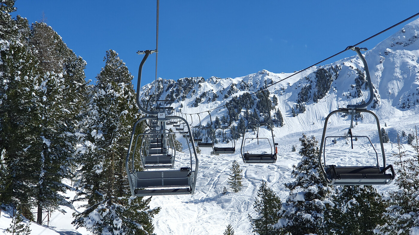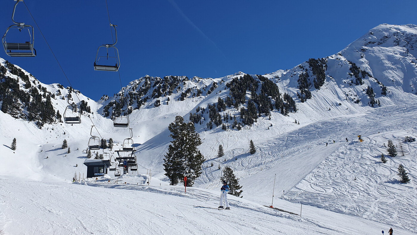 Wir befinden uns jetzt jedenfalls schon oberhalb der aktuell modernsten Bahn des Gebiets, einer 6-er-KSB mit automatischer Bügelschließung und -öffnung.