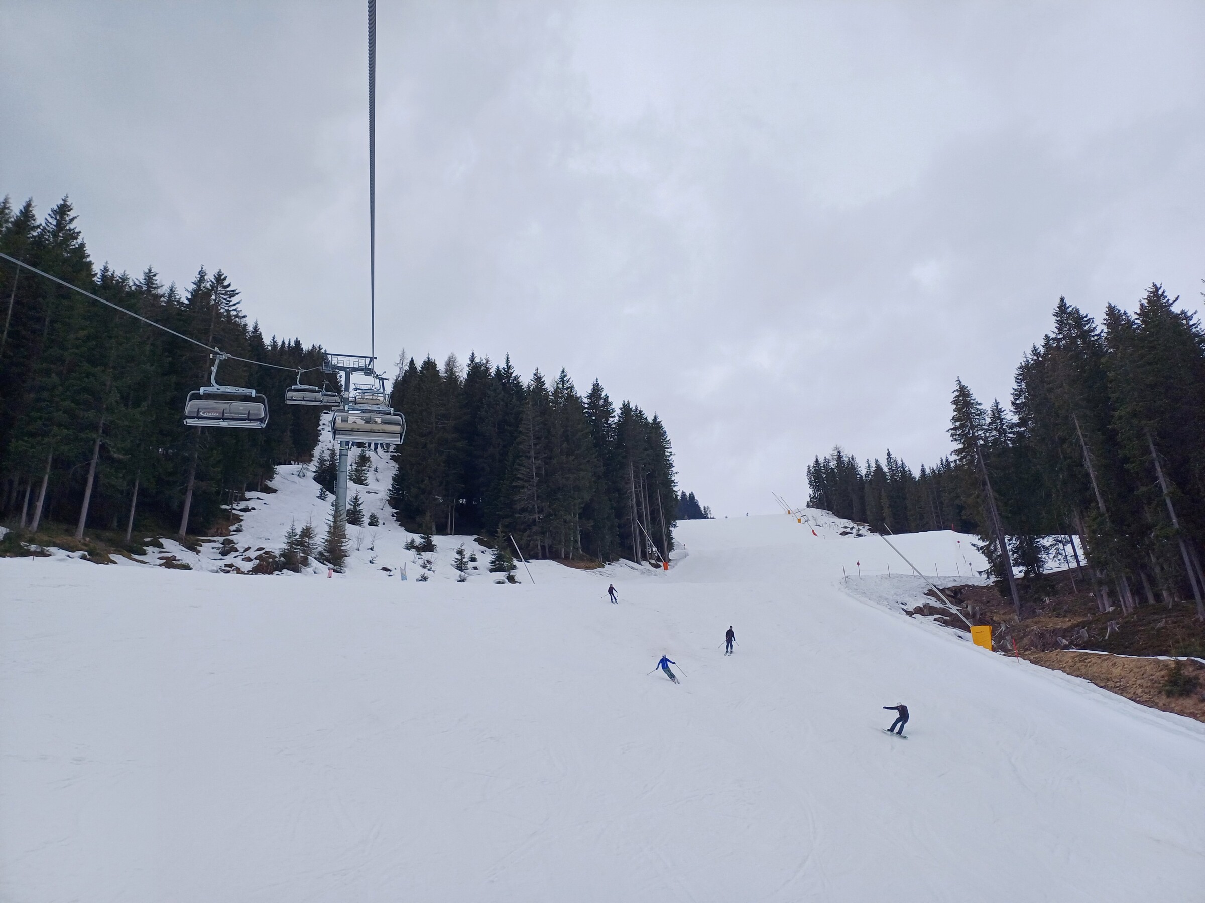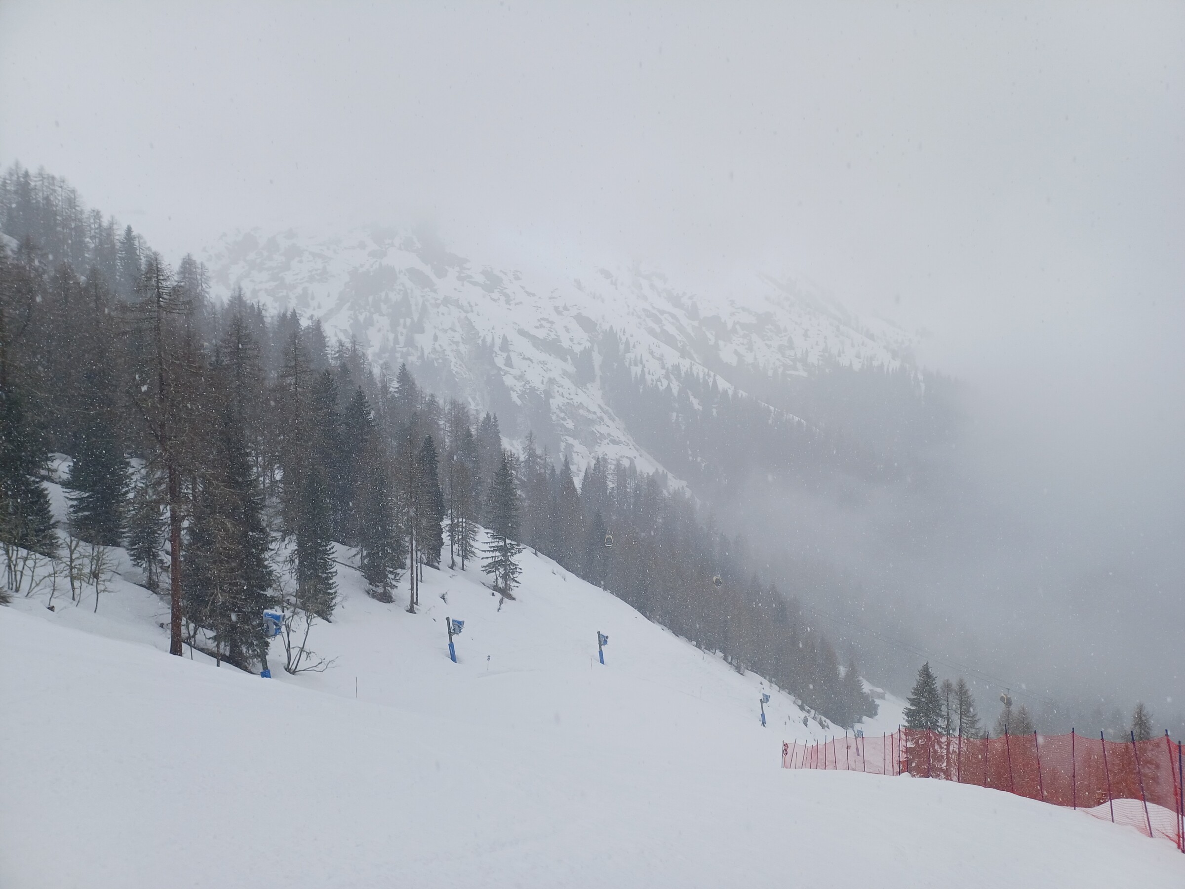 Die Bedingungen waren optimal, leicht sulzig und nicht sonderlich aufgefahren, da absolut nichts los war. Ab Mittag wurde das Wetter jede Minute schlechter, ab 13 Uhr Schneesturm.