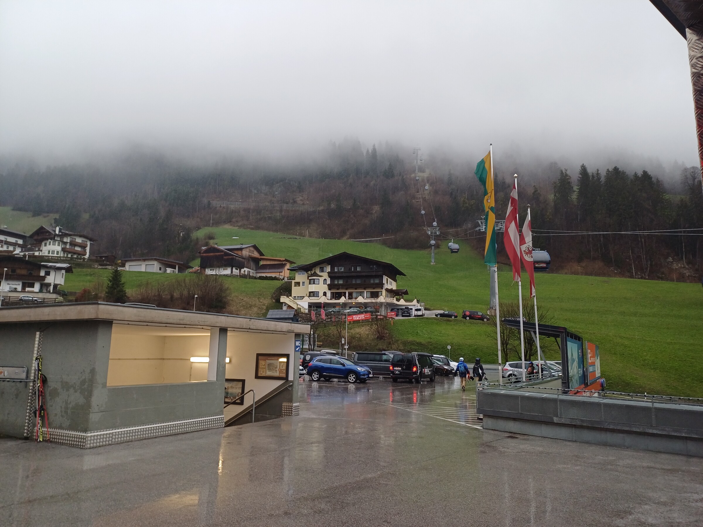 In Finkenberg um 15.12 Uhr noch starker Regen.