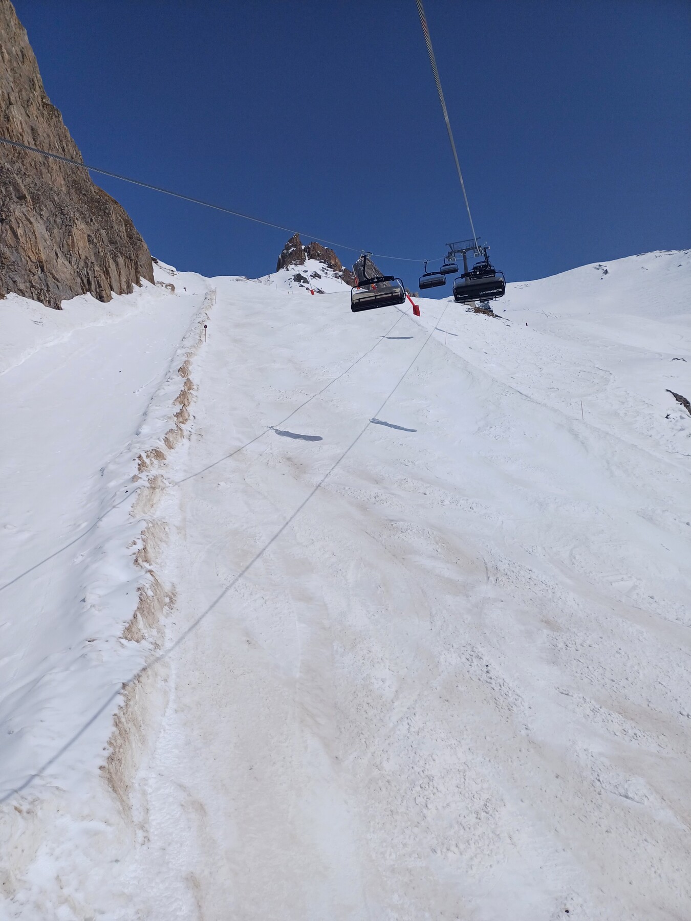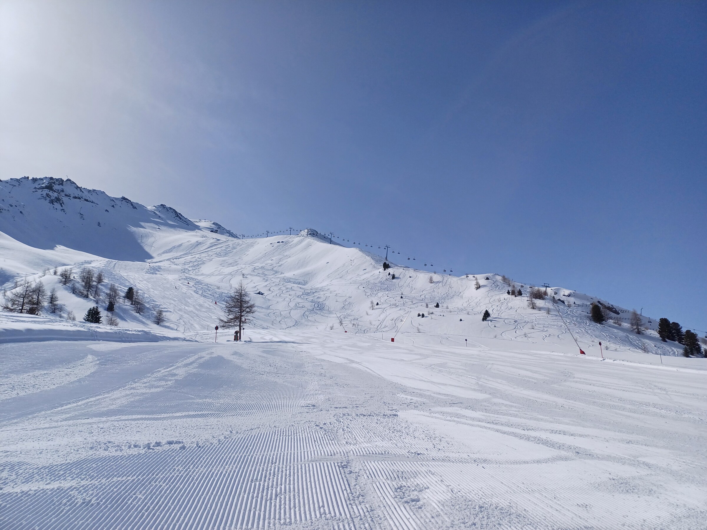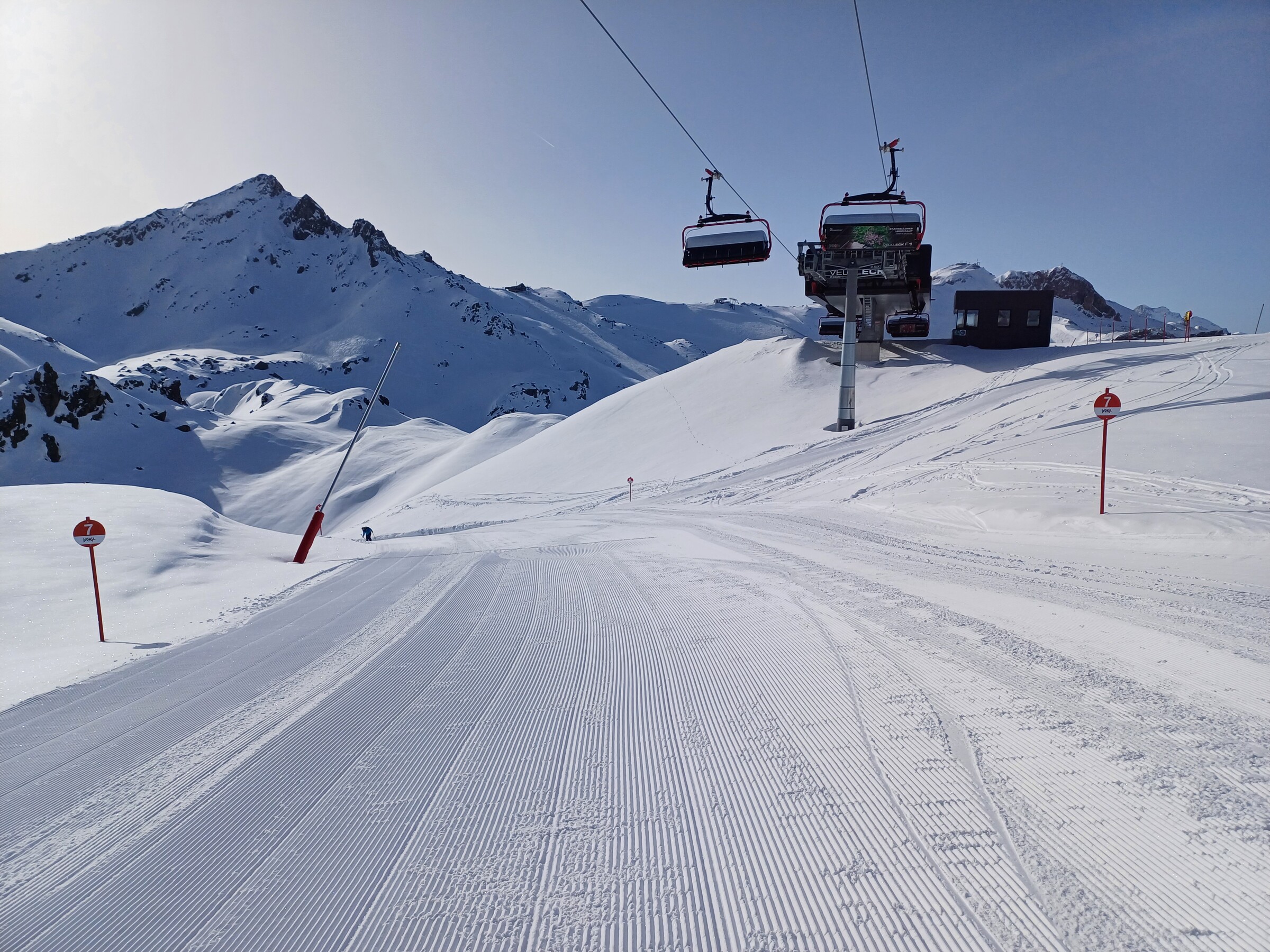 Einige Pisten waren wirklich nicht gut präpariert, naja hat mich nicht gestört, die Fahrer des Pistenteams sind wahrscheinlich auch relativ durch nach der langen Saison. Bis Mittag waren die Pisten top, ab Mittag teilweise sehr bremsig, an manchen Stellen hat es einem richtig die Schuhe ausgezogen. Komischerweise eher auf der Alptrida Seite. Hier ist mir auch der Saharastaub aufgefallen, auf Ischgler Seite kaum. Die einzige Piste die bald schlapp machen dürfte ist die 14a im unteren Bereich.