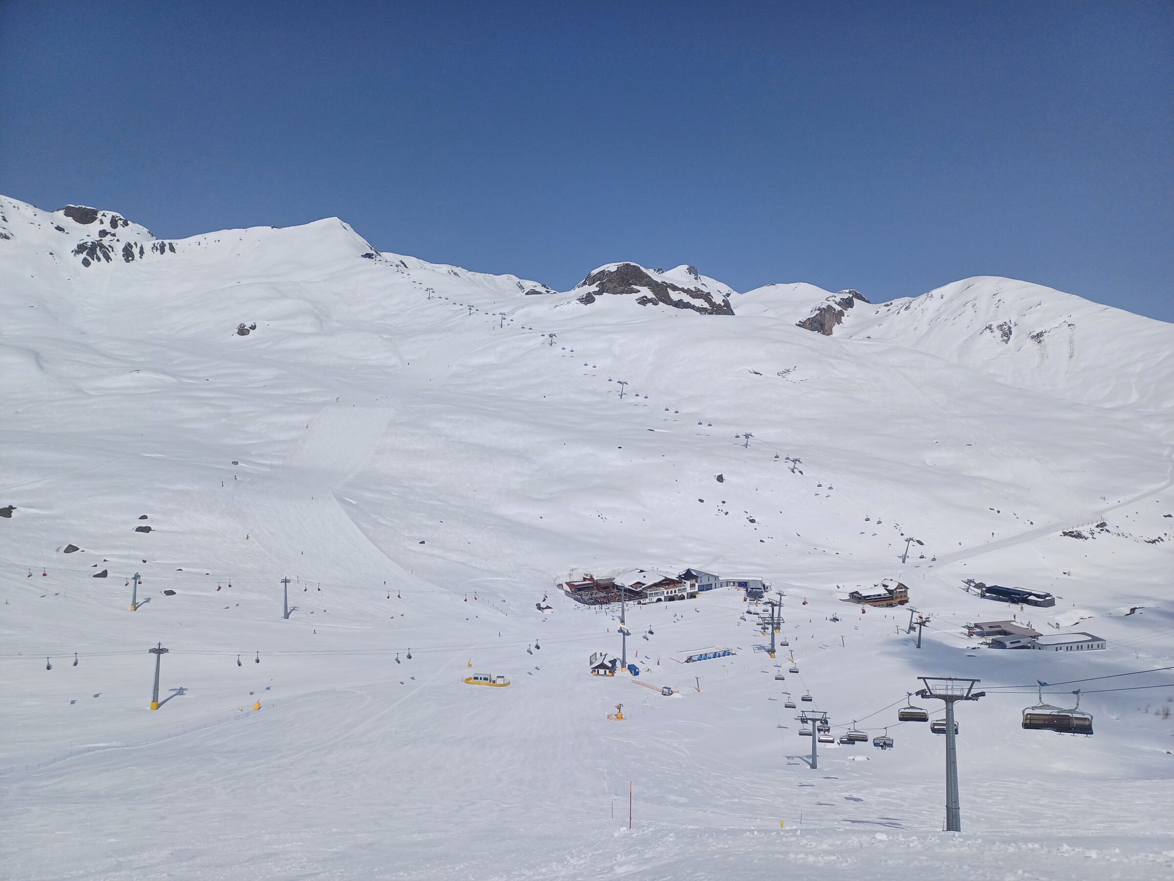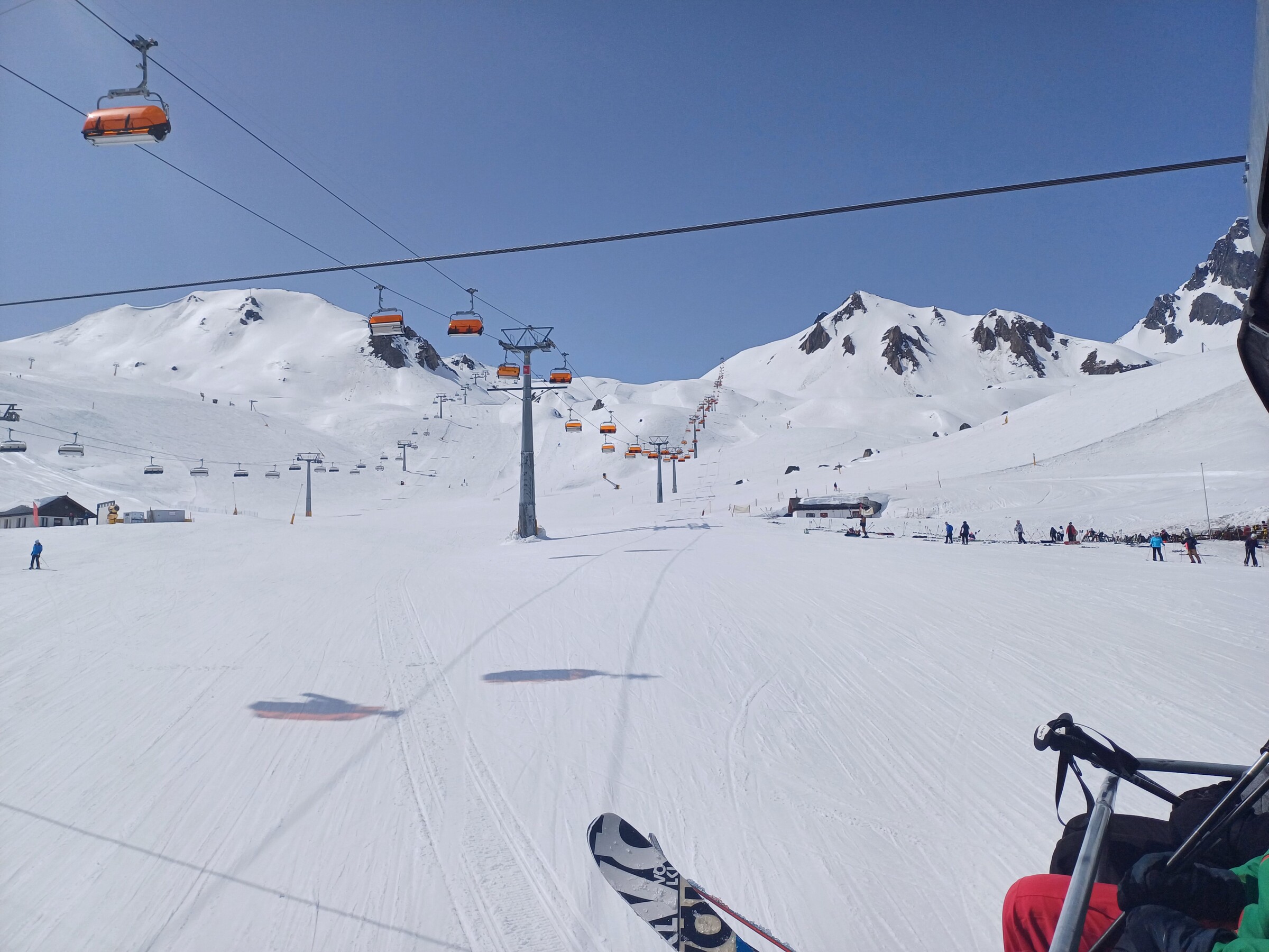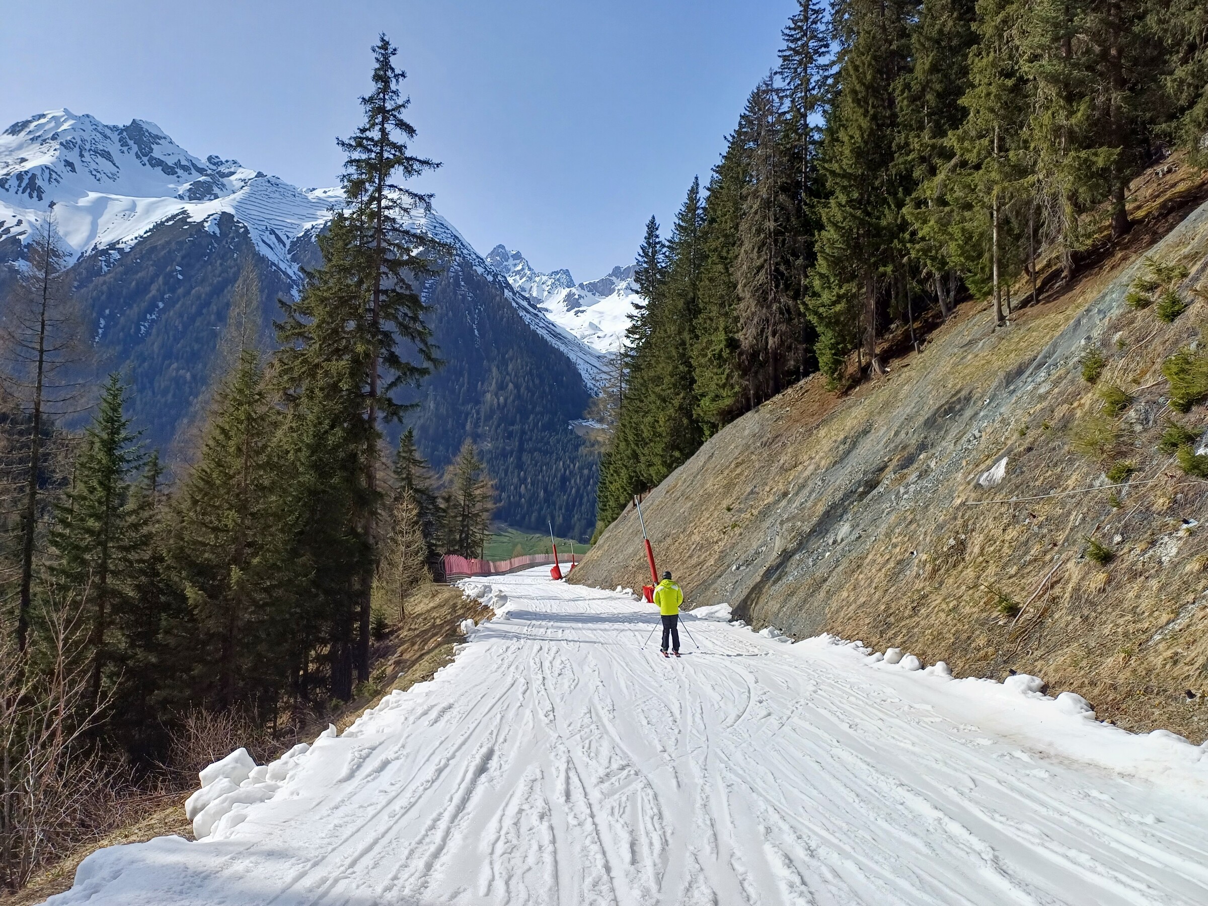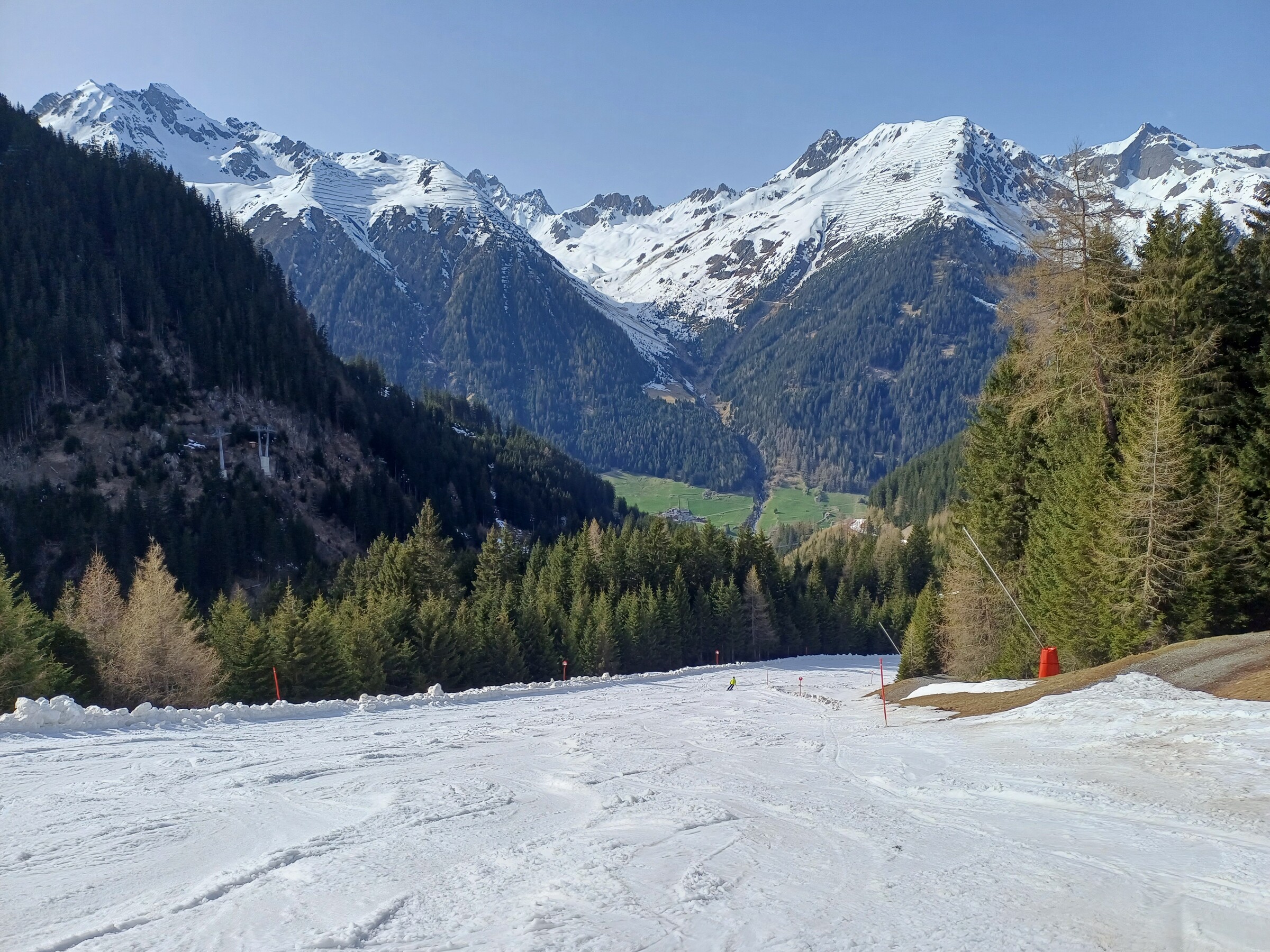 So stelle ich mir das vor am 11. April. Keine Spur von dieser Endzeitstimmung wie in anderen Gebieten oder den "Sparmaßnahmen" wie woanders. Alle Pisten voll gewalzt auf voller Breite. Alle Talabfahrten offen, alle Anlagen in Betrieb. Über die Geschwindigkeit mancher Bahnen kann man streiten, aber zumindest laufen sie, im Gegensatz Schwarzkogelbahn in Sölden oder zur OA 1 im Kaunertal.